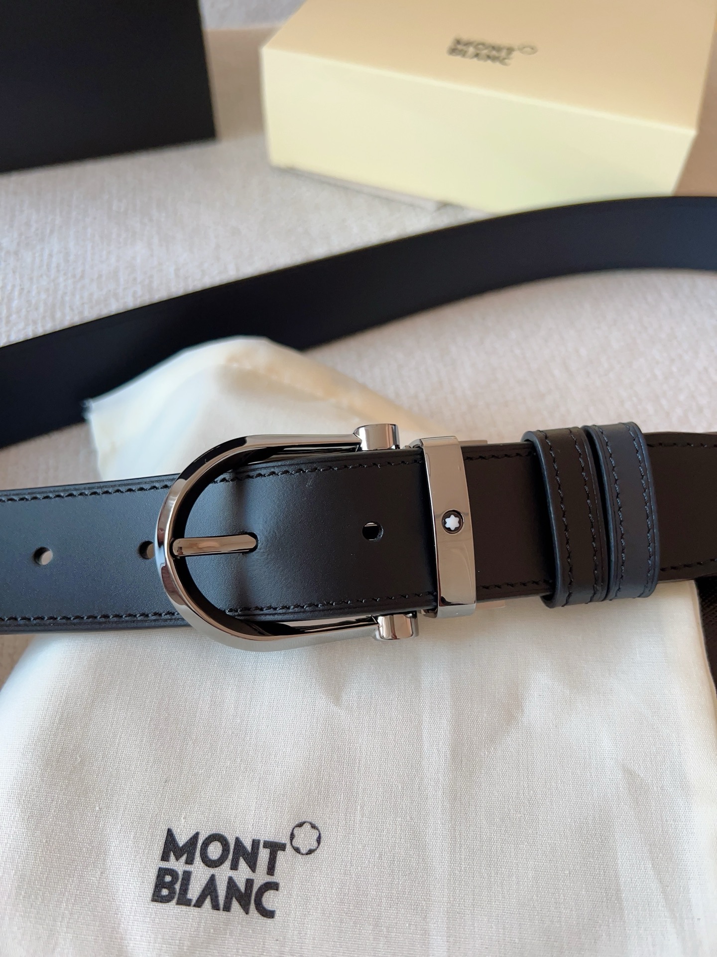 Montblanc new horseshoe buckle belt with 3D浮雕 craft, adjustable double-sided leather strap. 35mm width.