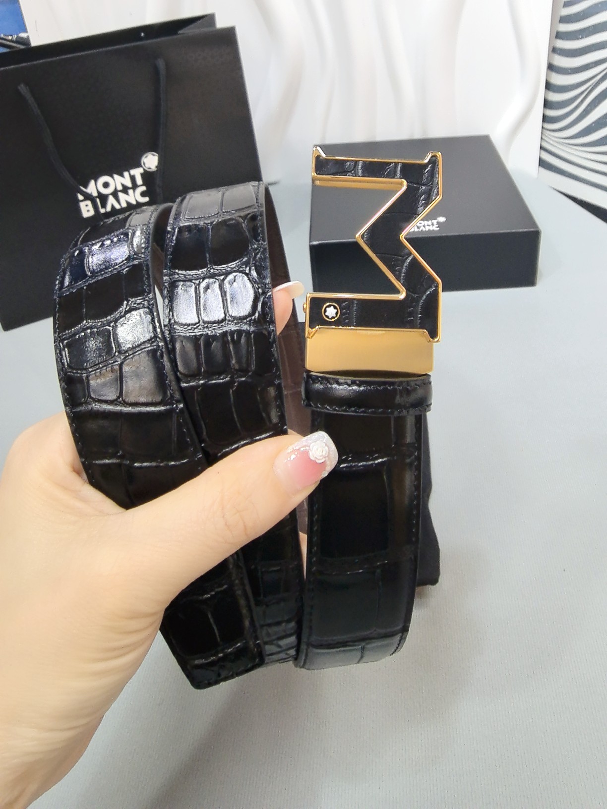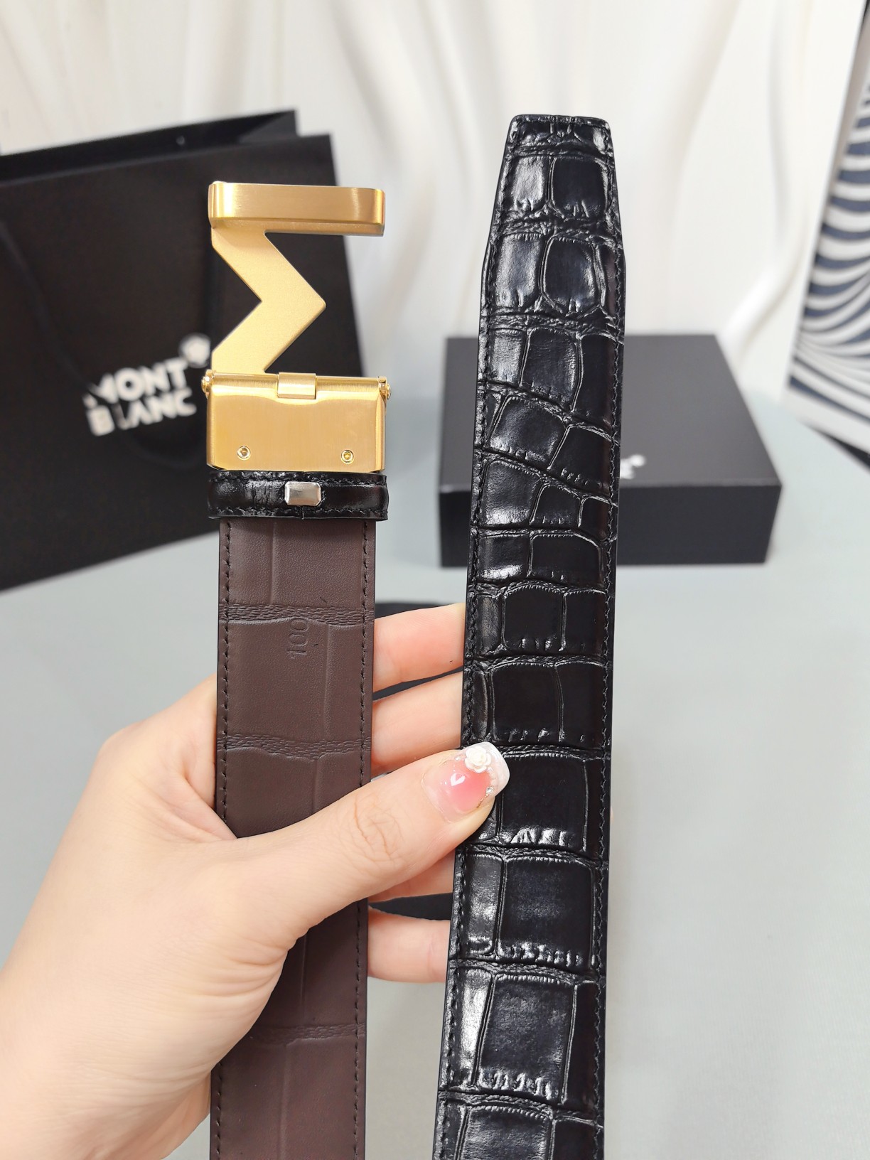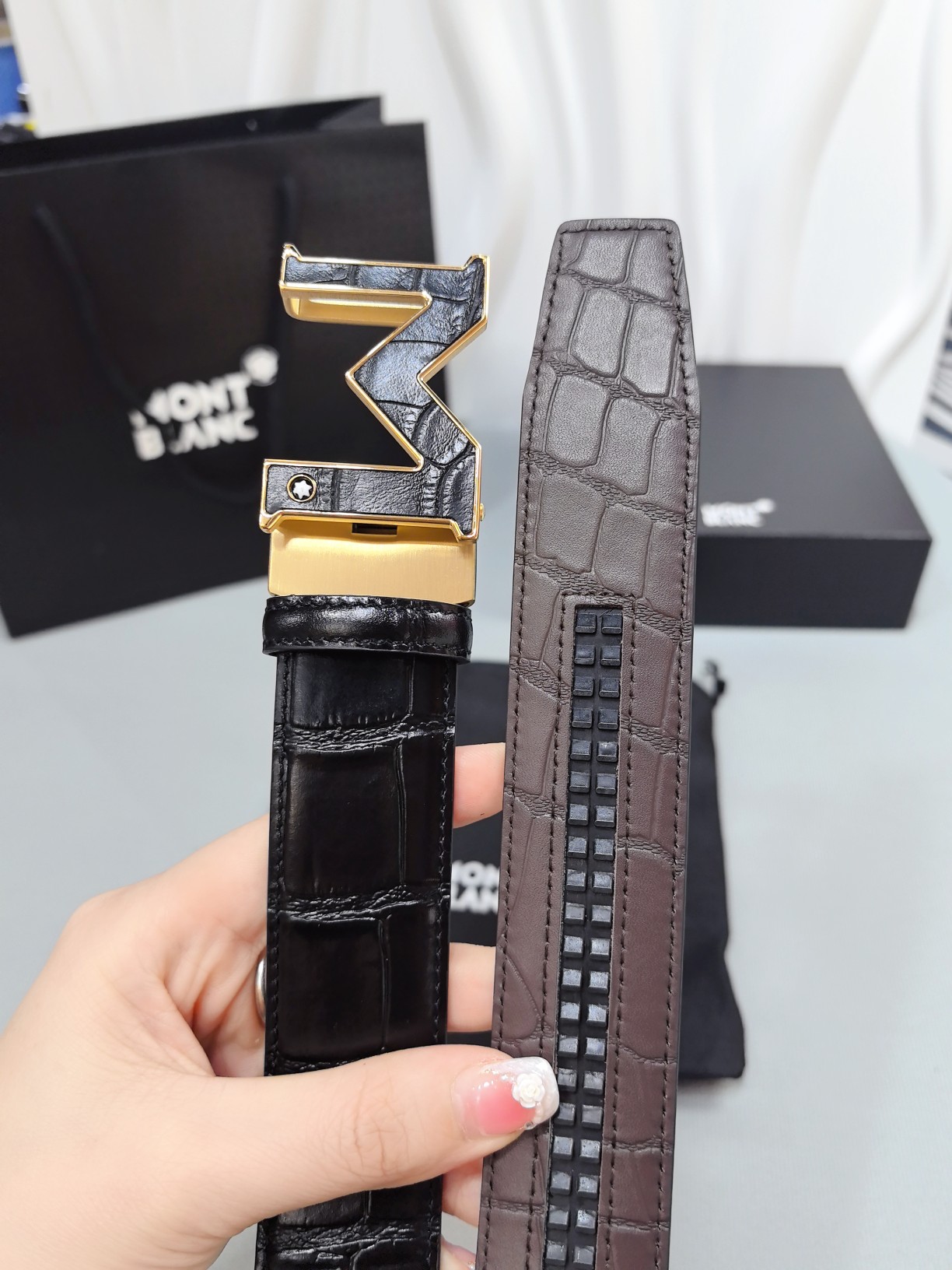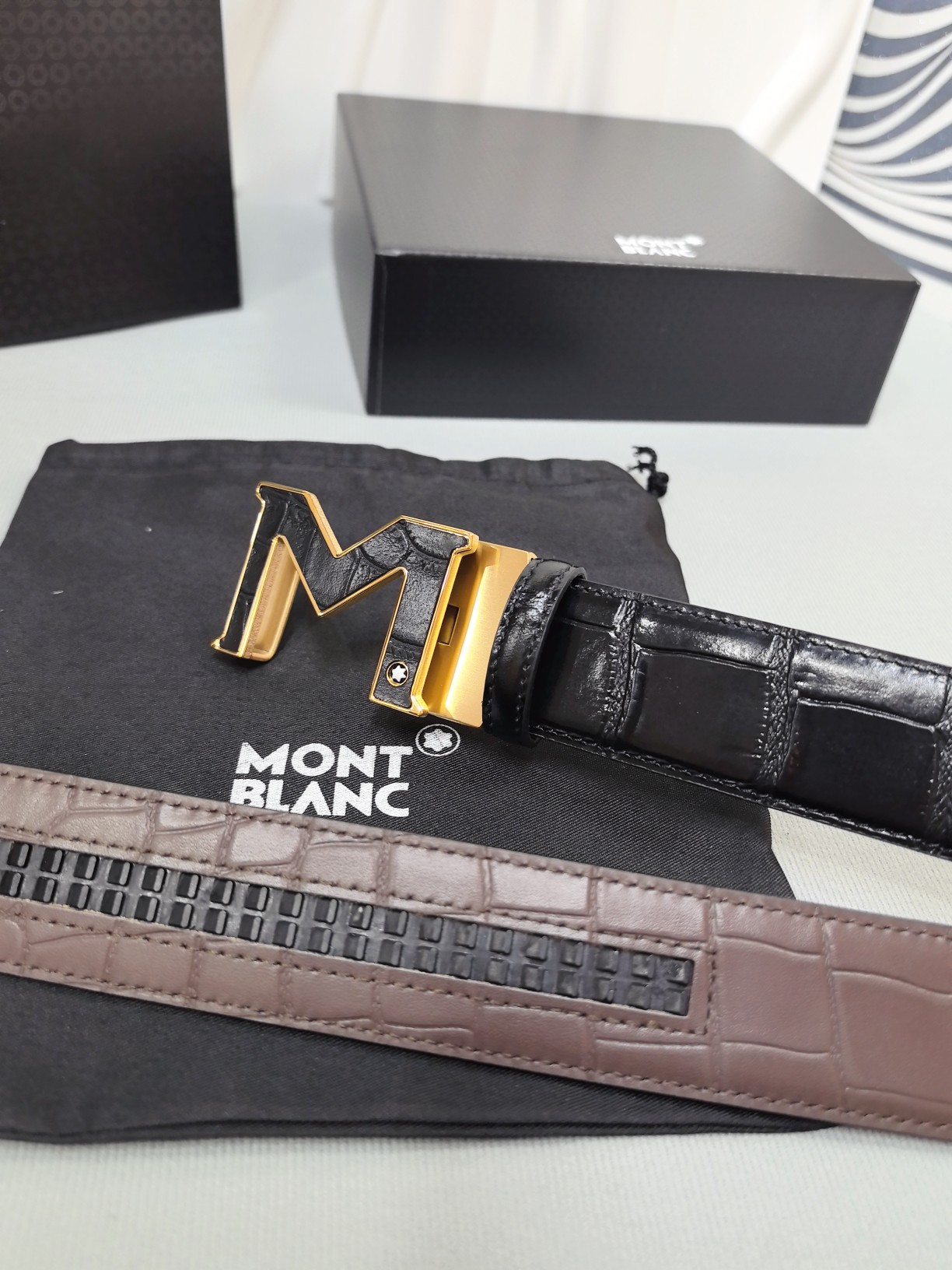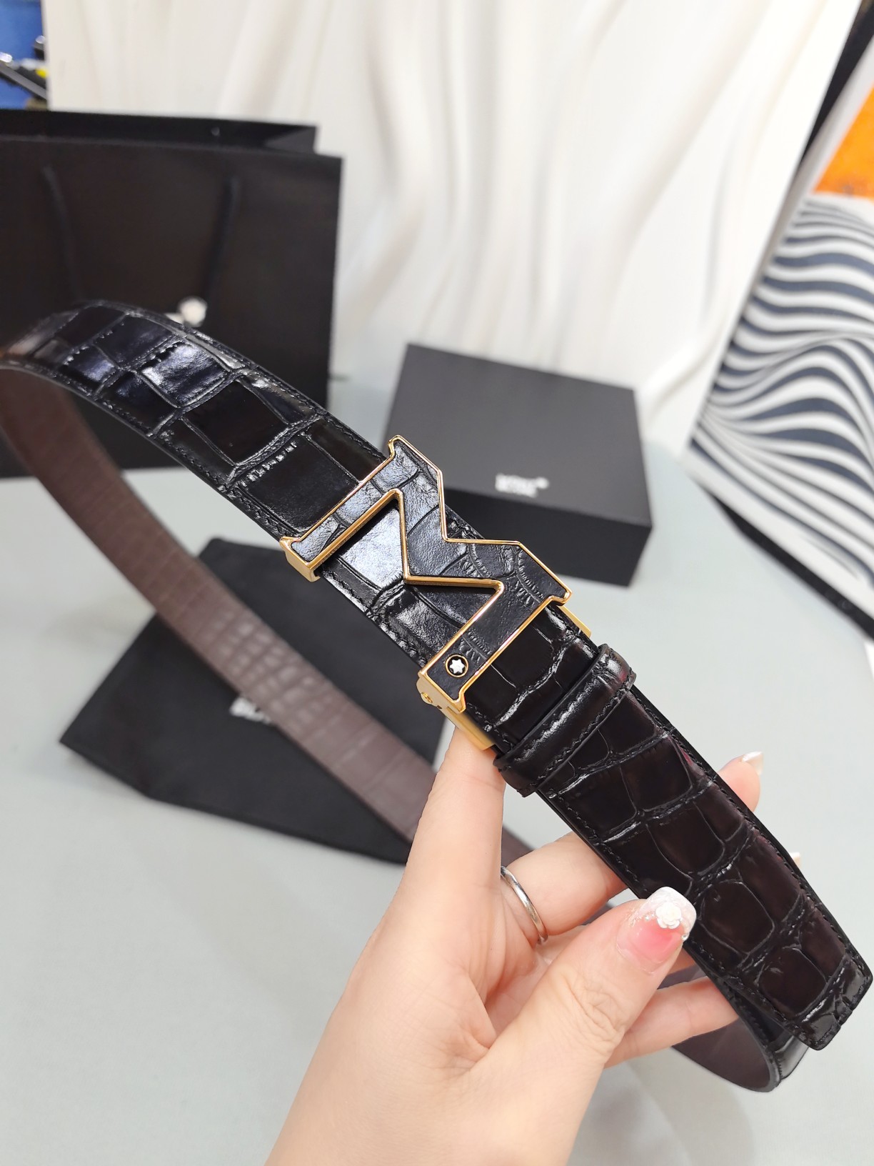 Montblanc original high-end quality 💎 Width 3.5 exquisite automatic steel buckle 💯 Italian double-sided imported top-grain calfskin original black and khaki excellent feel 🌈 Great wearing effect 🔱 Men's favorite 💫 Business casual