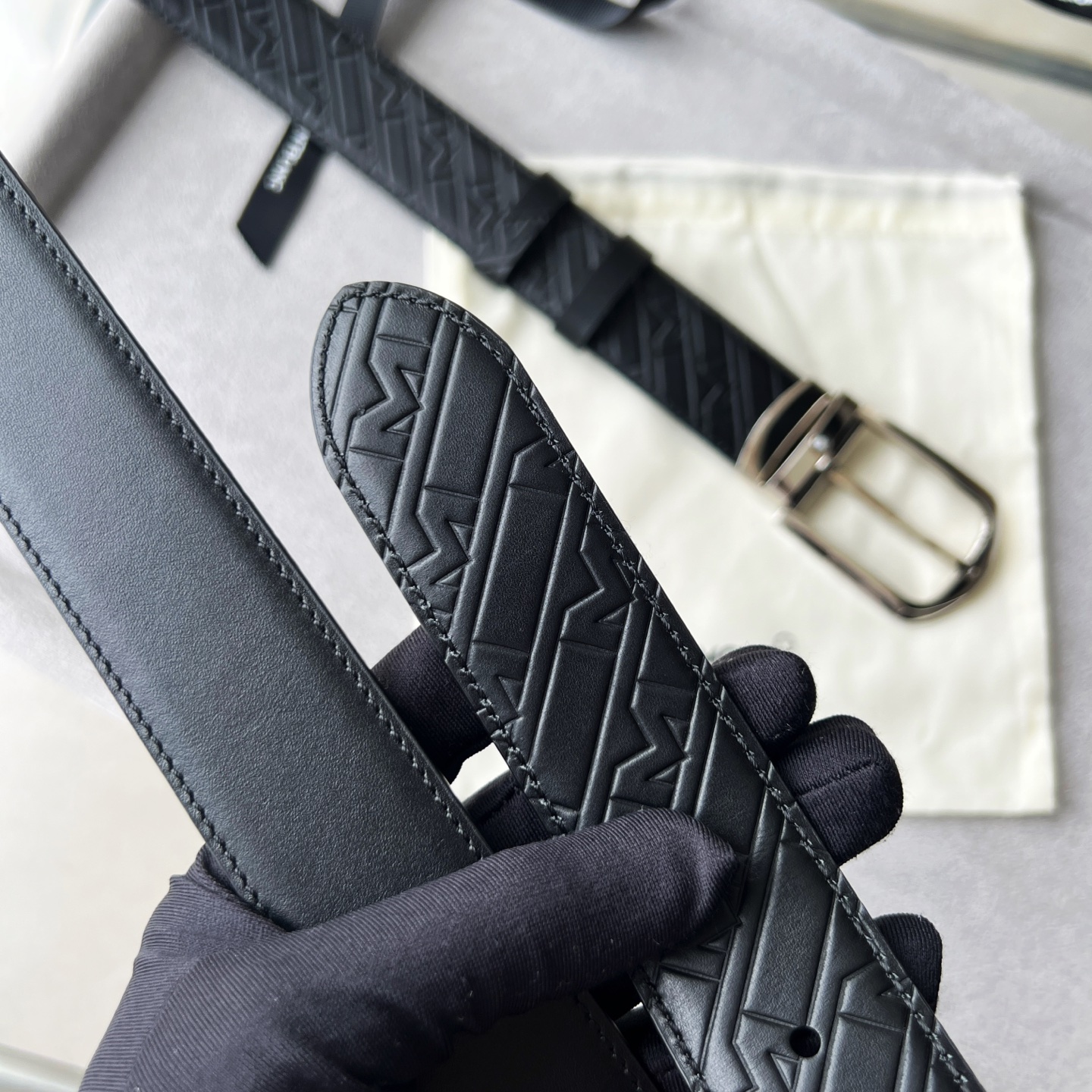 Montblanc Rectangular Buckle Black Belt (35mm) Rectangular stainless steel pin buckle. Adjustable length, 3.5 cm x 120 cm, black grained leather strap. This belt is suitable for both business occasions and modern fashion styles.
