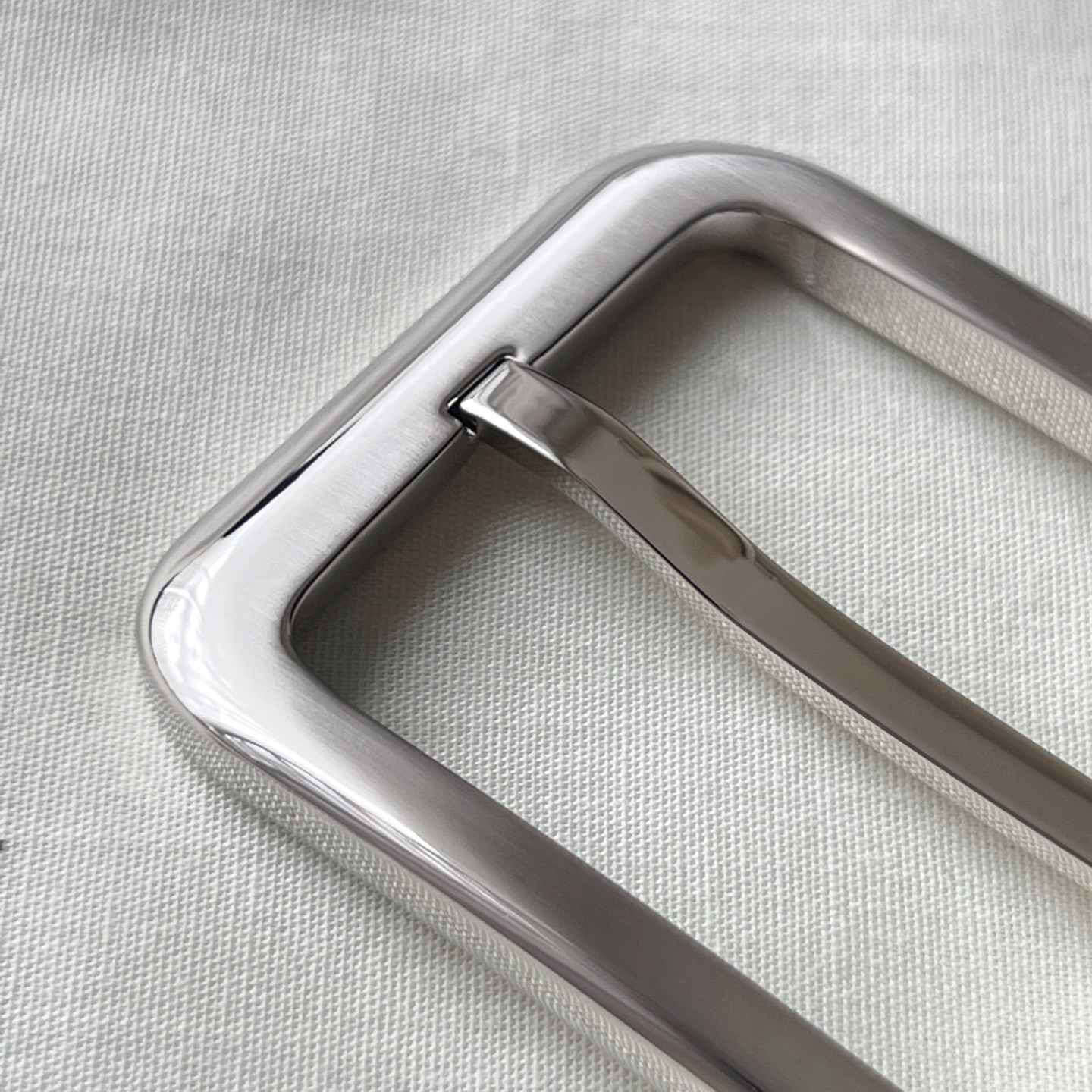 Rectangular stainless steel pin buckle. Adjustable length, 3.5 cm x 120 cm, black and gray grained leather strap. This belt is suitable for both business occasions and modern fashion styling.