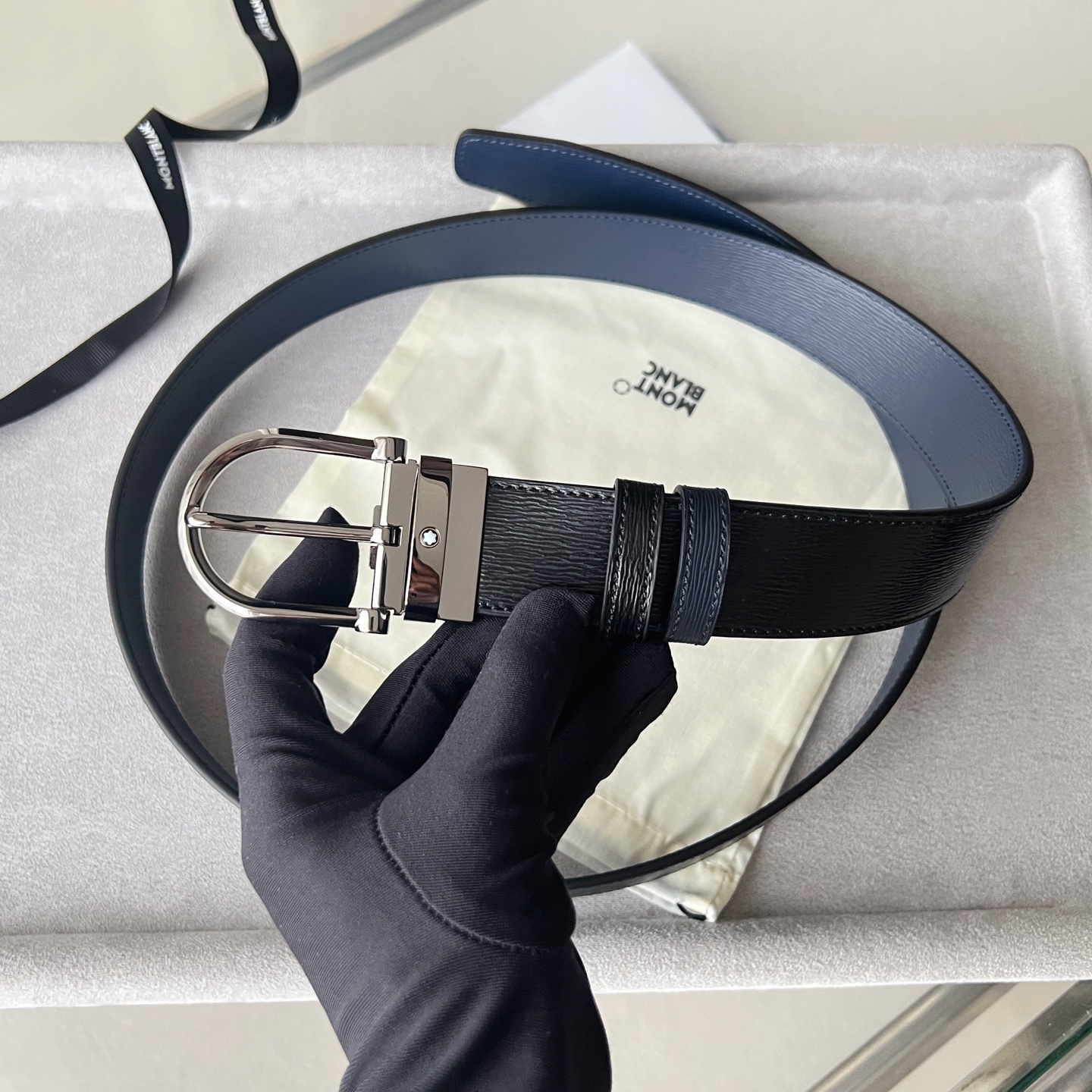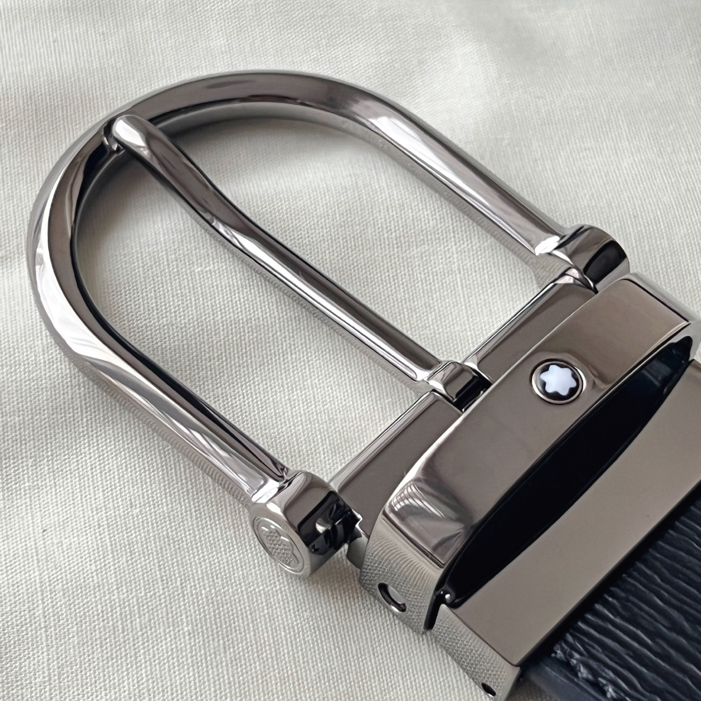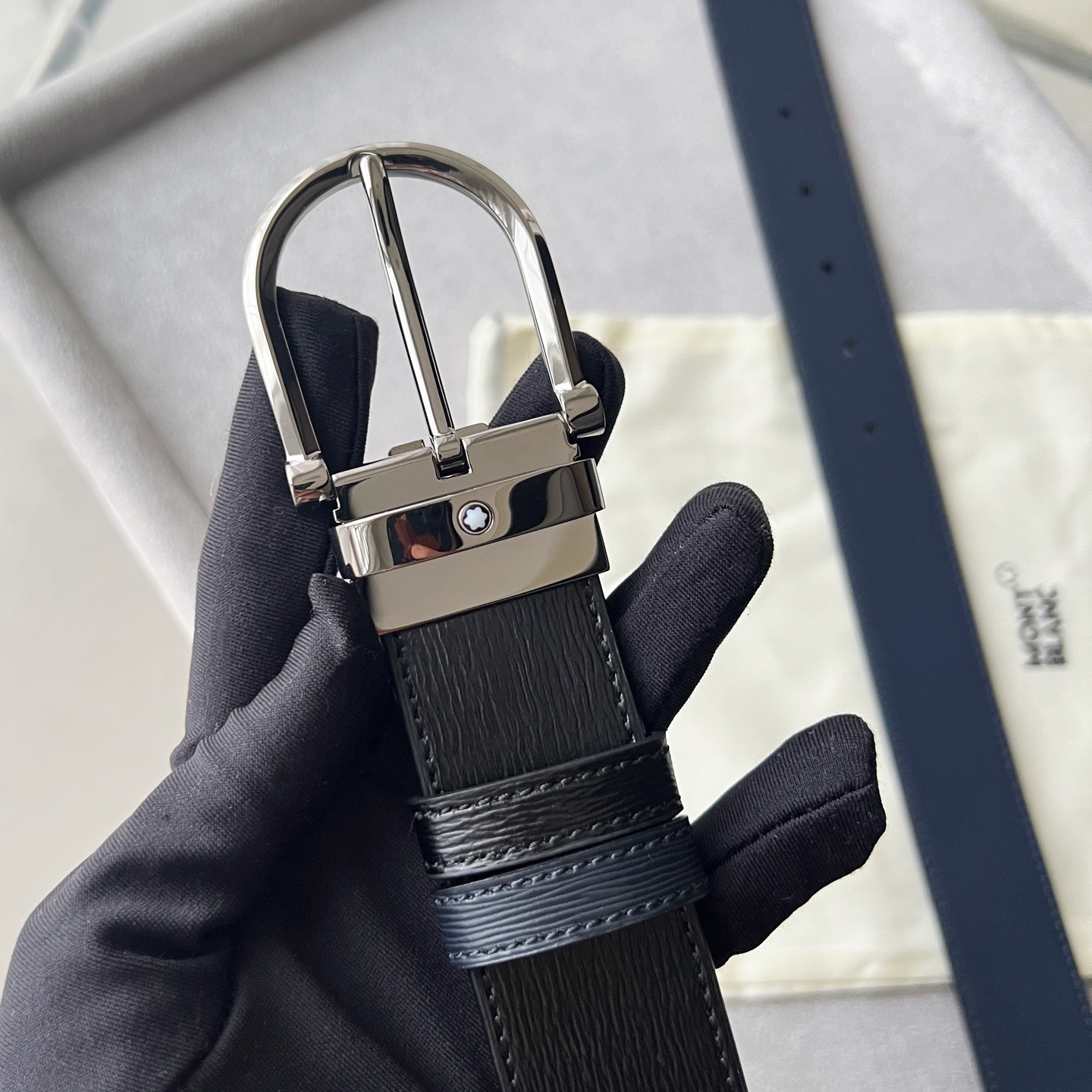 Montblanc Rectangular Buckle Black Belt (35mm) Rectangular steel pin buckle. Adjustable length, 3.5 cm x 120 cm, black grained leather strap. This belt is suitable for both business occasions and modern fashion styles.