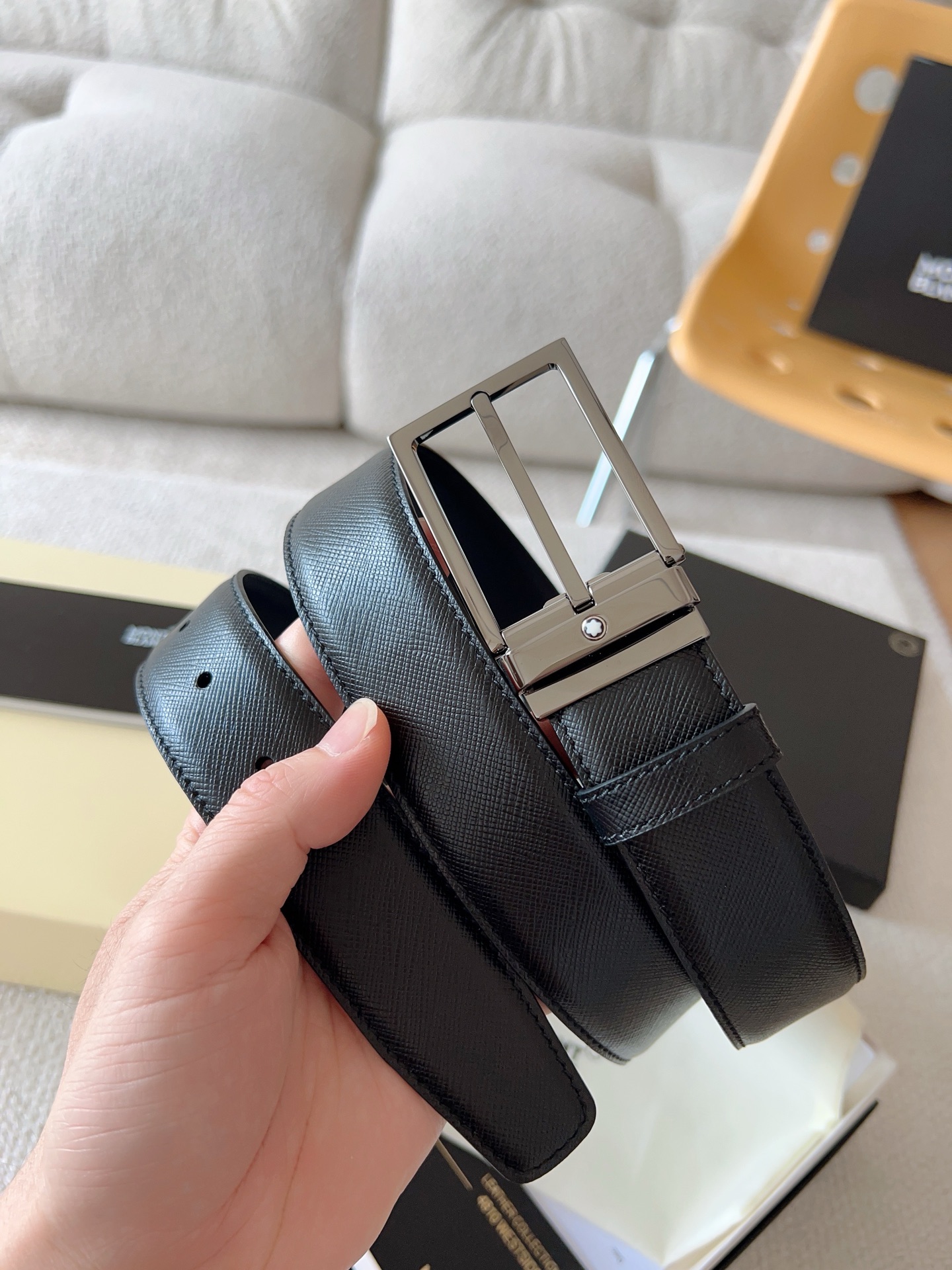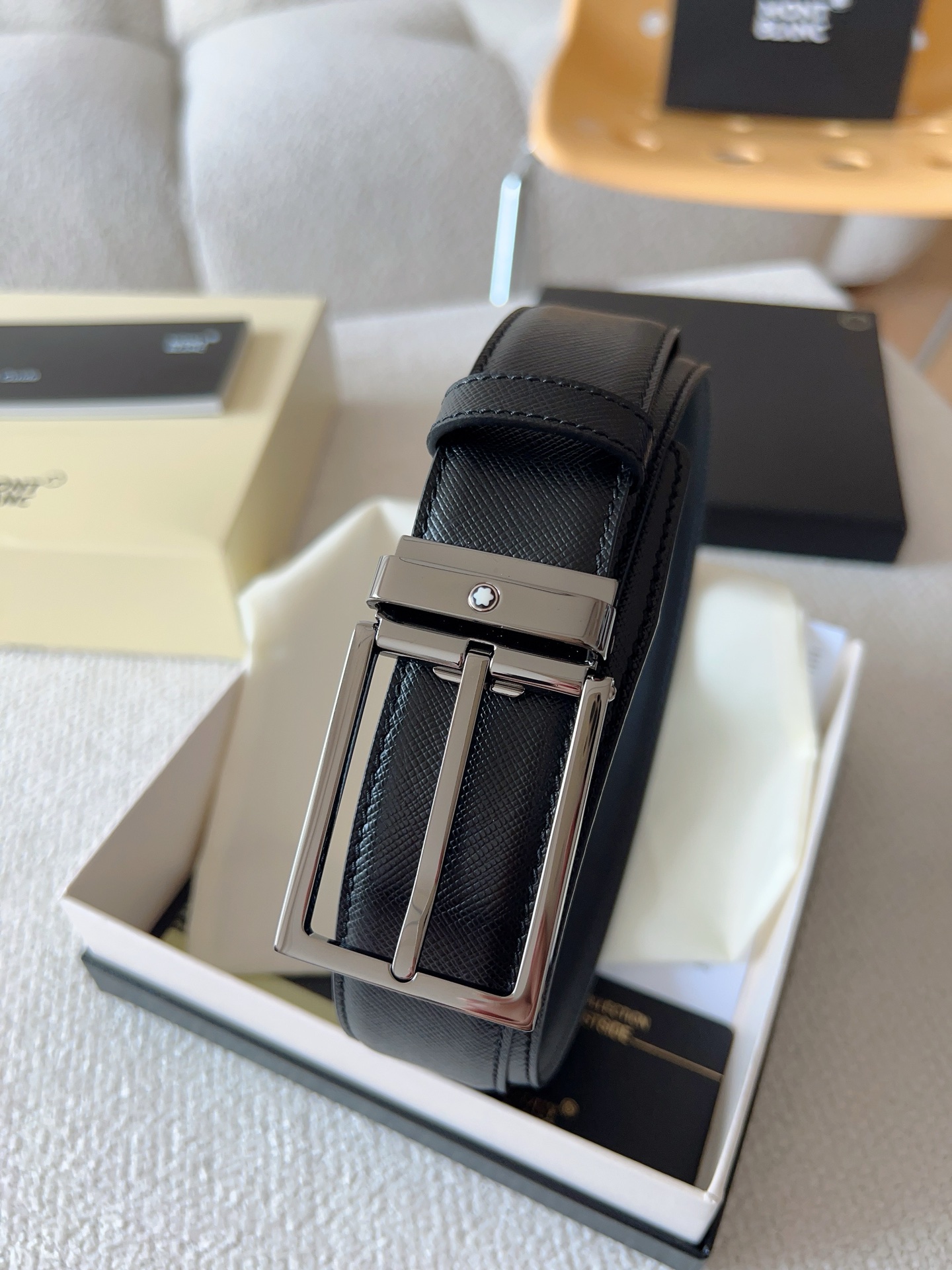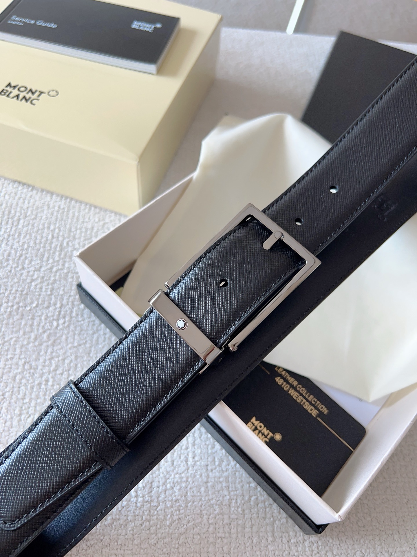 The Montblanc brand represents elegant and enduring lifestyle essentials, reflecting today's society's pursuit and celebration of culture, design, tradition, and exquisite craftsmanship. The elegant hexagonal white star emblem has become a symbol of卓越品质 and perfect craftsmanship. Product selection: Imported materials paired with high-quality metal buckles; Belt width: 35mm