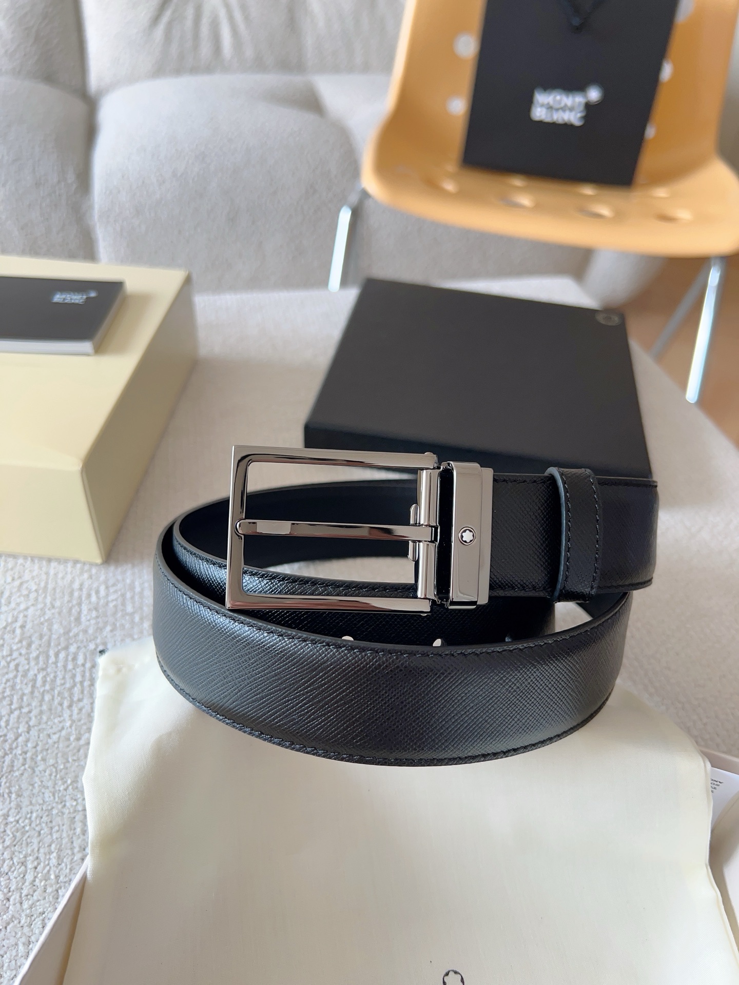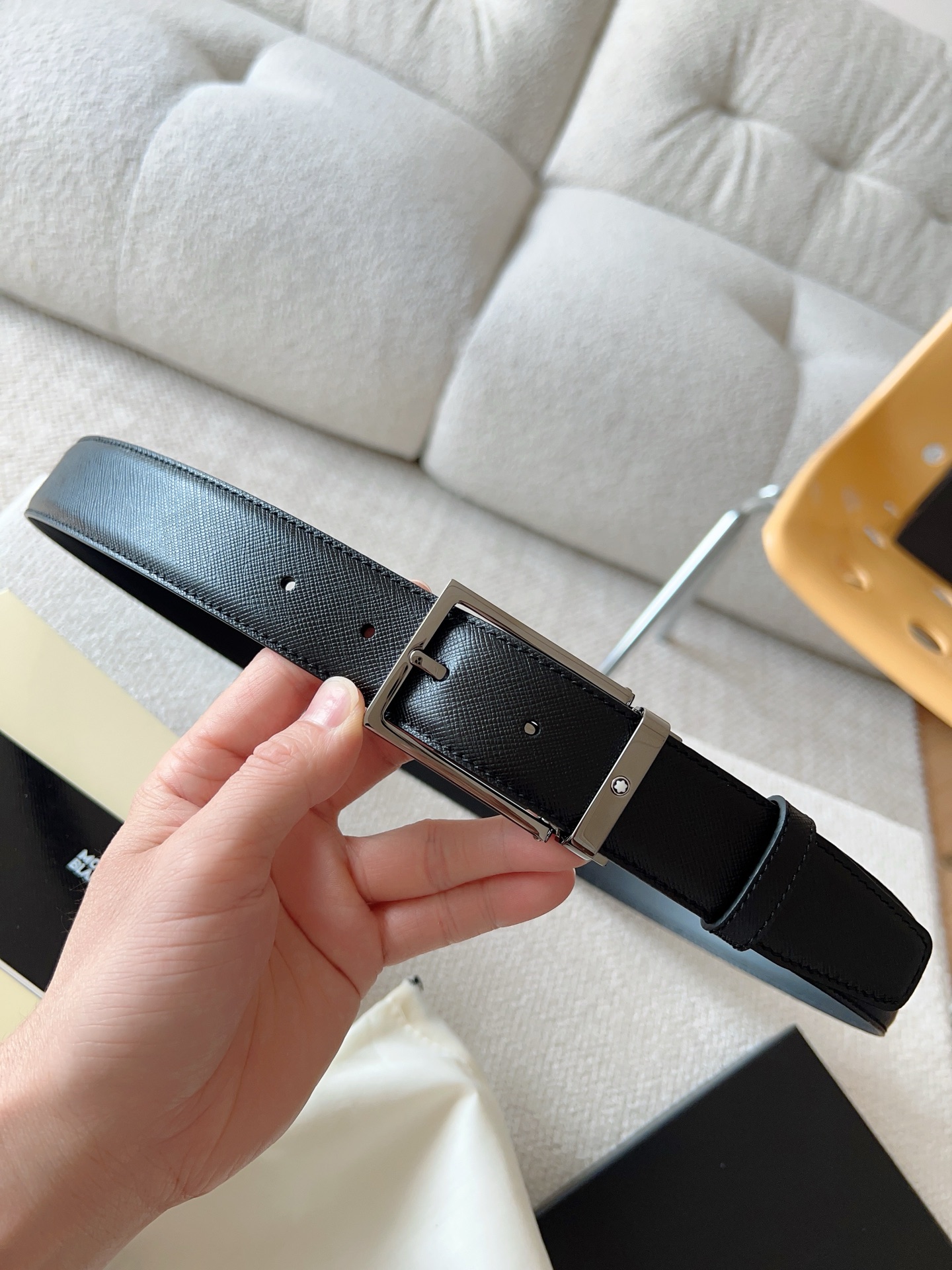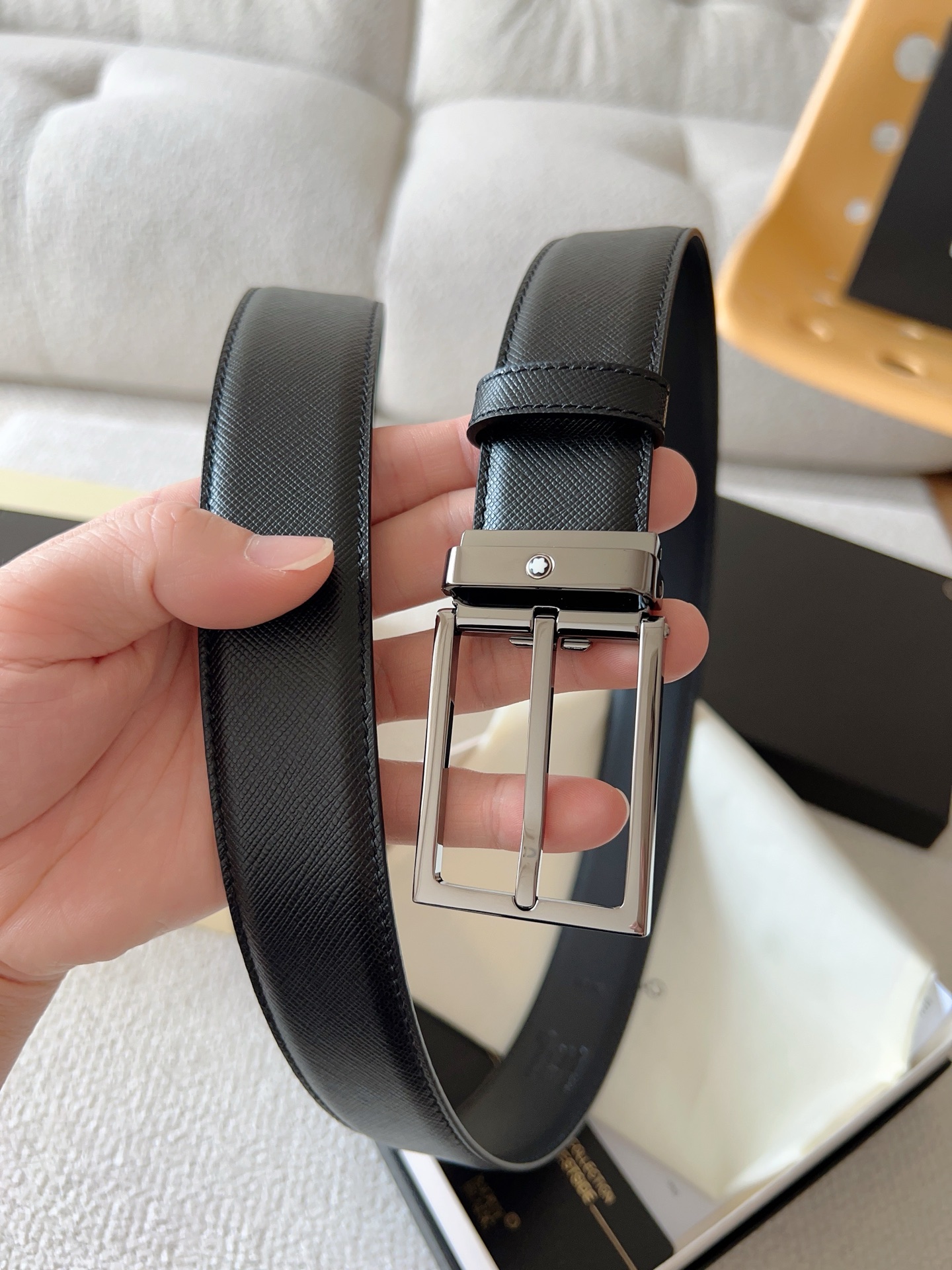 The Montblanc brand represents elegant and enduring lifestyle essentials, reflecting today's society's pursuit and celebration of culture, design, tradition, and exquisite craftsmanship. The elegant hexagonal white star emblem has become a symbol of卓越品质 and perfect craftsmanship. Product selection: Imported materials paired with high-quality metal buckles; Belt width: 35mm