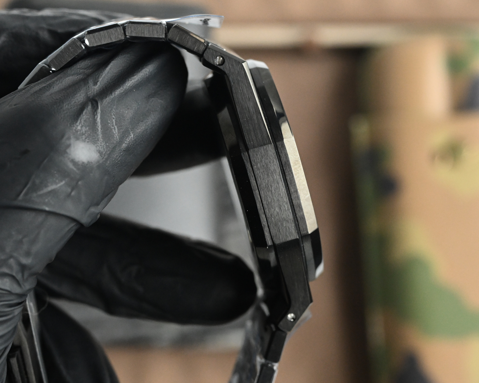 APS new Audemars Piguet Royal Oak Offshore model 15407ST.OO.1220ST.01 men's mechanical watch Calibre 3132 integrated movement, 41mm diameter, dark gray dial shape: round dial material: skeleton dial, with rose gold fluorescent three-dimensional hour markers and Royal Oak hands crystal material: anti-glare treated sapphire crystal glass crystal crown material: stainless steel, screw-down crown case back: transparent case back, anti-glare sapphire glass mirror