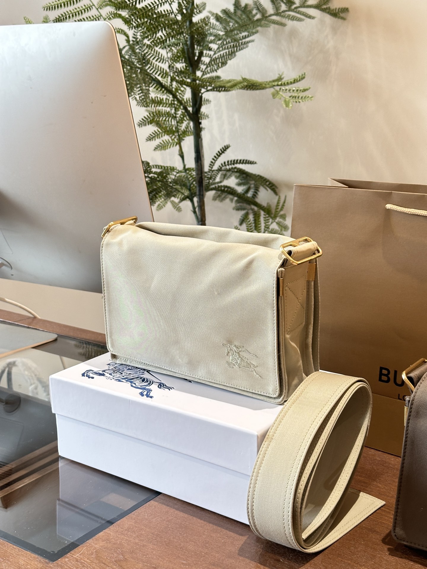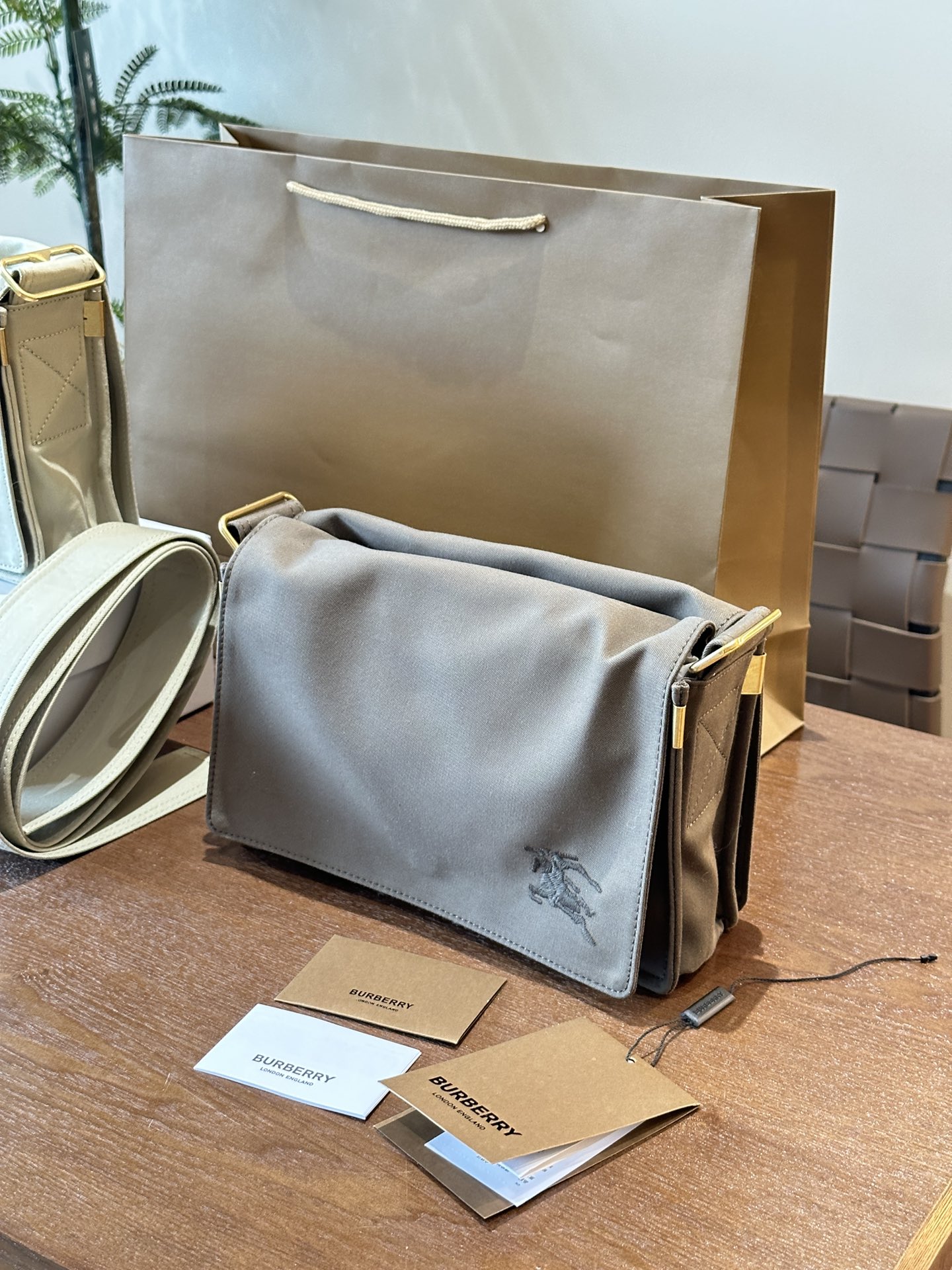 BURBERRY New Bag | The small square box is not a small waste bag at all. Both sides have flip-open closures for a camera bag, made from Burberry's iconic fabric - functional gabardine fabric! The central compartment is paired with a plaid lining and incorporates a large leather insert pocket design. It uses magnetic buckle closures and an extended shoulder strap, with both sides decorated with accessories inspired by the Trench coat's tie elements, full of understated elegance~ The front is adorned with an embroidered equestrian knight emblem (EKD) 25cm