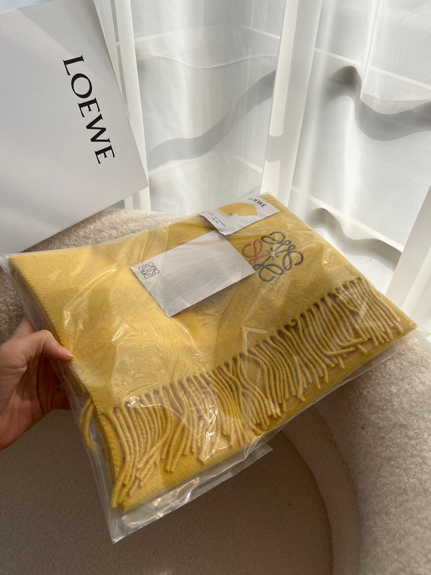 New Loewe scarf: rare gentle color, elegant double-sided design. Two styles in one, comfortable and stylish. Simple colors with eye-catching logo. Perfect for couples. Size: 35x180cm, 160g.