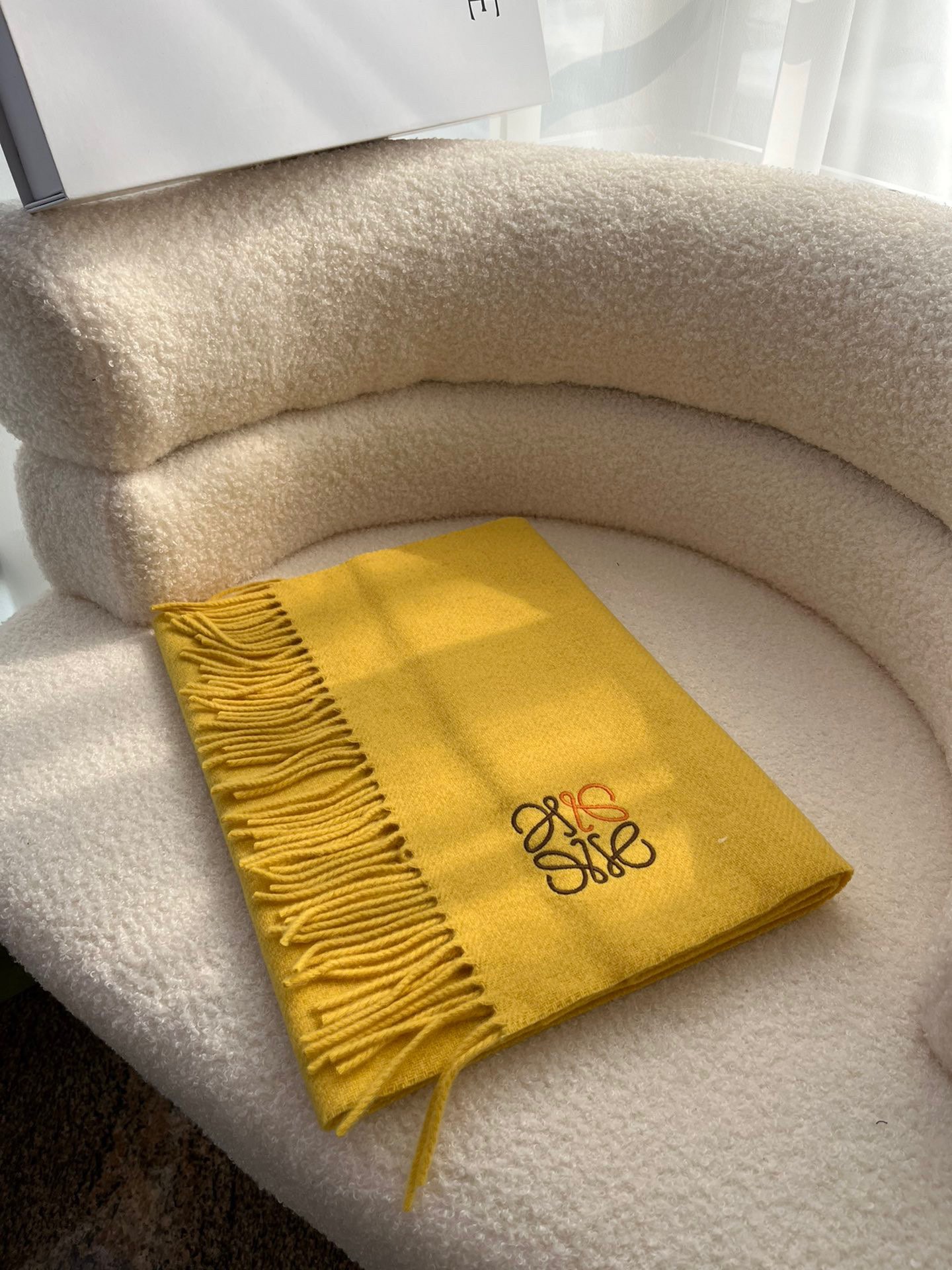 【▪Loewe · Loewe's rare gentle color combination, low-key yet elegant.】 Key recommendation! Double-sided color scheme, one scarf with two styles, high-end, comfortable, fashionable, and elegant. It's known as a niche brand but has a full luxury vibe. Highly recommended! This touching and delicate Loewe scarf features an extremely simple color paired with an eye-catching color-changing logo—a finishing touch that doesn't compromise beauty. It's the pursuit of successful individuals, with absolutely perfect colors, a unique ethereal charm, and undoubtedly the top choice for couples. The colors are subtle and not flashy! Specifications: 35 x 180cm! 160 grams!