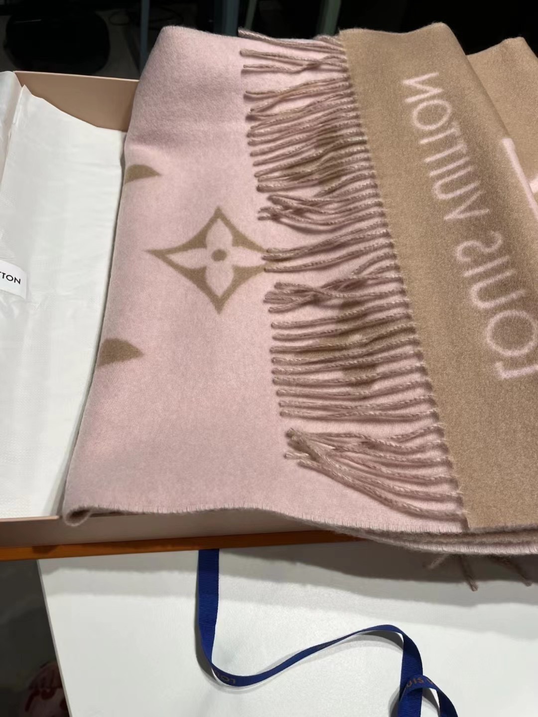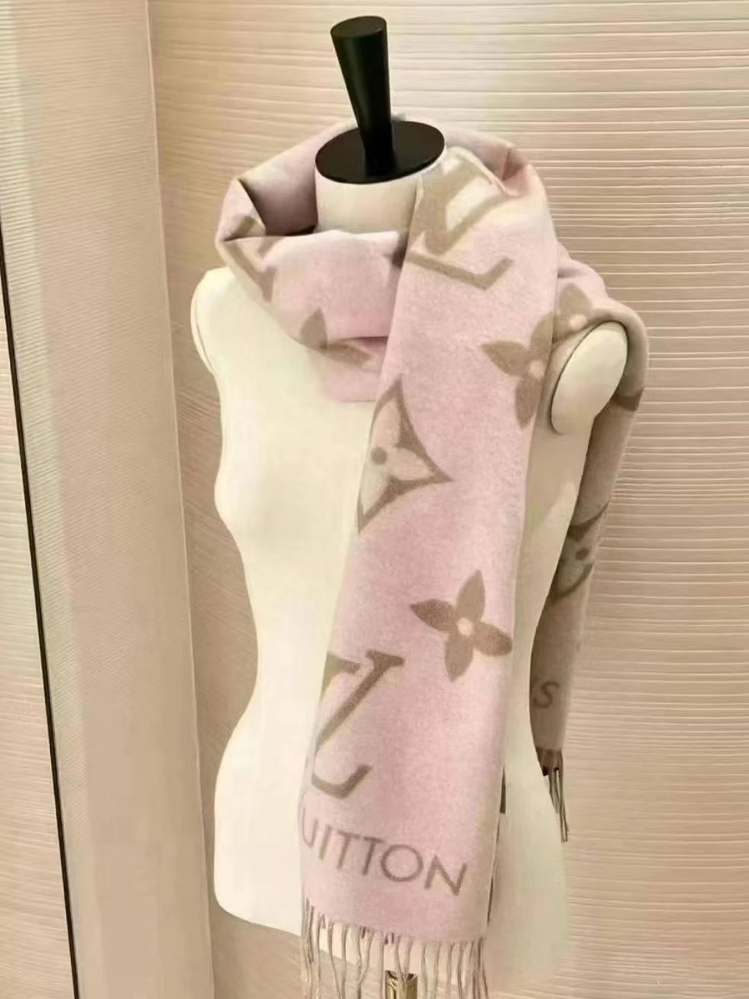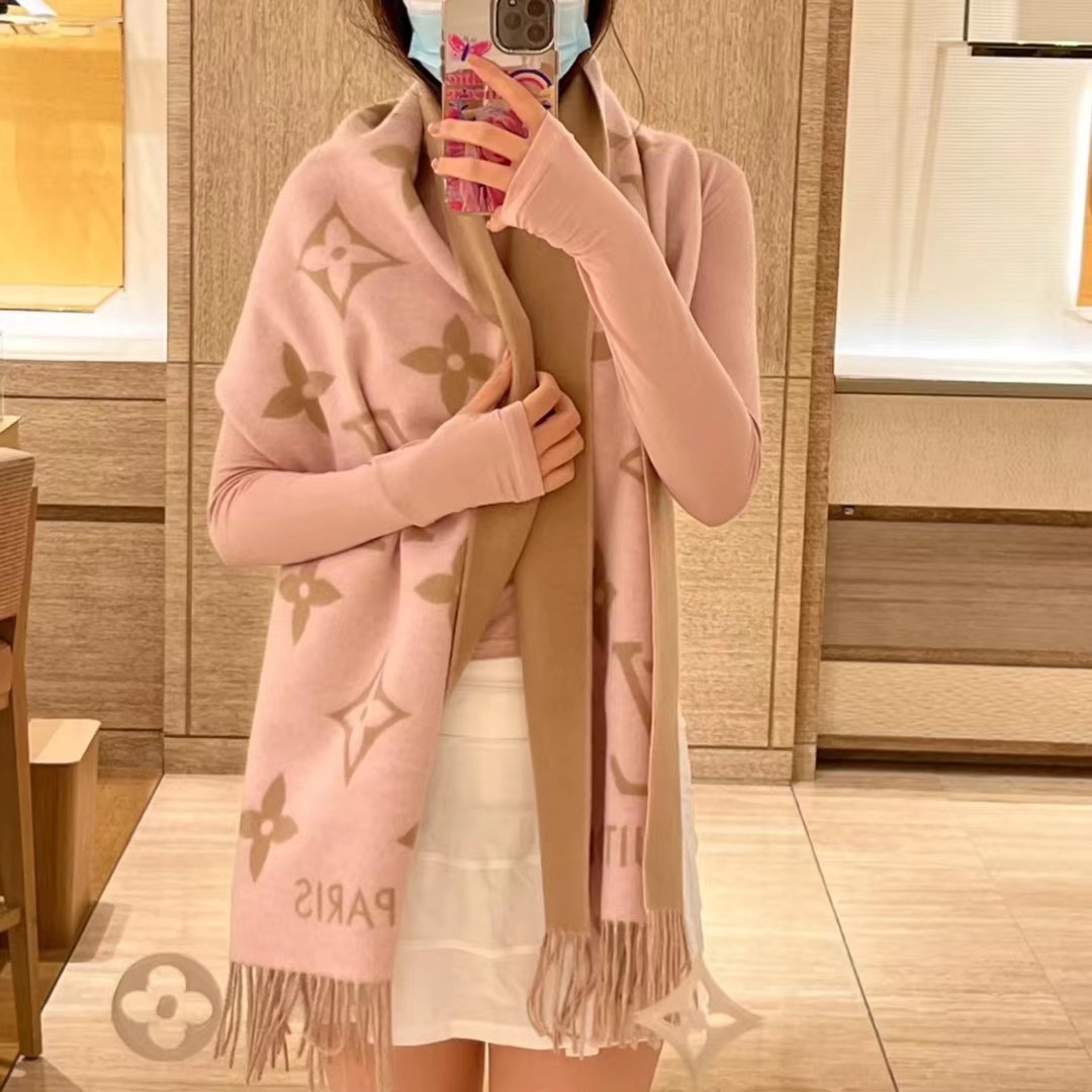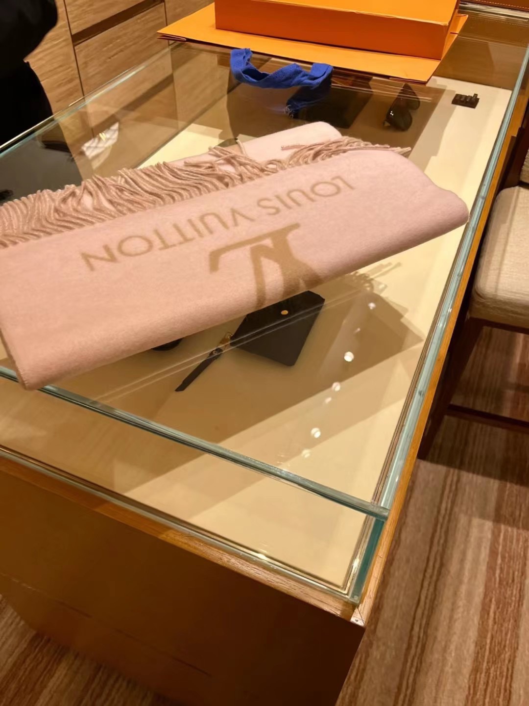 🔥🔥🔥New (Milk Tea Pink) color 300g timeless LV REYKJAVIK cashmere scarf. A bestselling store item, consistently out of stock in mainland stores! The factory LV shipment was accepted by the boss without even looking at samples. The popularity of this LV shawl needs no further explanation—celebrities like Huo Siyan, Li Xiang, and Wang Mingquan can't get enough of it. It functions as both a scarf and a shawl, offering a warm and soft feel that makes it irresistible! Classic logo pattern... Absolutely high-end and luxurious... 100% cashmere! Not the so-called "lamb wool" used in counterfeit products on the market. The texture is impeccable, with a softness and fineness reminiscent of a newborn baby's skin. 100% cashmere. Dimensions: 45*180cm
