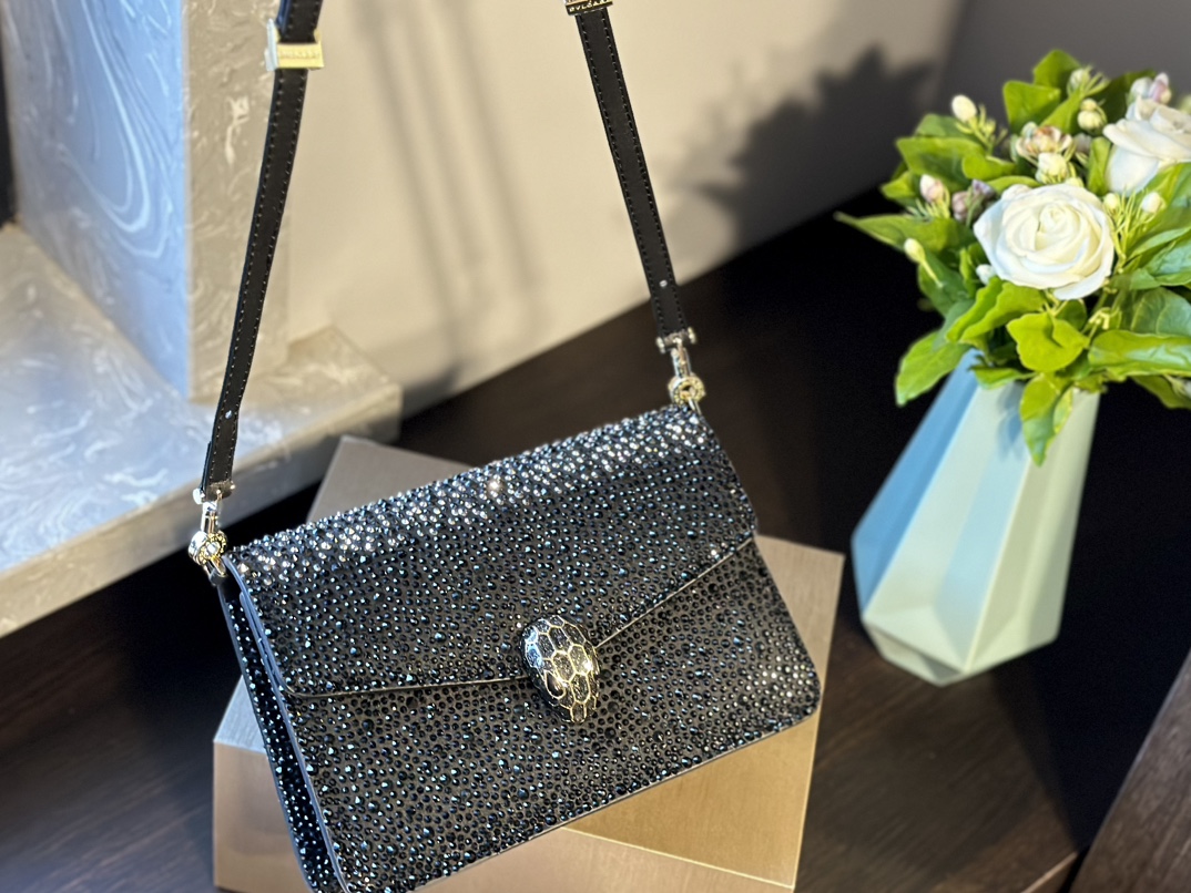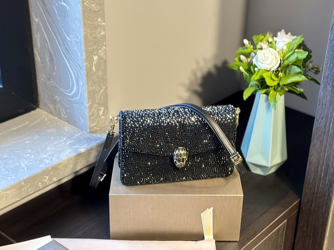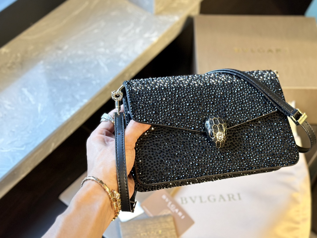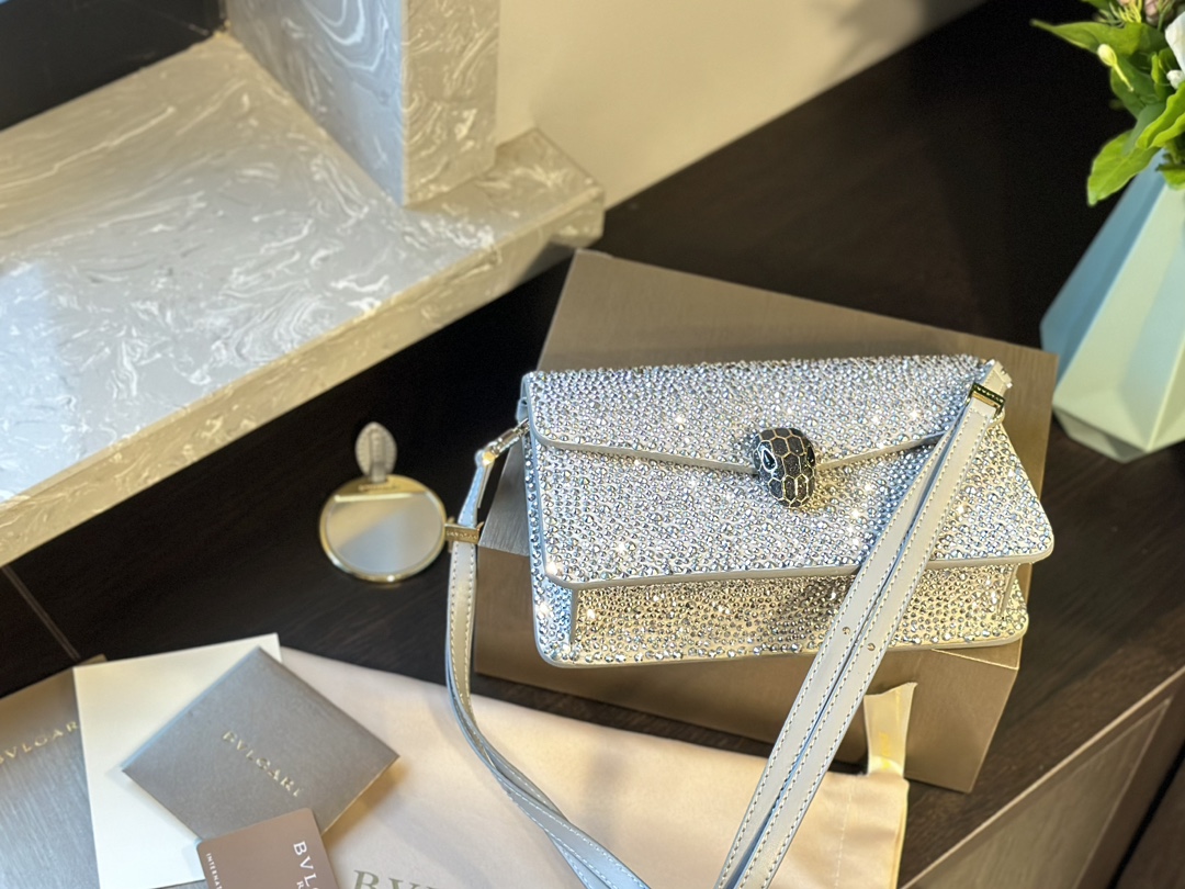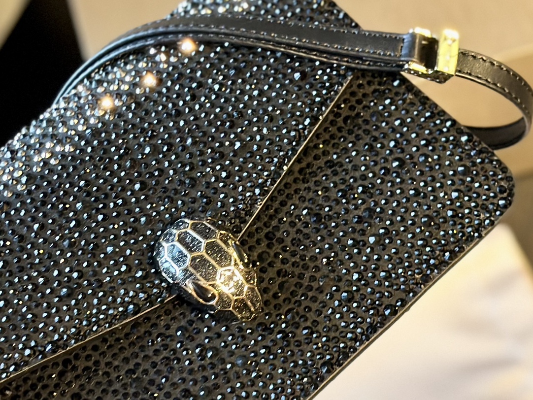 Genuine piece 🐆 Size: 22*14cm Bvlgari limited edition Bulingbuling fully diamond-encrusted bag The actual item is incredibly shiny! Folding gift box includes original small mirror