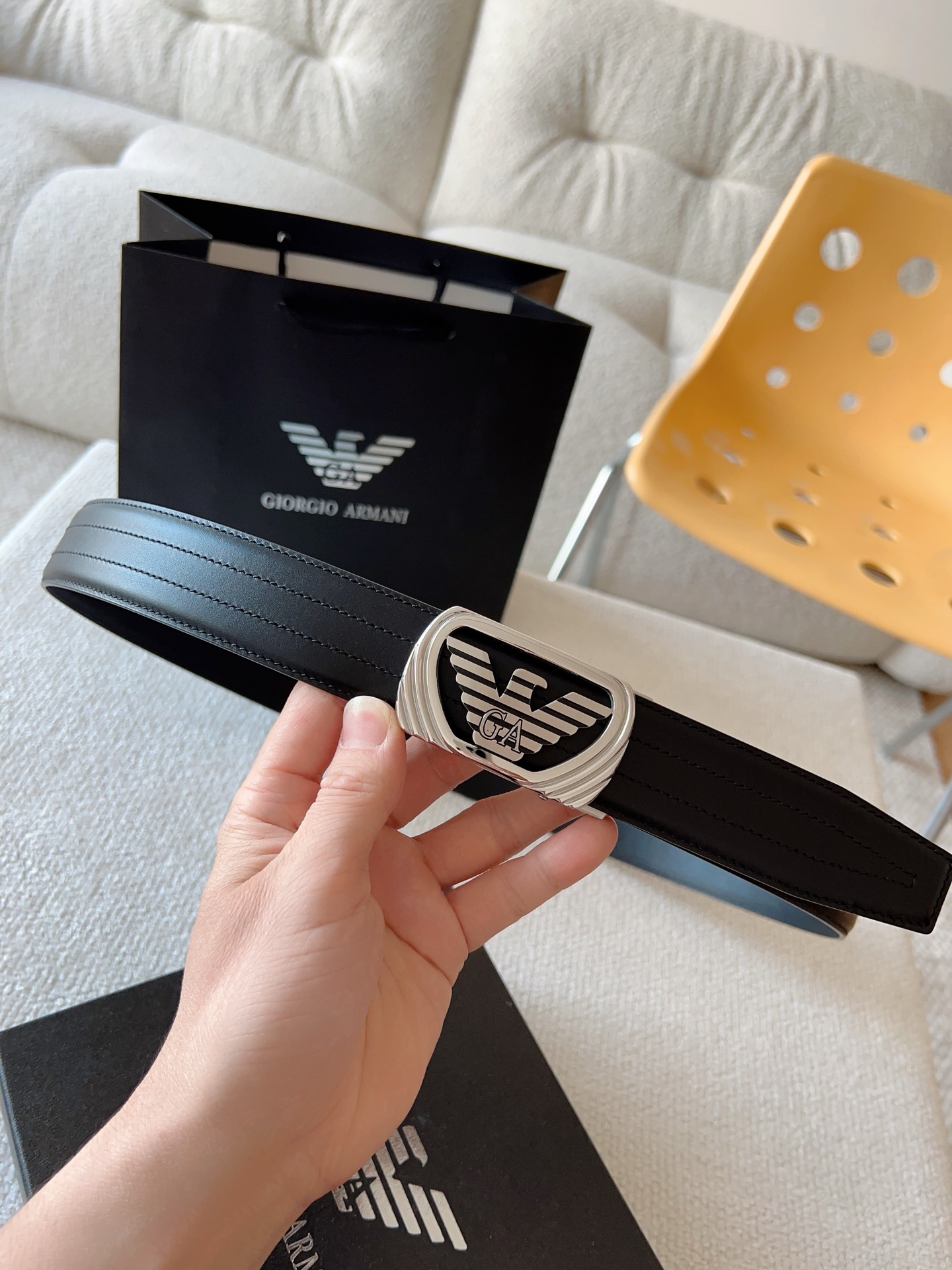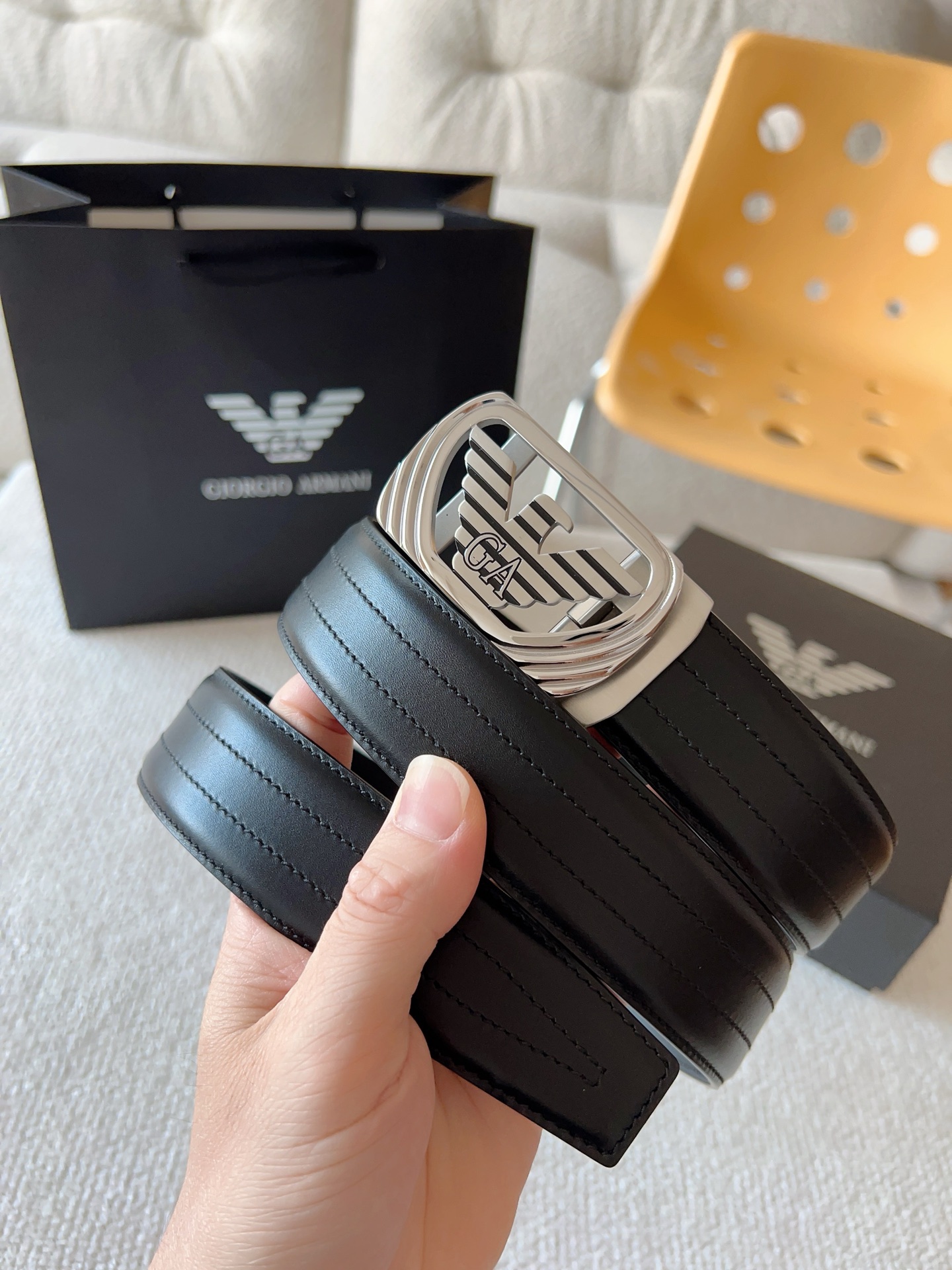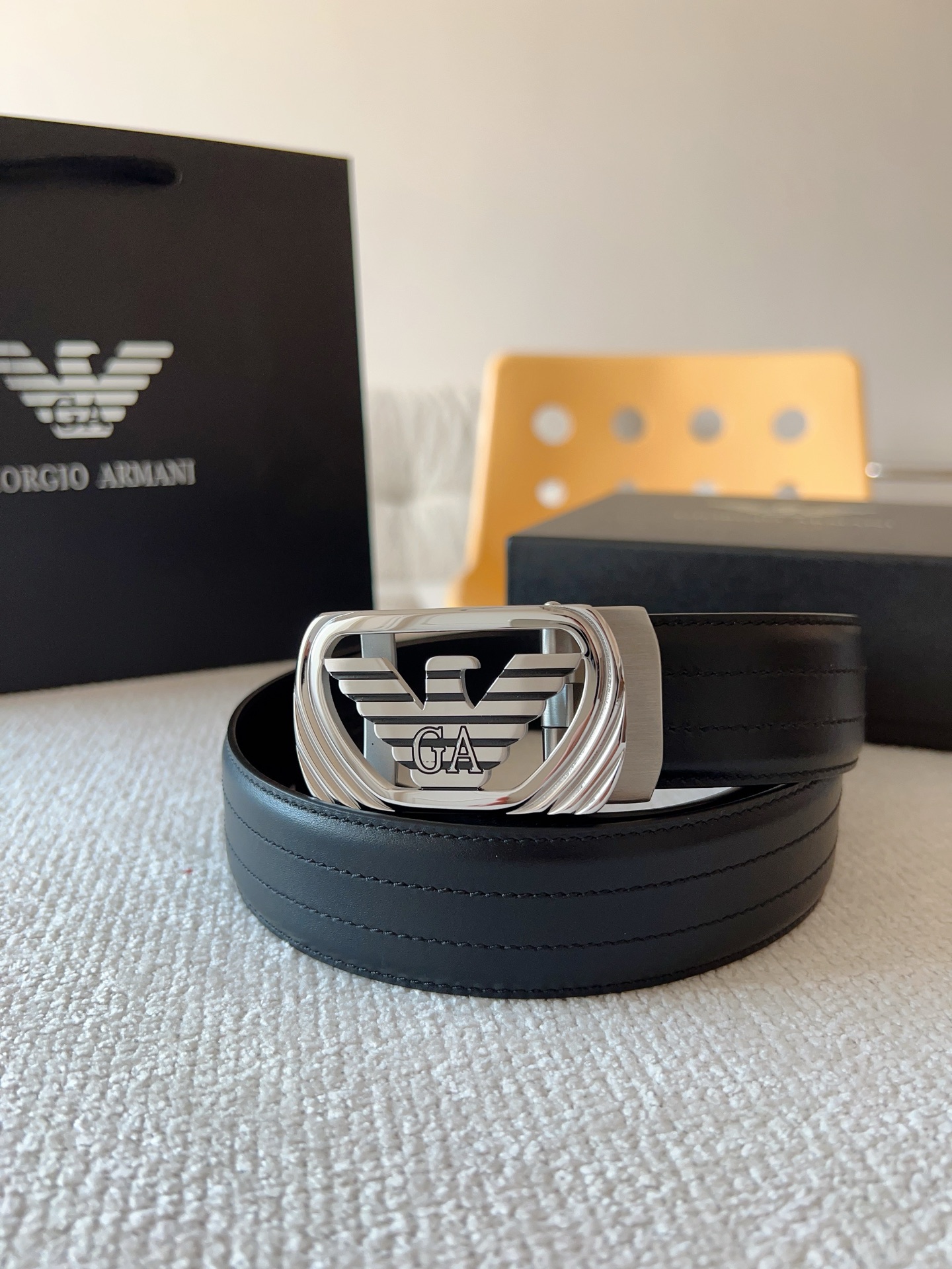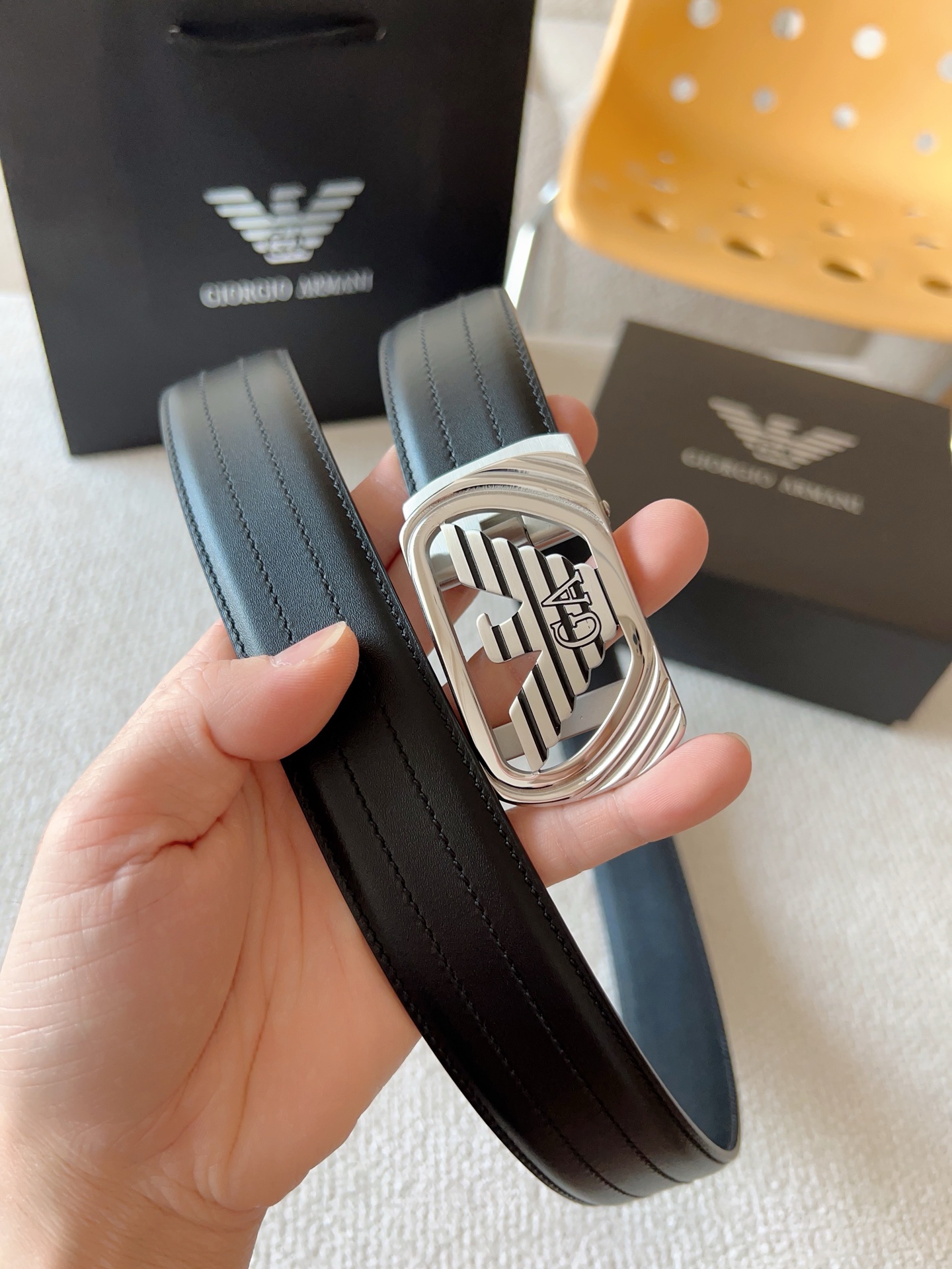 Prada, private custom smooth automatic buckle series. Original leather with steel buckle hardware, easy to wear belt; pull-out design allows adjustment to your suitable size. Width 35mm, create your own style.