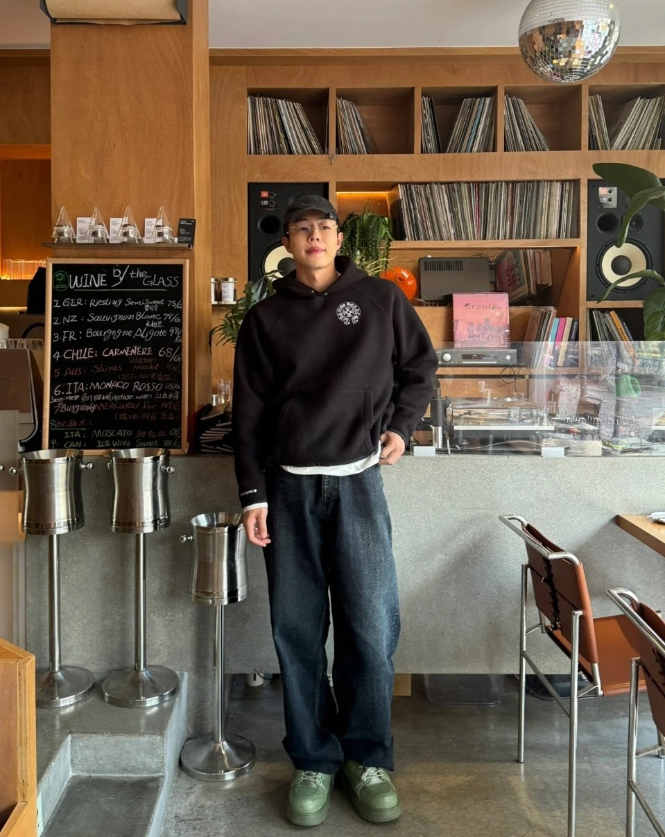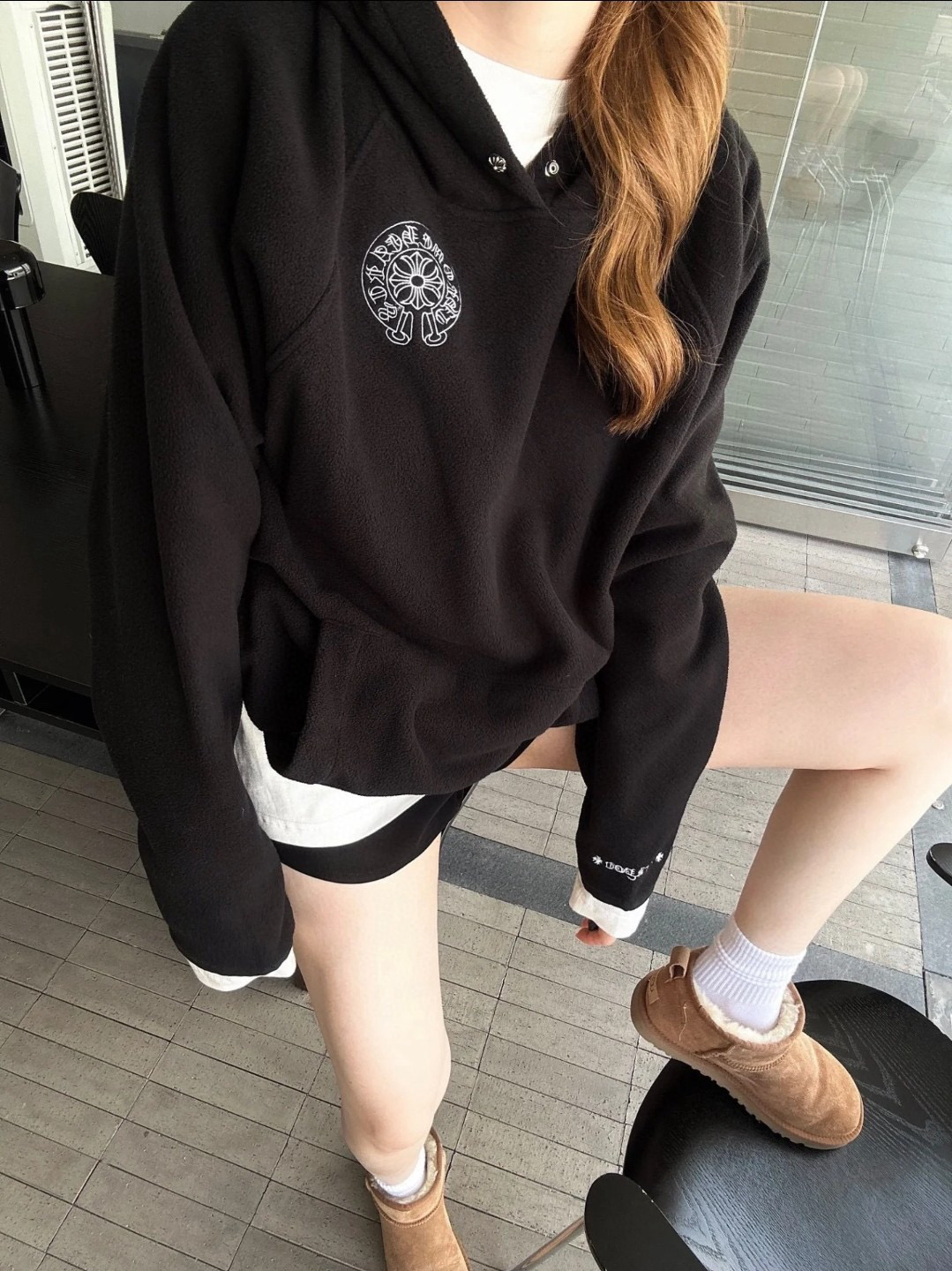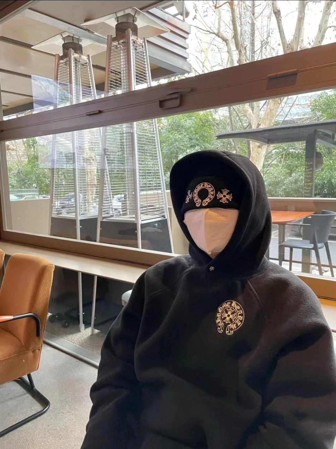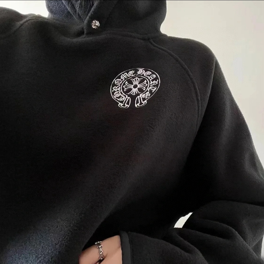 Item 20255797 Chrome Hearts new tracksuit. Gray/black, SML. Hooded zip-up with Sanskrit rhinestones & flared pants.