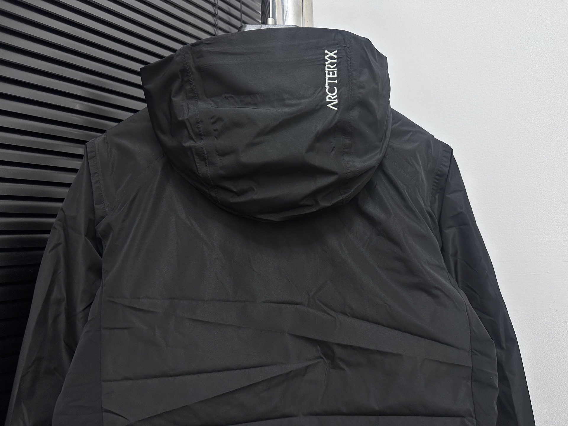 Low temperatures, cold winds, light snowfall. The hooded jacket locks in warmth, is windproof and rainproof, allowing you to enjoy a full day of outdoor life. The sleeves are made of PFAS-free GORE-TEX fabric, capable of resisting wind and rain. The lower back and underarms use lightweight stretch softshell, offering better ventilation and breathability.