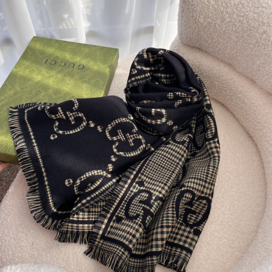 The classic GG pattern is one of the iconic elements the brand began using in the 1930s. After nearly a century of evolution, it continues to inspire the brand to explore new expressions. On this wool scarf, it is presented in an exaggerated manner. Dimensions 50✖️180