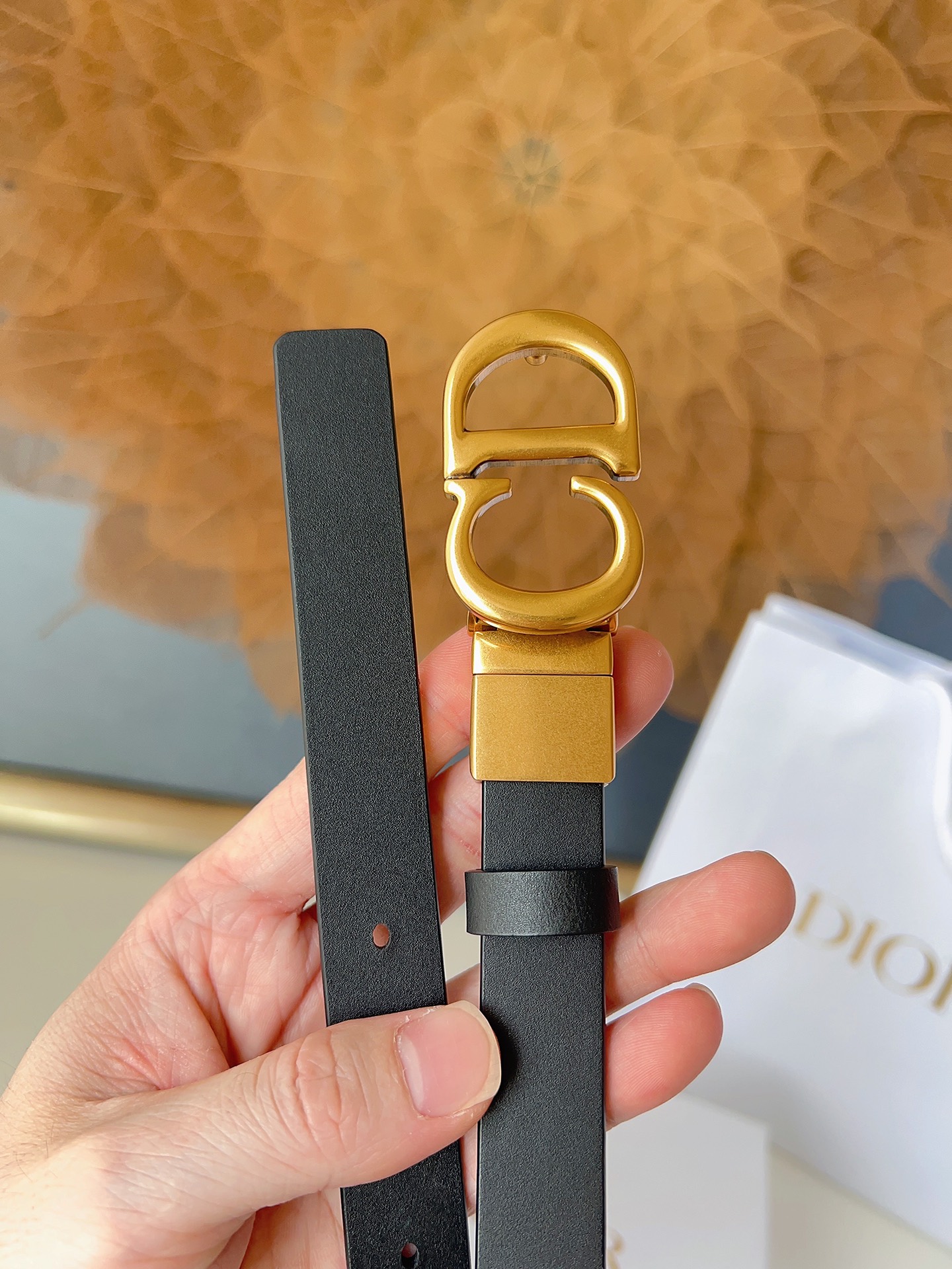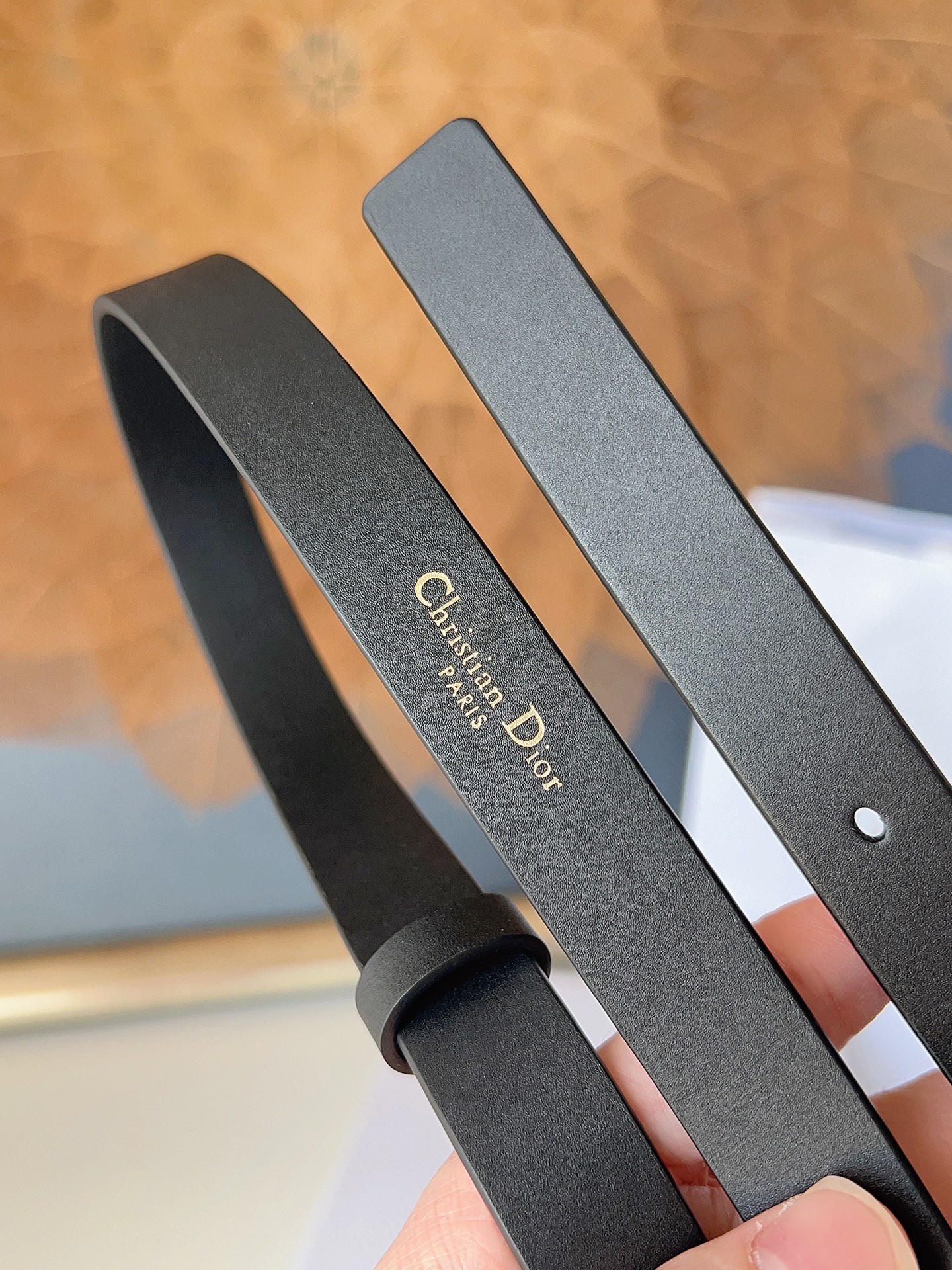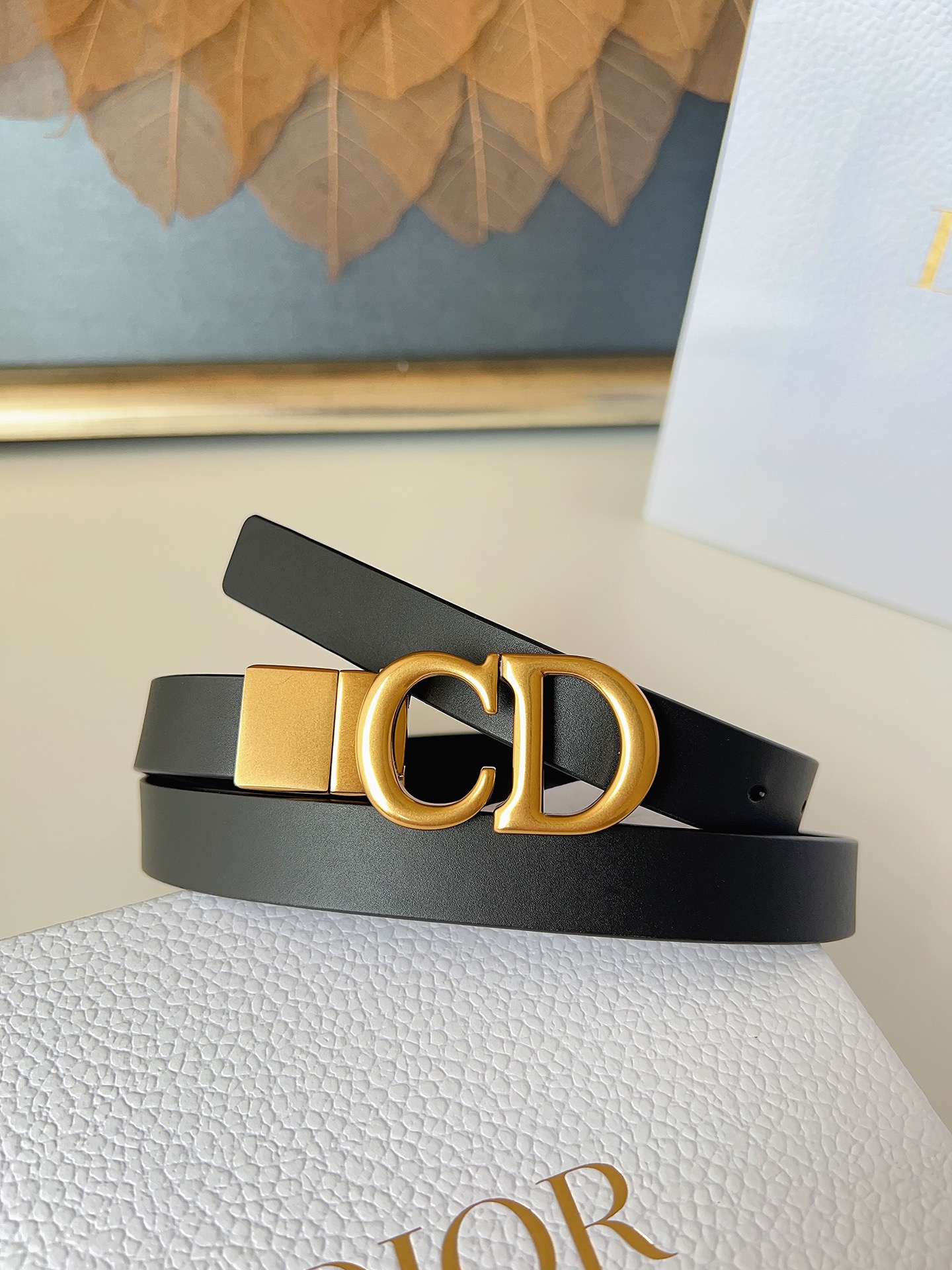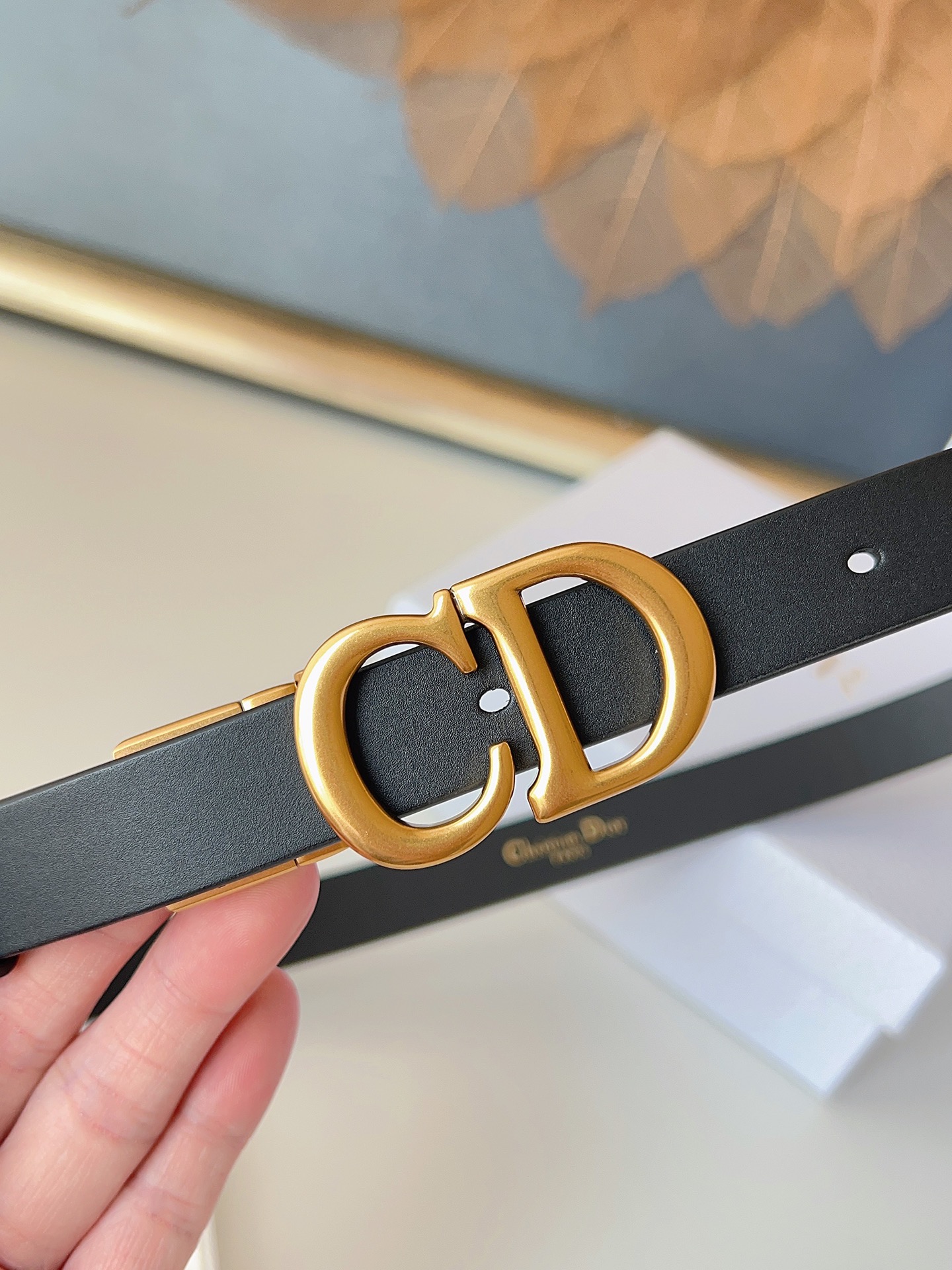The Dior saddle belt is a classic accessory. It is reinterpreted with grained calfskin, featuring a fashionable and casual design, adorned with a shiny metal rotating CD belt buckle. The slim style enhances the figure when paired with skirts, dresses, or trousers. Width 2.0cm