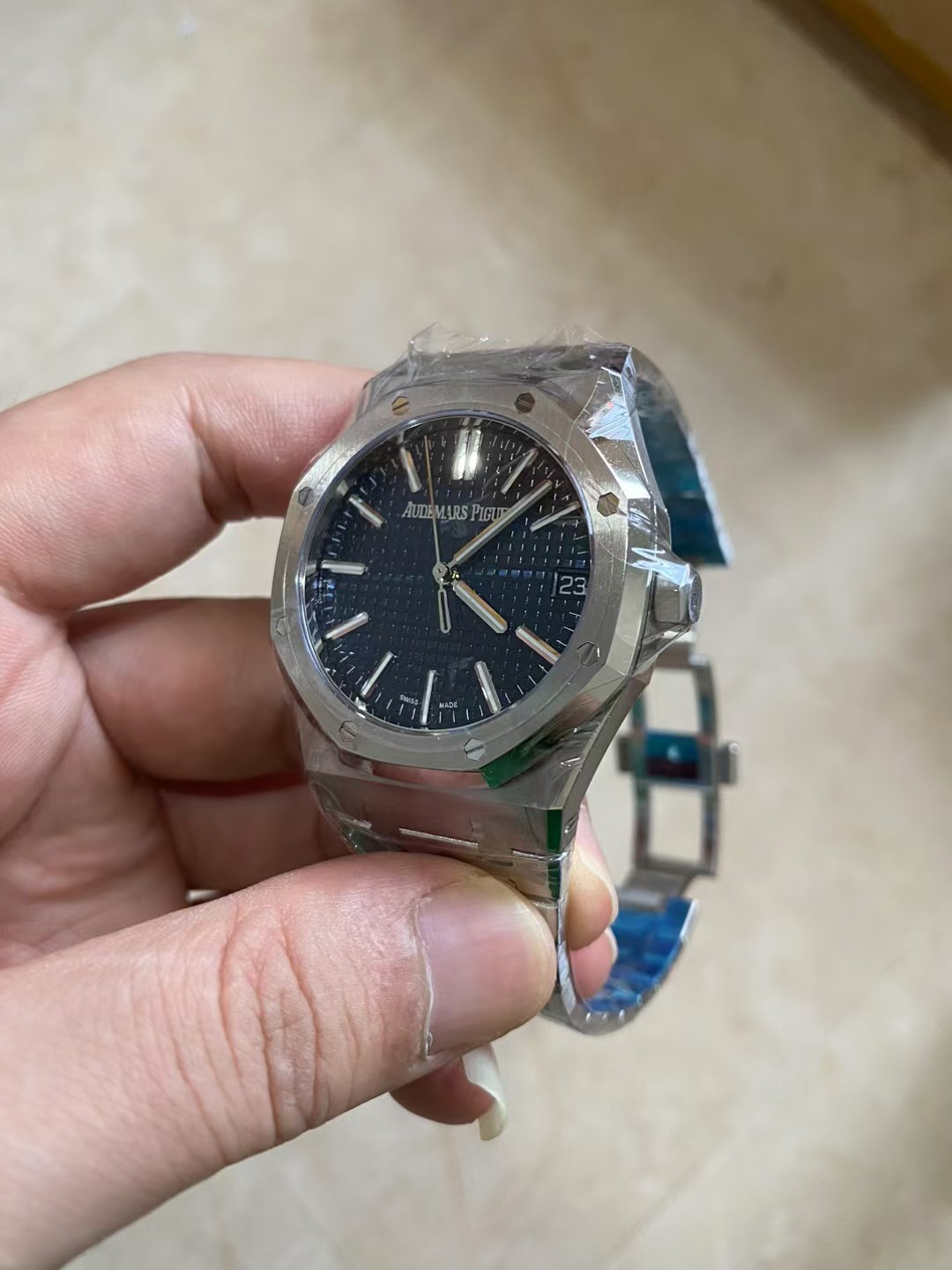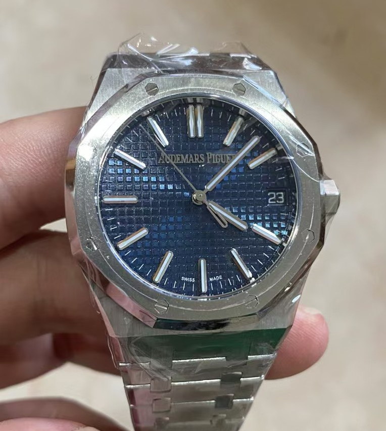 TOP factory presents Audemars Piguet 15510 Royal Oak watch. Features CAL.4302 movement, precise case and bezel, thinner brushed bracelet, 3D blue dial, and high-quality hands.