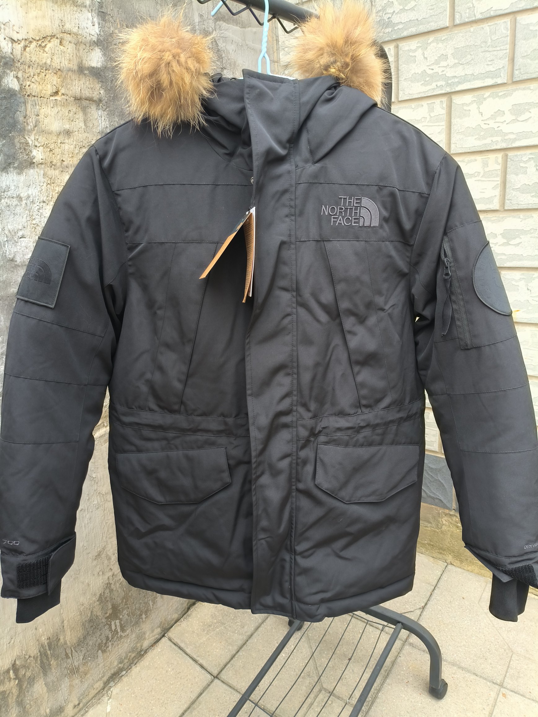 Top-grade The North Face jacket with real raccoon fur collar, 90% white duck down filling, waterproof fabric. Colors: black, yellow. Sizes: S-2XL.