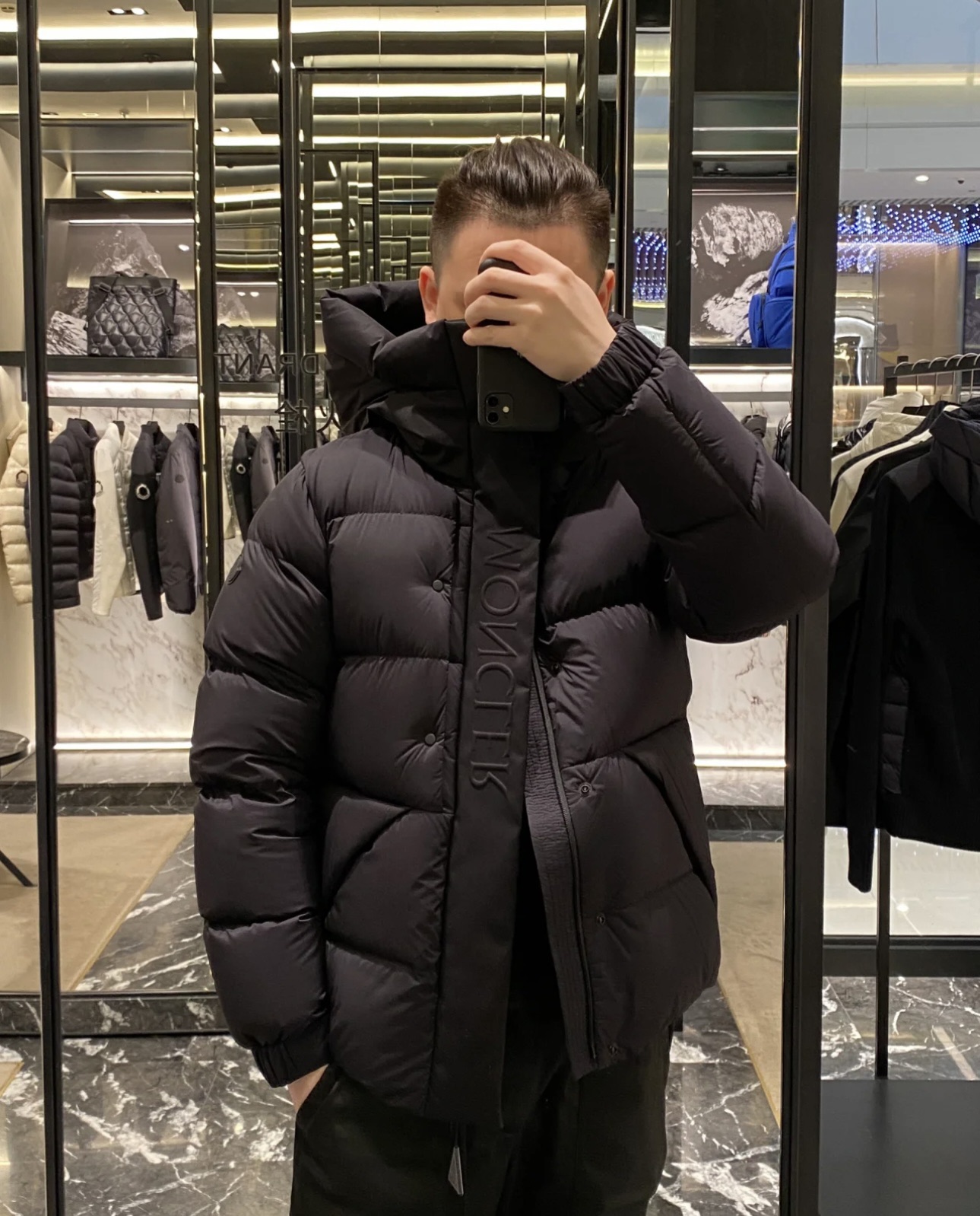 Top foreign trade Moncler Madeira Moncler black warrior short men's down jacket jacket couples wear women also look good
