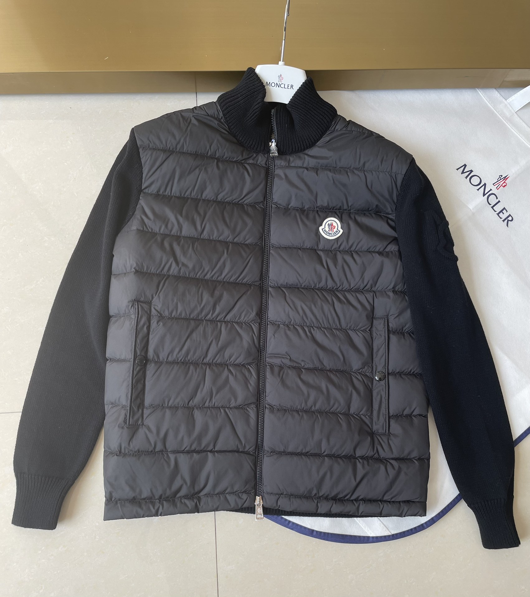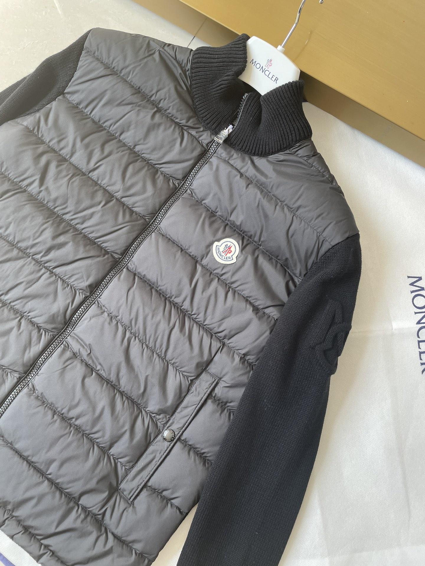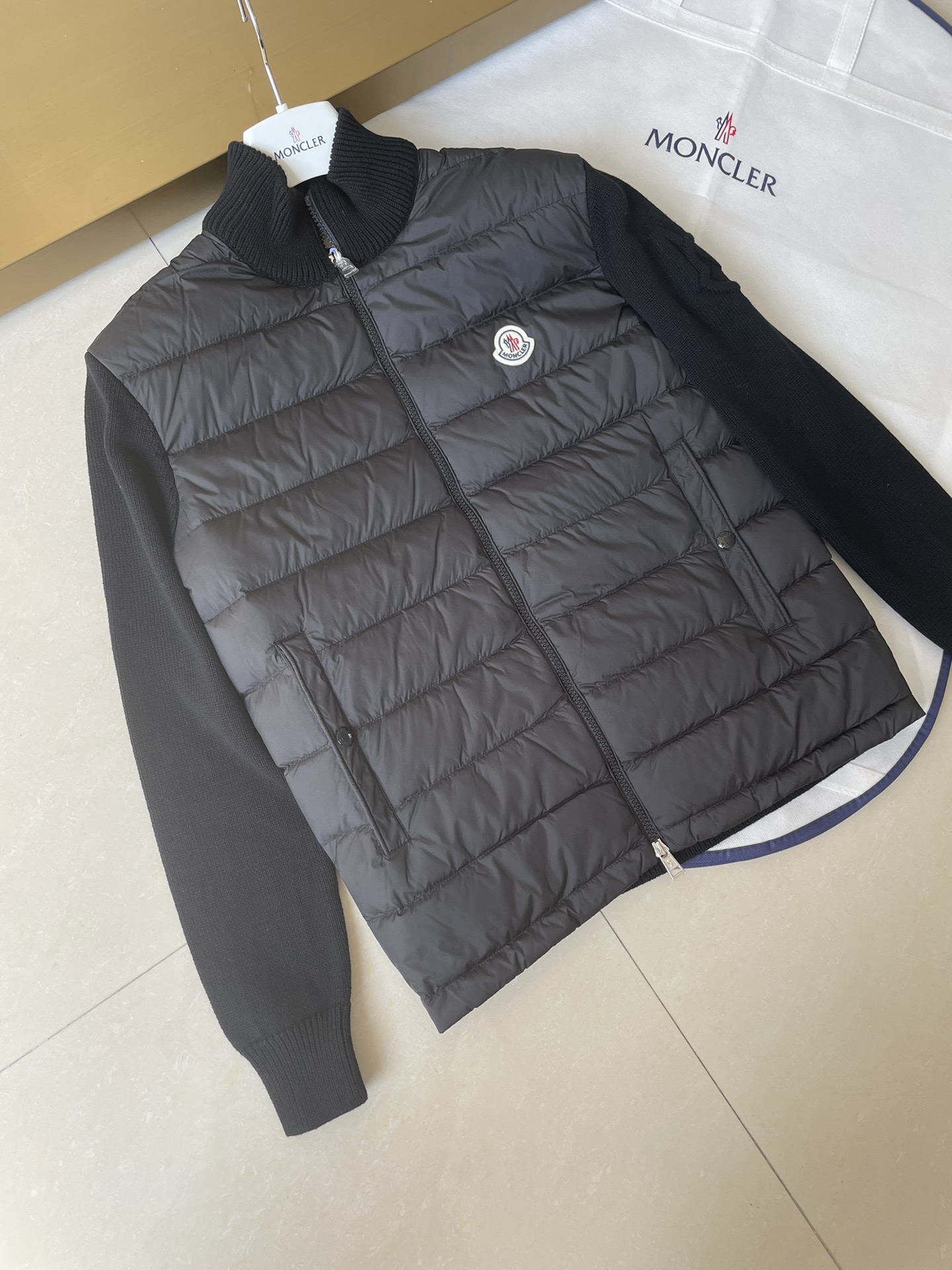 Top foreign trade Moncler wool knit splicing lightweight down jacket men's sleeve patch 3D logo pattern classic style L70