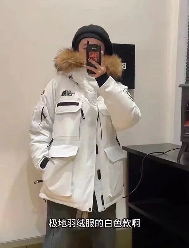 Top-grade foreign trade, Polar 1197, The North Face, Southern Cross Parka, four-pocket polar workwear style down jacket with detachable fur collar. After becoming the new generation school uniform, it has emerged as an aesthetic star in the Japanese branch. The slightly mid-long version, combined with a functional appearance, makes it a good-looking and durable down coat. Compared to some details, it is much more complex than the regular North Face, which leads to fewer people operating it. National standard 90% down filling amount over 400g. The overall silhouette and functional outer material do not allow it to have a particularly fluffy appearance like the 96 lightweight fabric, but the warmth is even more outstanding. Hooded style with detachable fur collar, connected by seven snap buttons, details include a brim. Multi-pocket composite design, front hook and loop closure with side zipper; inside two mesh pockets and zipper. Regular inner pocket, waist and hem all have adjustable buckles; full-body cutting and color-blocking with 75 pieces, the entire jacket has a total of 12 eyelets, zipper and hook and loop double placket, imported Padalin embroidery (no skipped stitches or broken threads).