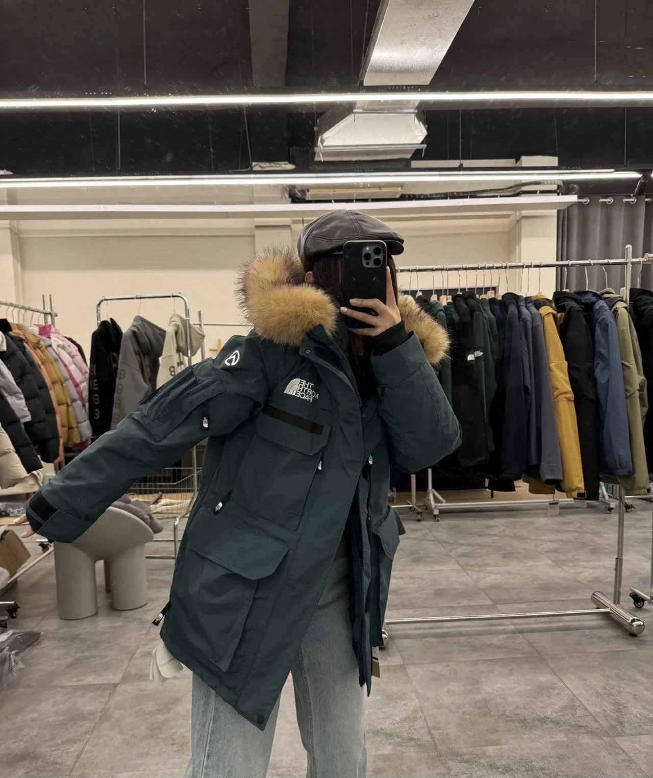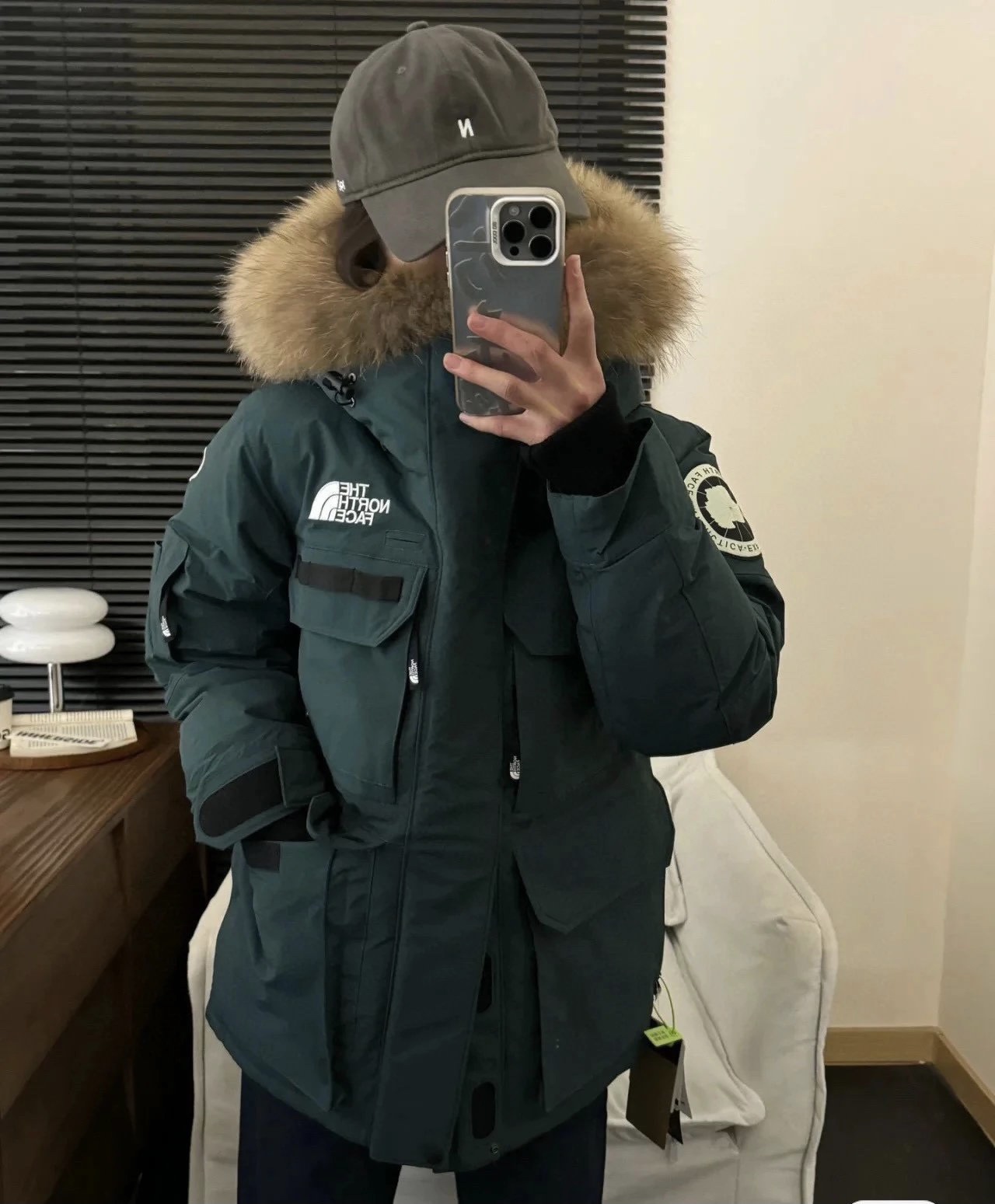 Top Foreign Trade Arctic 1197 The North Face Southern Cross Parka Four-Pocket Arctic Workwear Detachable Fur Collar Down Jacket®. After becoming the new generation school uniform, it has emerged as an aesthetic star in the Japanese branch. The slightly mid-long cut, combined with a functional appearance, makes it a truly good-looking and durable down jacket. Compared to some details, it is much more complex than the regular North Face, which leads to fewer people attempting to replicate it. Filled with over 400g of national standard 90% down, the overall silhouette and functional outer fabric do not allow it to have an especially fluffy appearance like the 96 lightweight fabric, but its warmth is even more outstanding. The hooded style features a detachable fur collar, connected with seven snap buttons, and includes a brim detail. Multi-pocket composite design, with front hook-and-loop fastener closure and side zipper; inside, there are two mesh pockets and a zipper. Regular inner pockets, waist, and hem all have adjustable buckles; the entire garment is pieced together with 75 color-matched panels, and the whole jacket has a total of 12 eyelets. Zipper and hook-and-loop double placket, imported Padalin embroidery (no skipped stitches or broken threads).