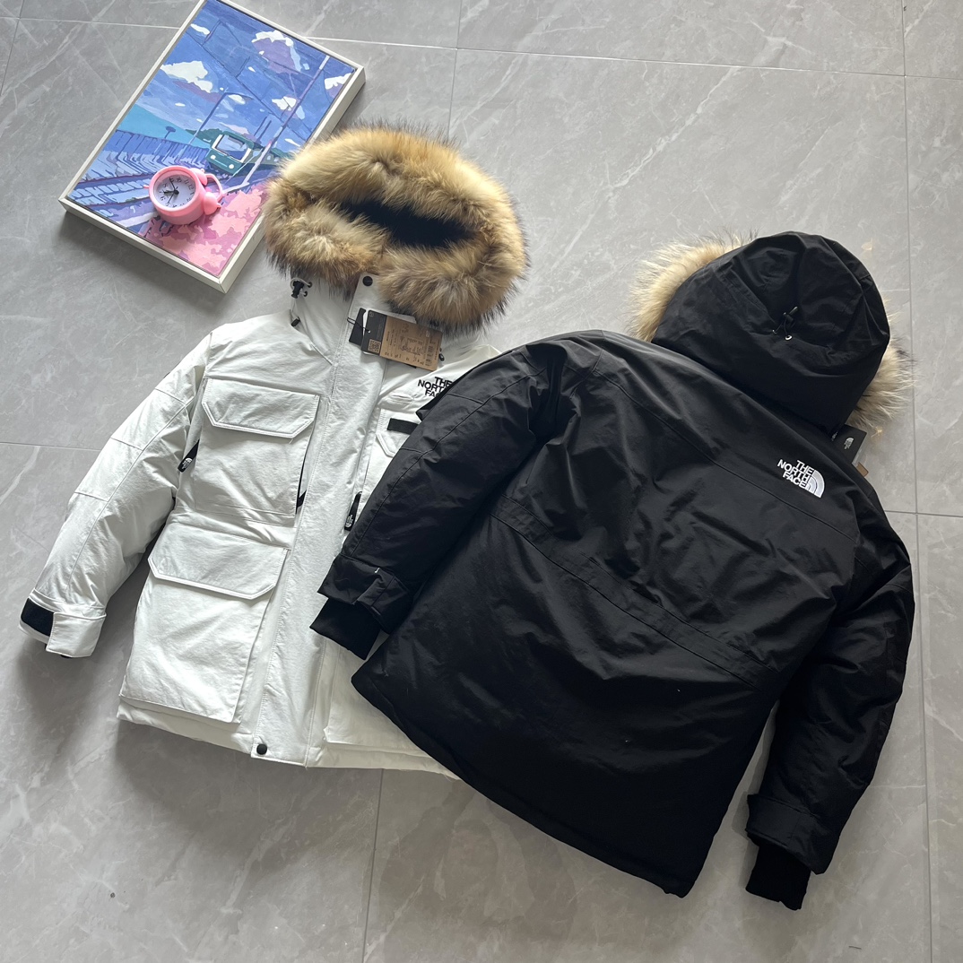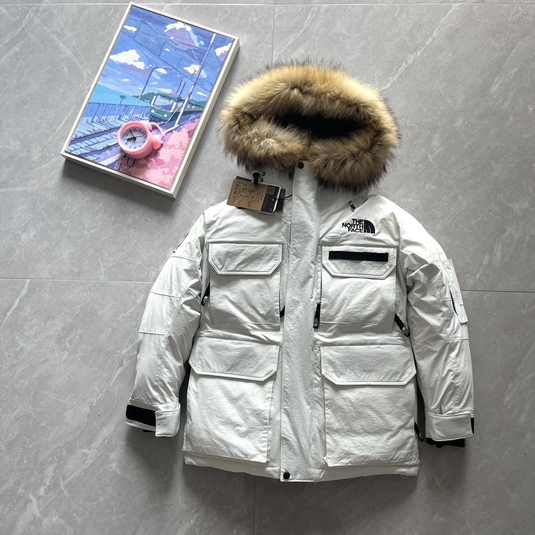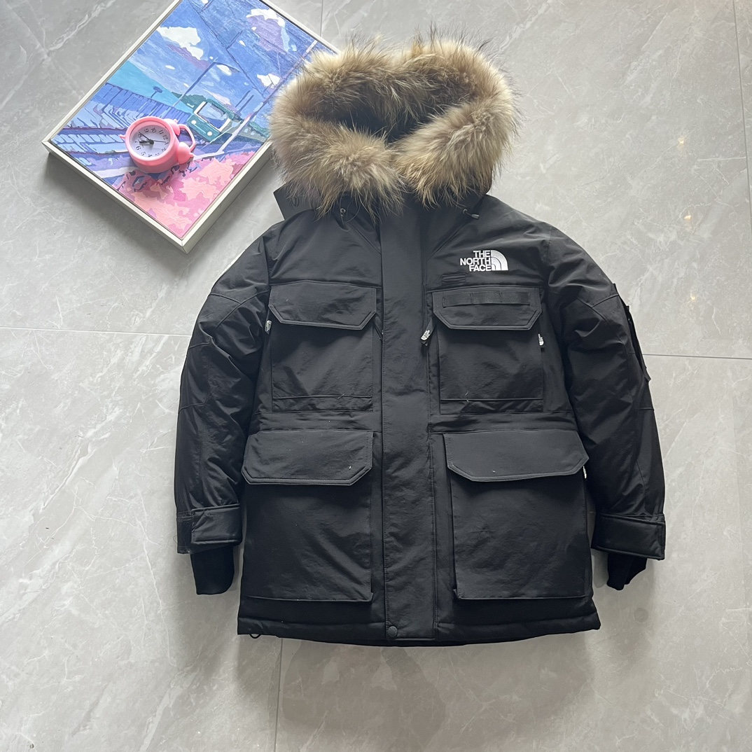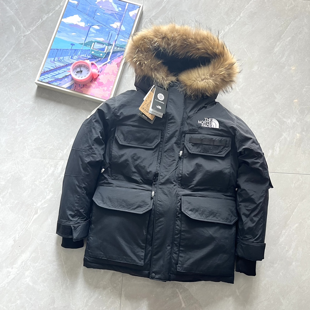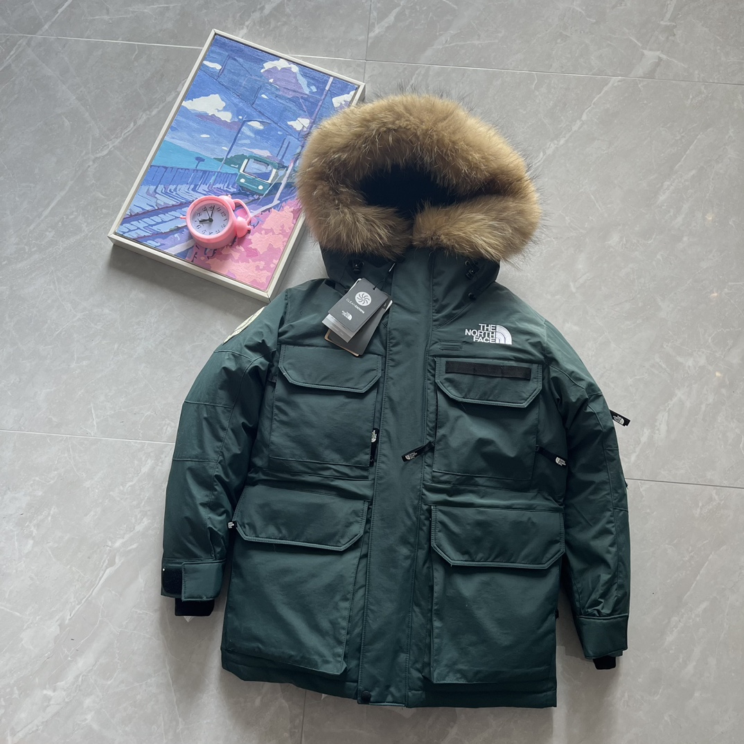 Top foreign trade, Polar 1197, The North Face, Southern Cross Parka four-pocket polar workwear down jacket with detachable fur collar®. After becoming the new generation school uniform, it has emerged as an aesthetic star in the Japanese branch. The slightly mid-long cut, combined with a functional appearance, makes it a truly good-looking and durable down coat. Compared to some details, it is much more complex than the regular North Face, which leads to fewer people handling it. National standard 90% down filling over 400g. The overall silhouette and functional outer material do not allow it to have an especially fluffy appearance like the 96 lightweight fabric, but its warmth is even more outstanding. The hooded style has a detachable fur collar, connected with seven snap buttons, and features a brim detail. Multi-pocket composite design, with front hook-and-loop closure and side zipper; inside, two mesh pockets and a zipper. Regular inner pocket, waist, and hem all have adjustable buckles; full-body cutting and color-blocking with 75 pieces. The entire jacket has a total of 12 eyelets, zipper and hook-and-loop double placket, imported Padalin embroidery (no skipped stitches or broken threads).