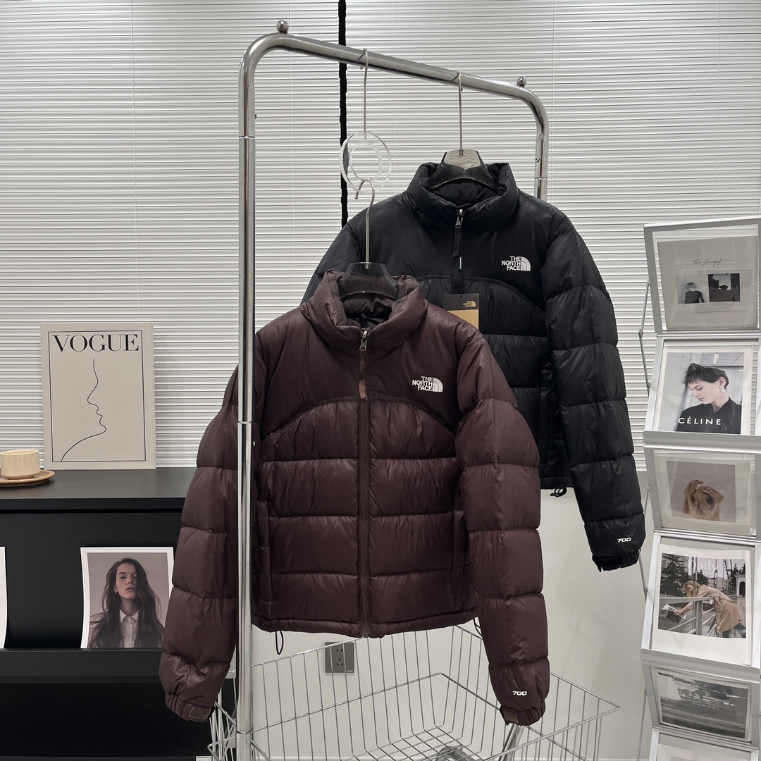 Top-tier foreign trade The North Face women's short stand-collar down jacket! Officially sold on the brand's website, loved by many celebrities and influencers! Features customer-supplied tech windproof and waterproof fabric, filled with 90% gray goose down and 10% feathers—lightweight, fluffy, warm, and comfortable! Small embroidered logo on the chest, delicate and full, original hardware and accessories, impeccable craftsmanship and details. Wearing it gives a trendy, fashionable look, versatile and stylish—don’t miss out if you like it!