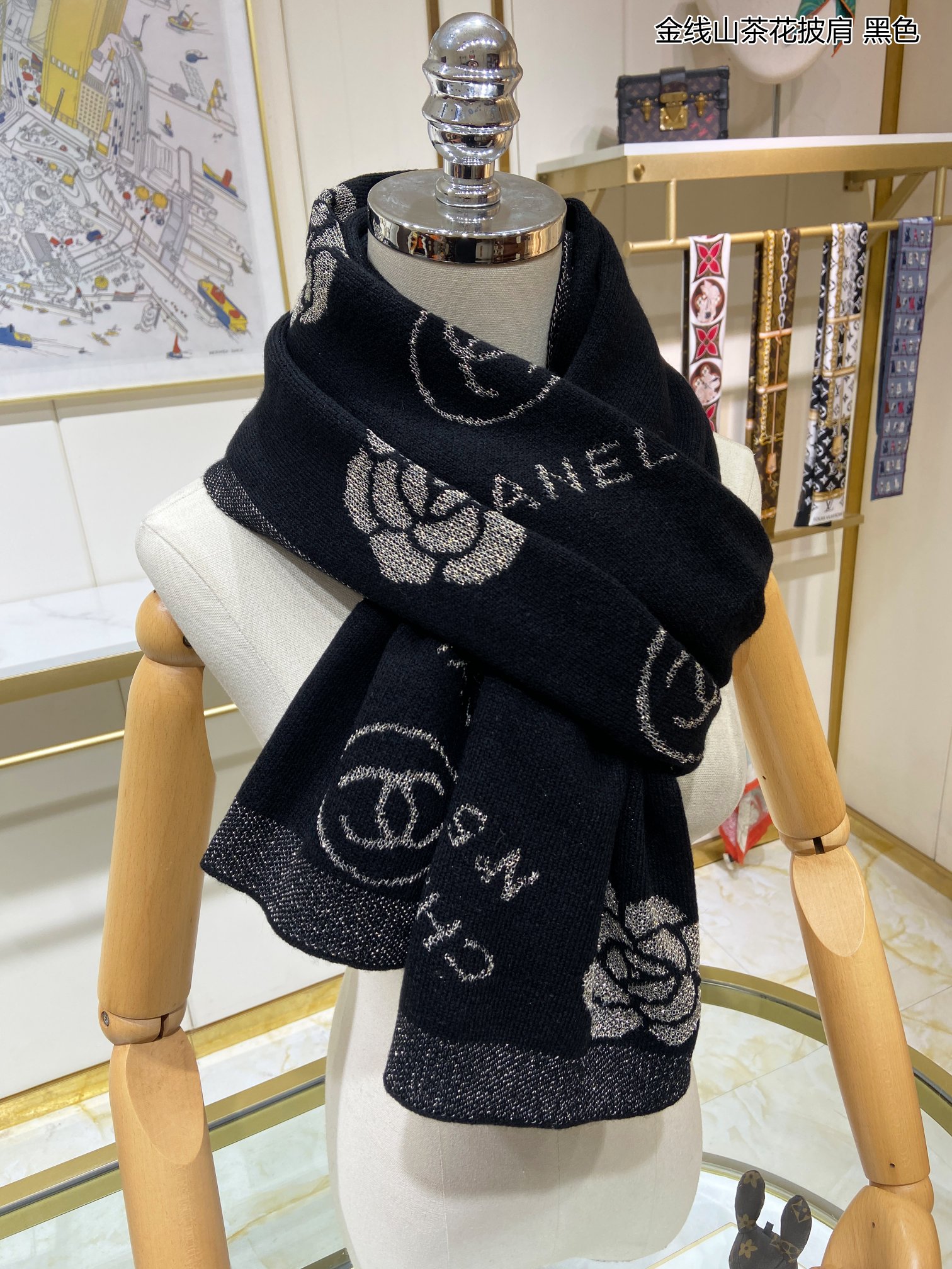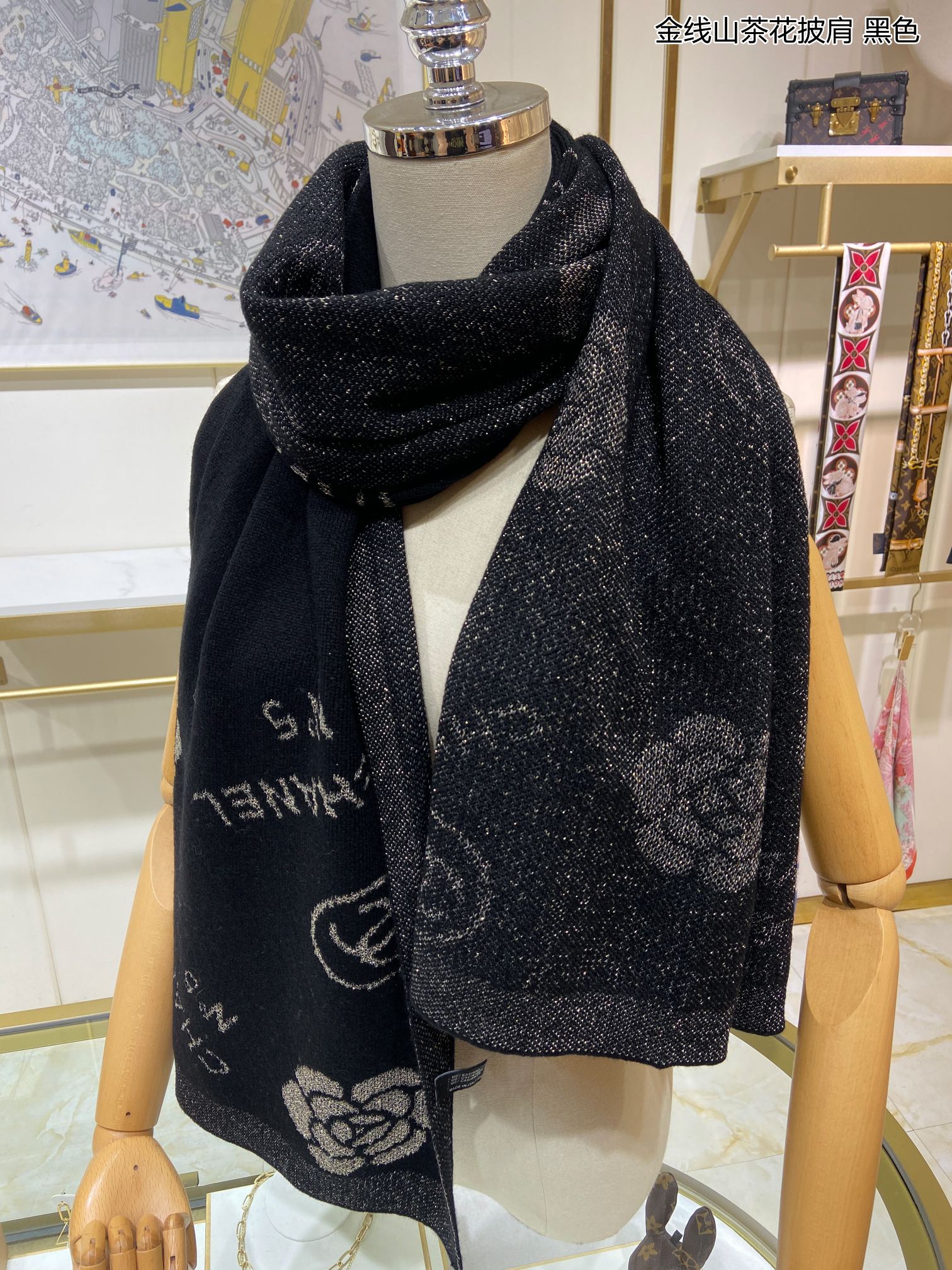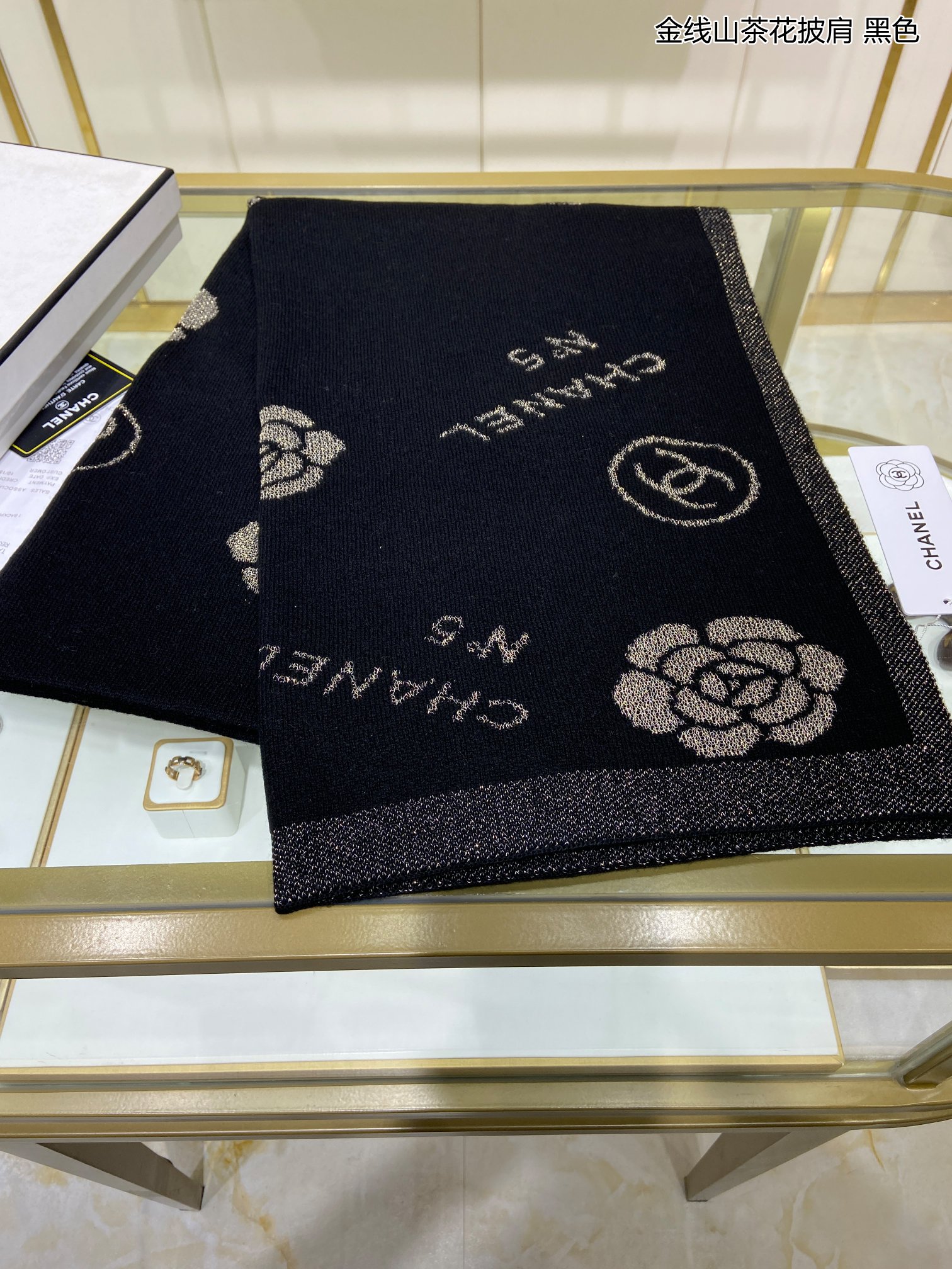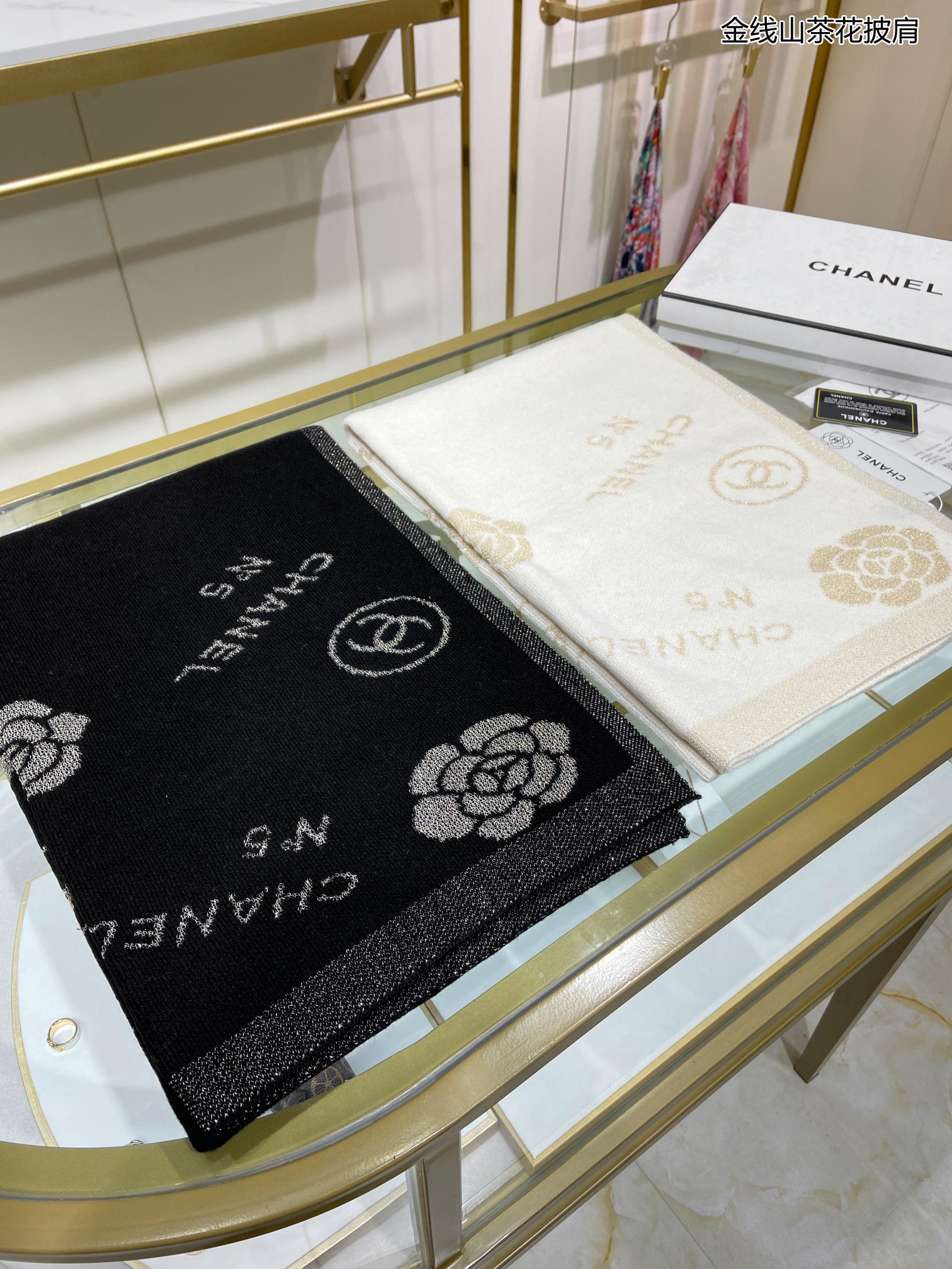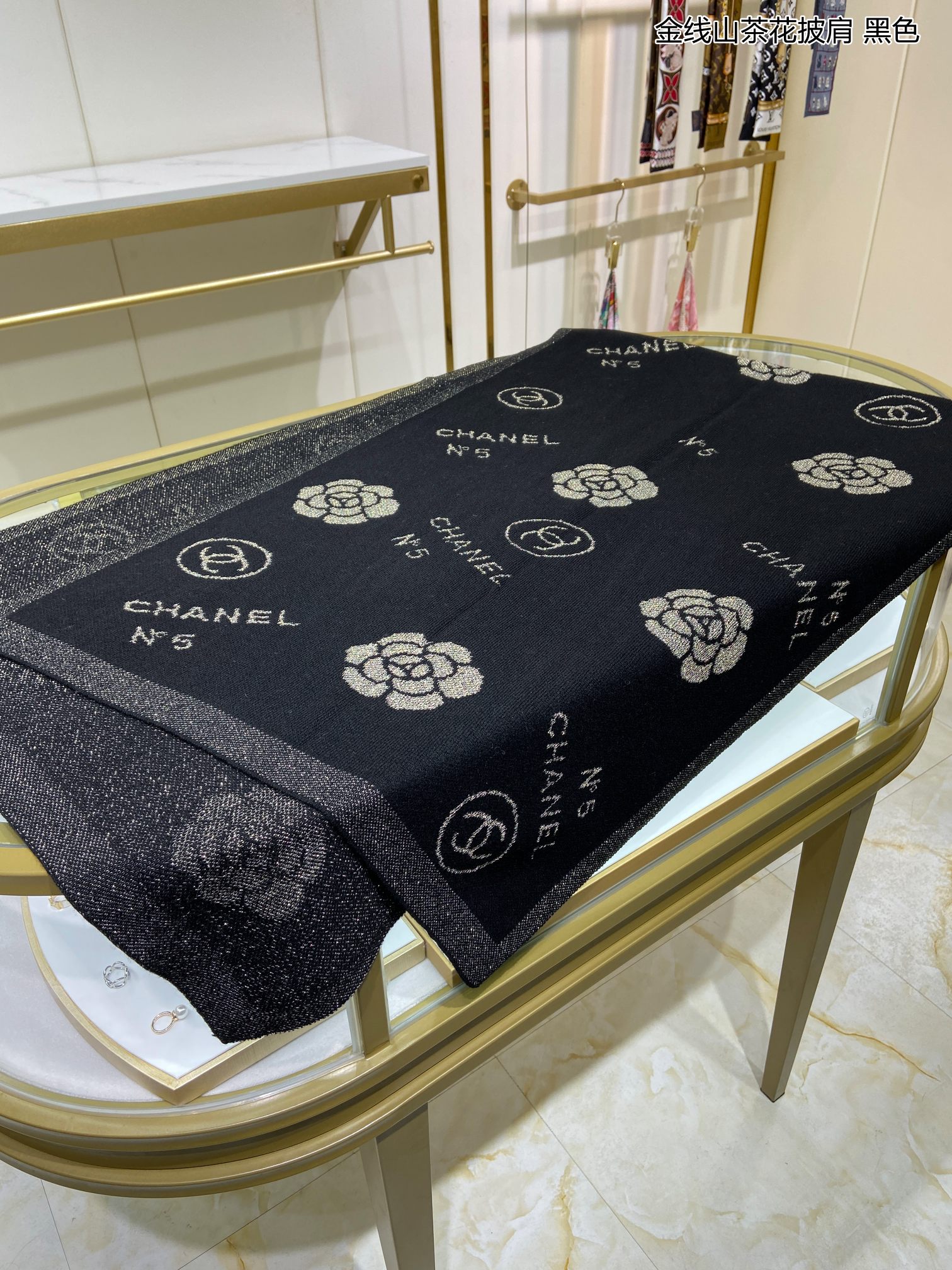 Top-tier CHANEL No.5 cashmere shawl with gold thread, limited edition, high-quality, perfect for gifts or personal use.