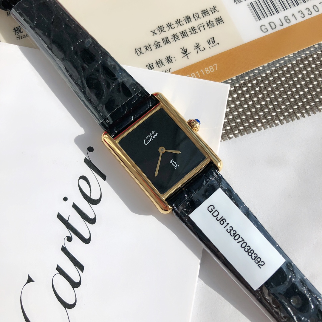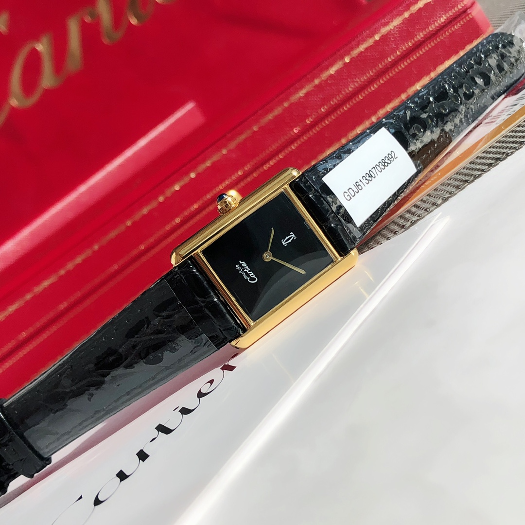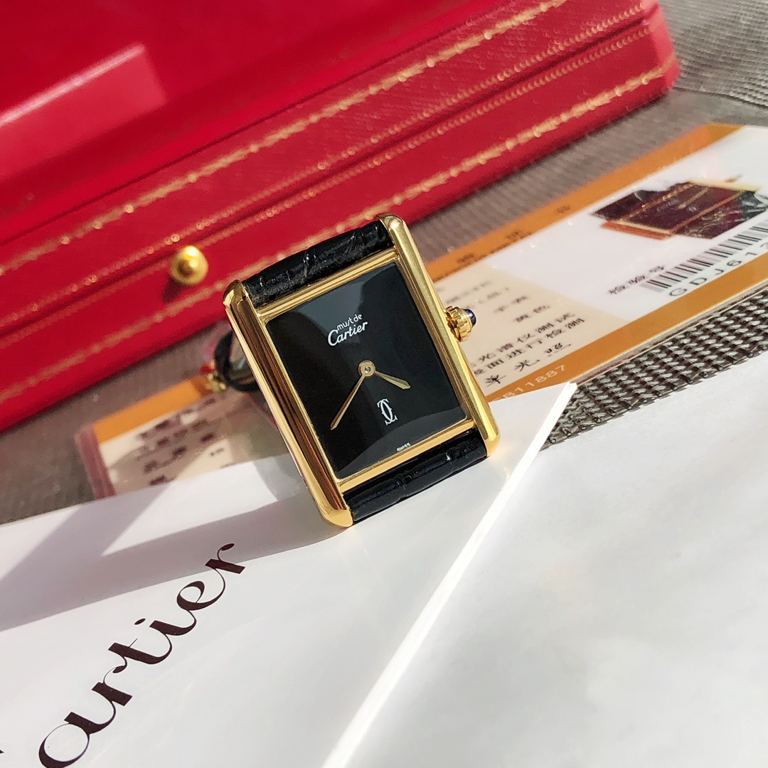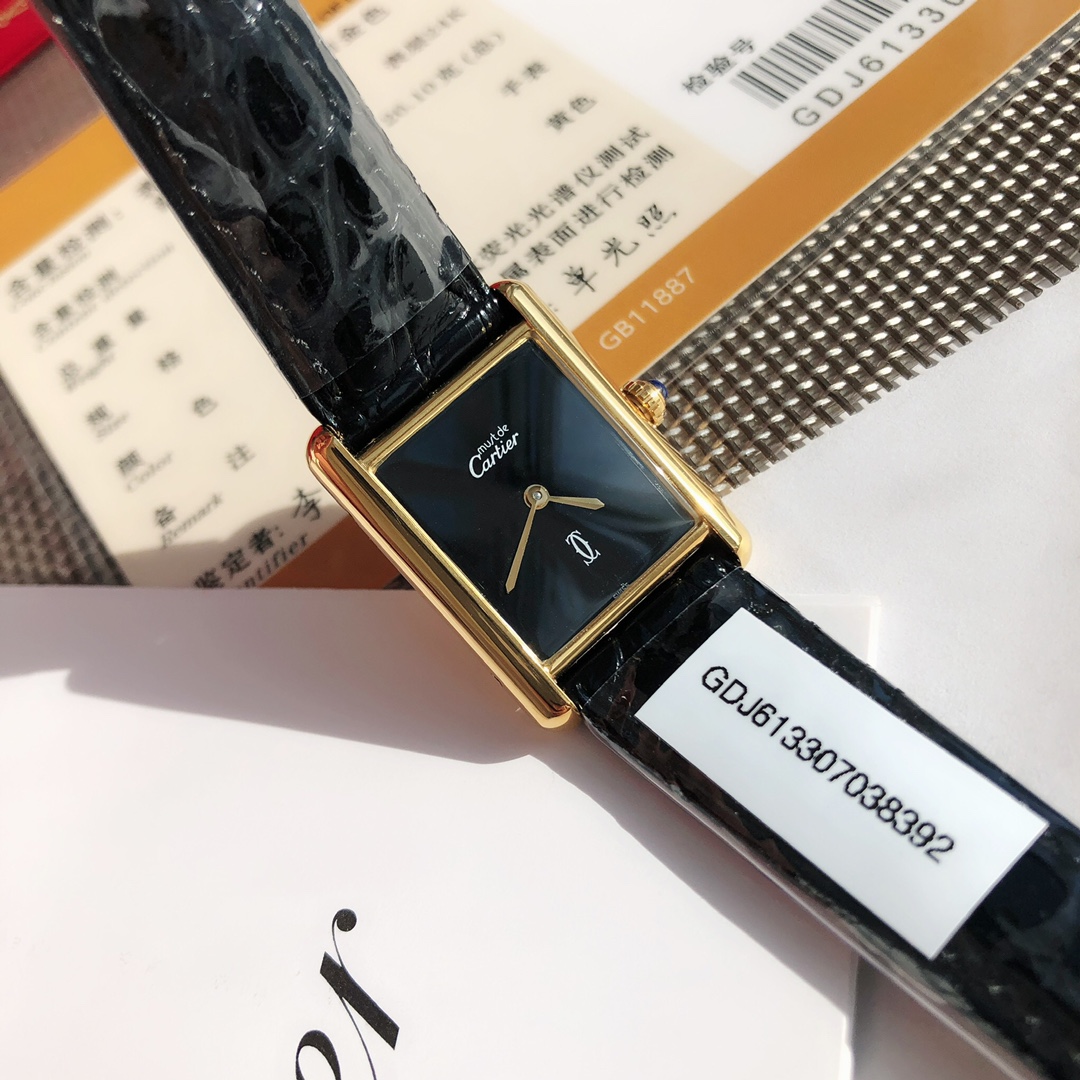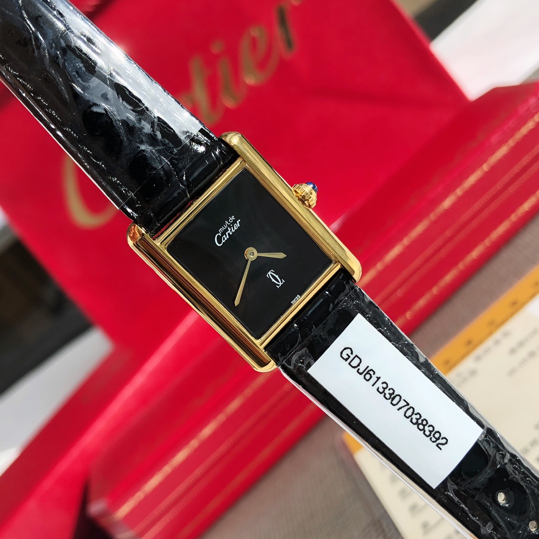 24k gold-plated Cartier Tank Must de vintage small gold watch, original specifications, divine aesthetics, imported alligator strap, sapphire crown exquisitely clear, not afraid of high-cost operations.