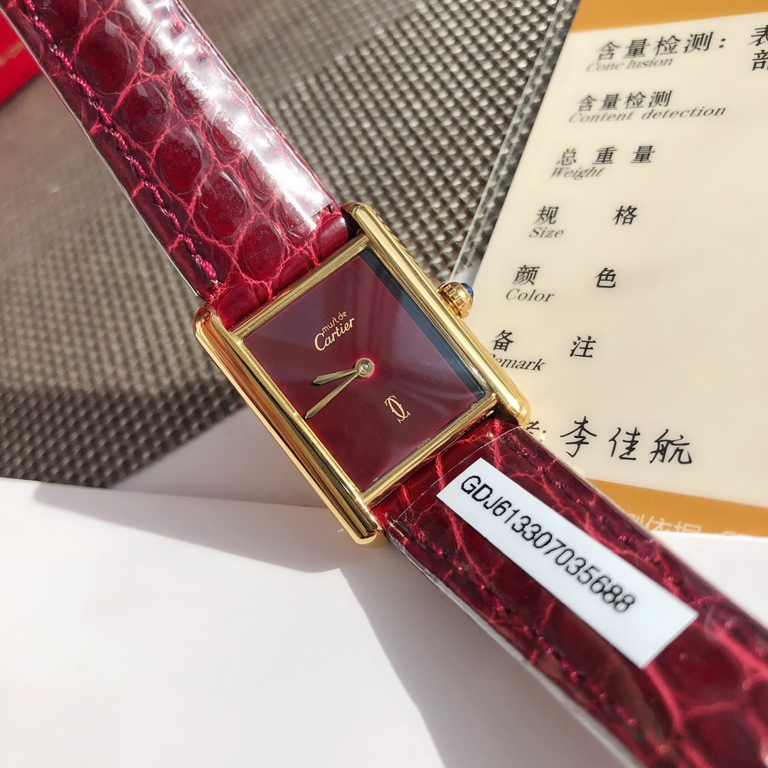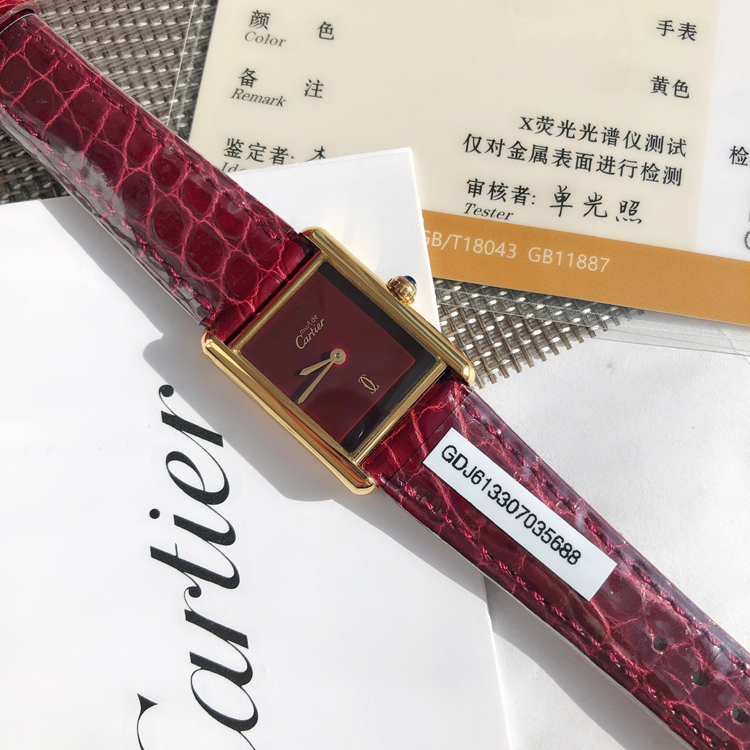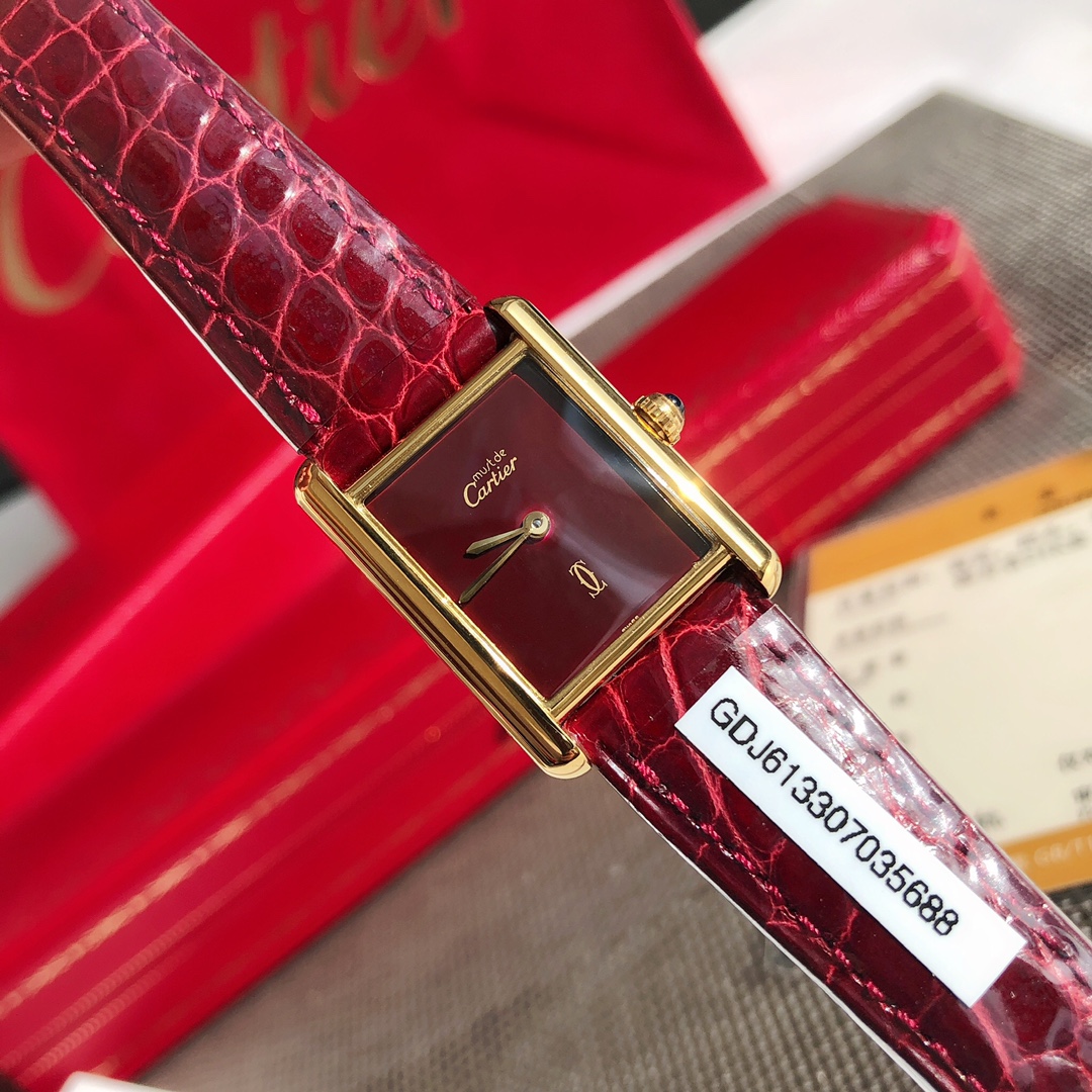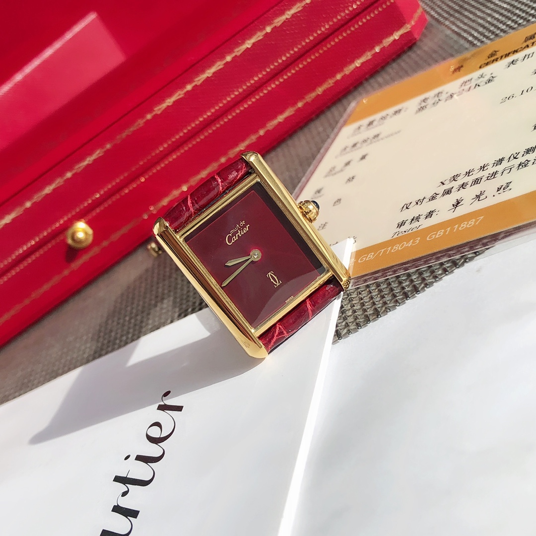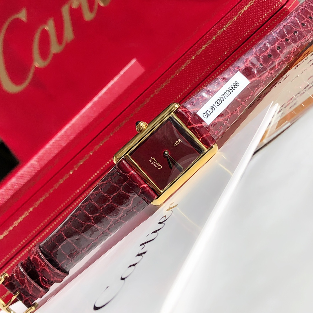 24k gold-plated genuine gold Cartier Tank Must de vintage small gold watch, original specifications, divine beauty, imported alligator strap, sapphire crown exquisitely clear, not afraid of high-cost operation.