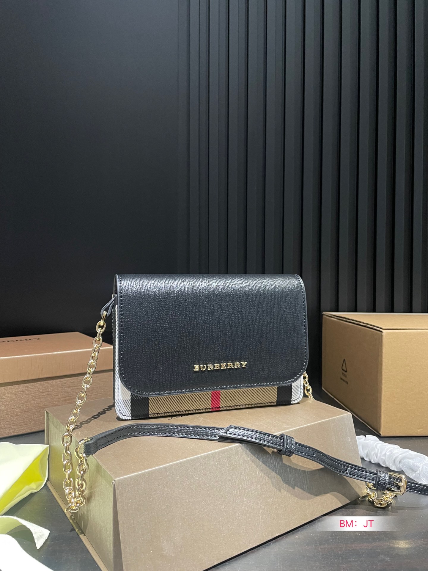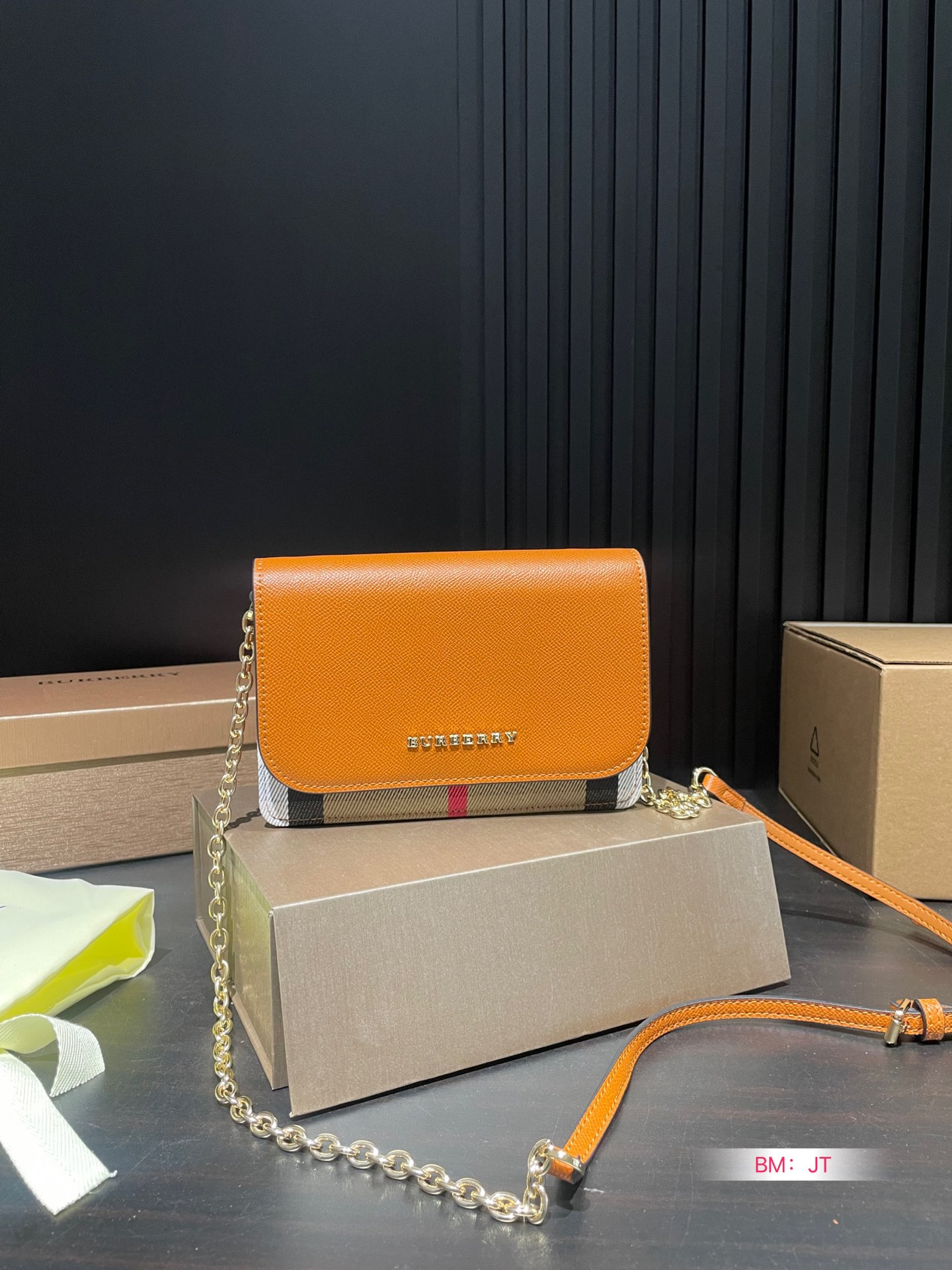With a folding gift box, the timeless Burberry check pattern remains ever-popular. This unique WOC series can be handheld or worn over the shoulder, featuring inner card slots. Size: 20*13cm.