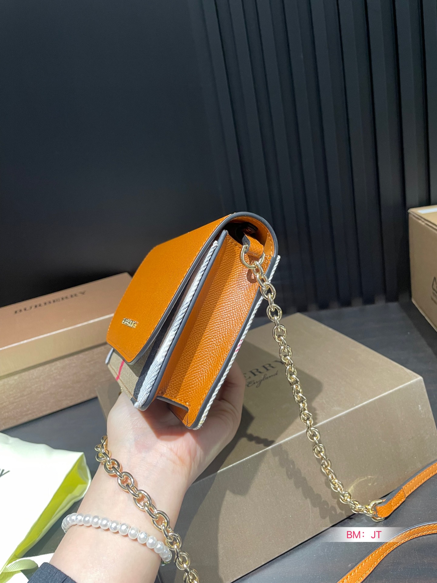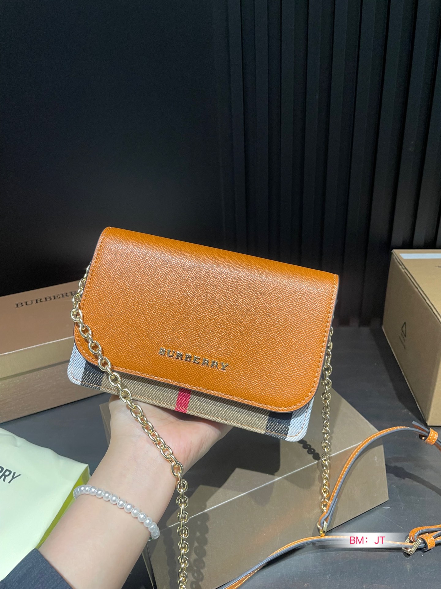 With a folding gift box, the timeless Burberry check remains ever-popular. This unique WOC series can be handheld or worn over the shoulder, featuring inner card slots. Size: 20*13cm.