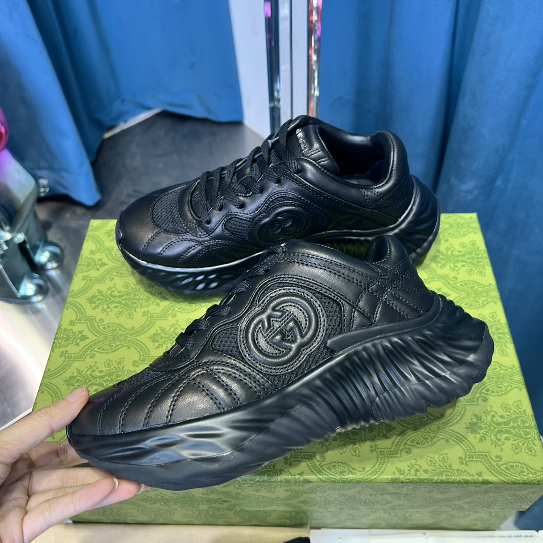2024 New Color Gucci Ripple Wave Sneakers. Top version, original materials. Unisex casual dad shoes. Luxury leather, 3D G motif.