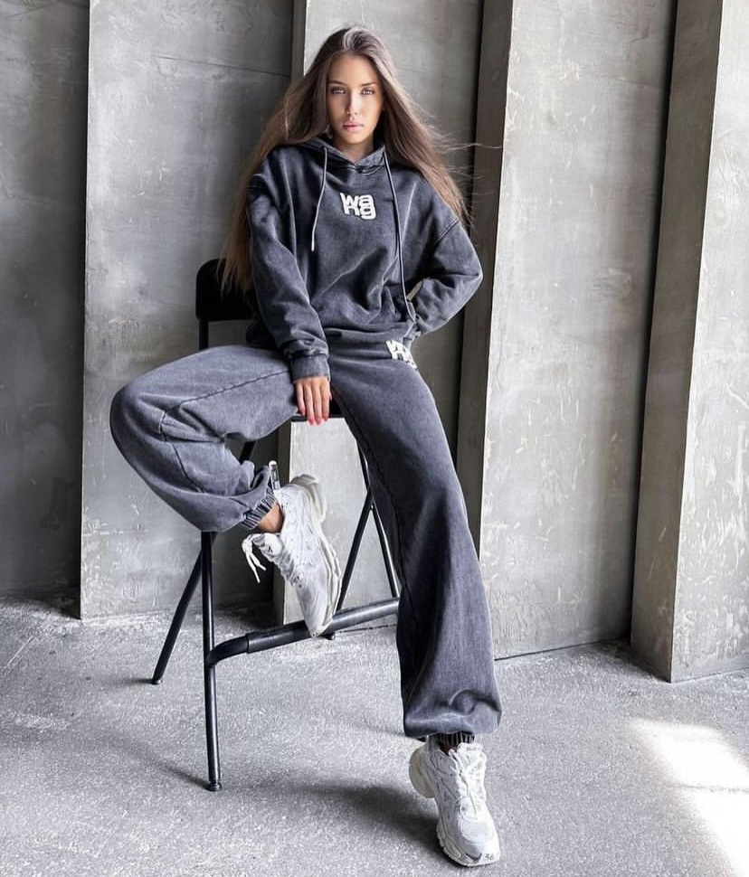 Alexander King's new gray sportswear set, hoodie and pants, sizes S, M, L.