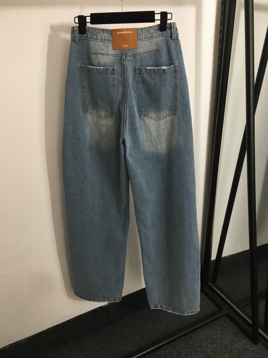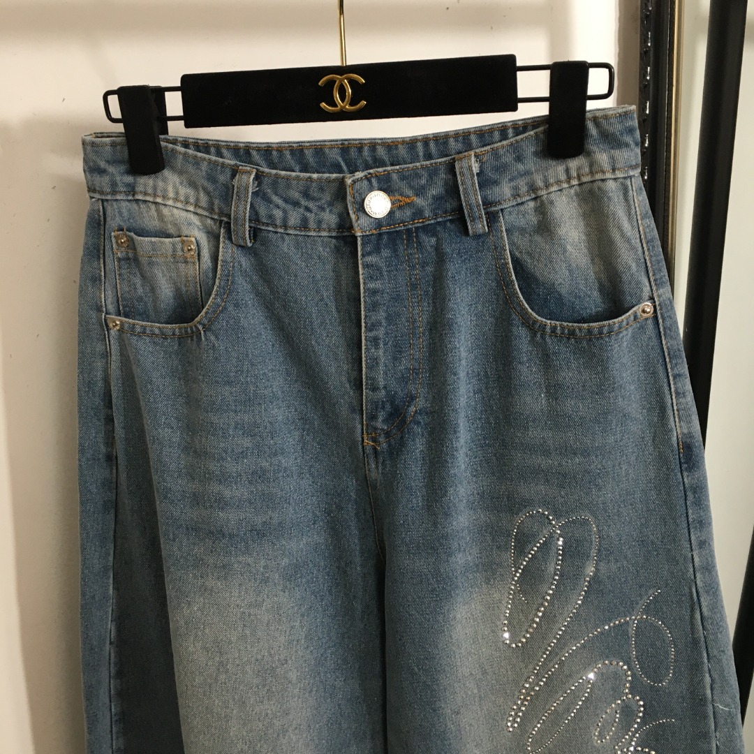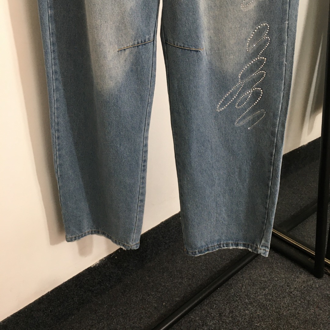 Style Number 20252013 Alexander*大王家新款 Fashion Rhinestone Versatile Slimming Denim Pants, Blue, SML, [Size M; Waist 72, Length 111]