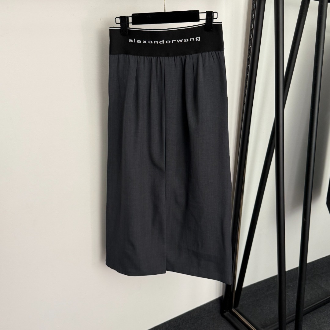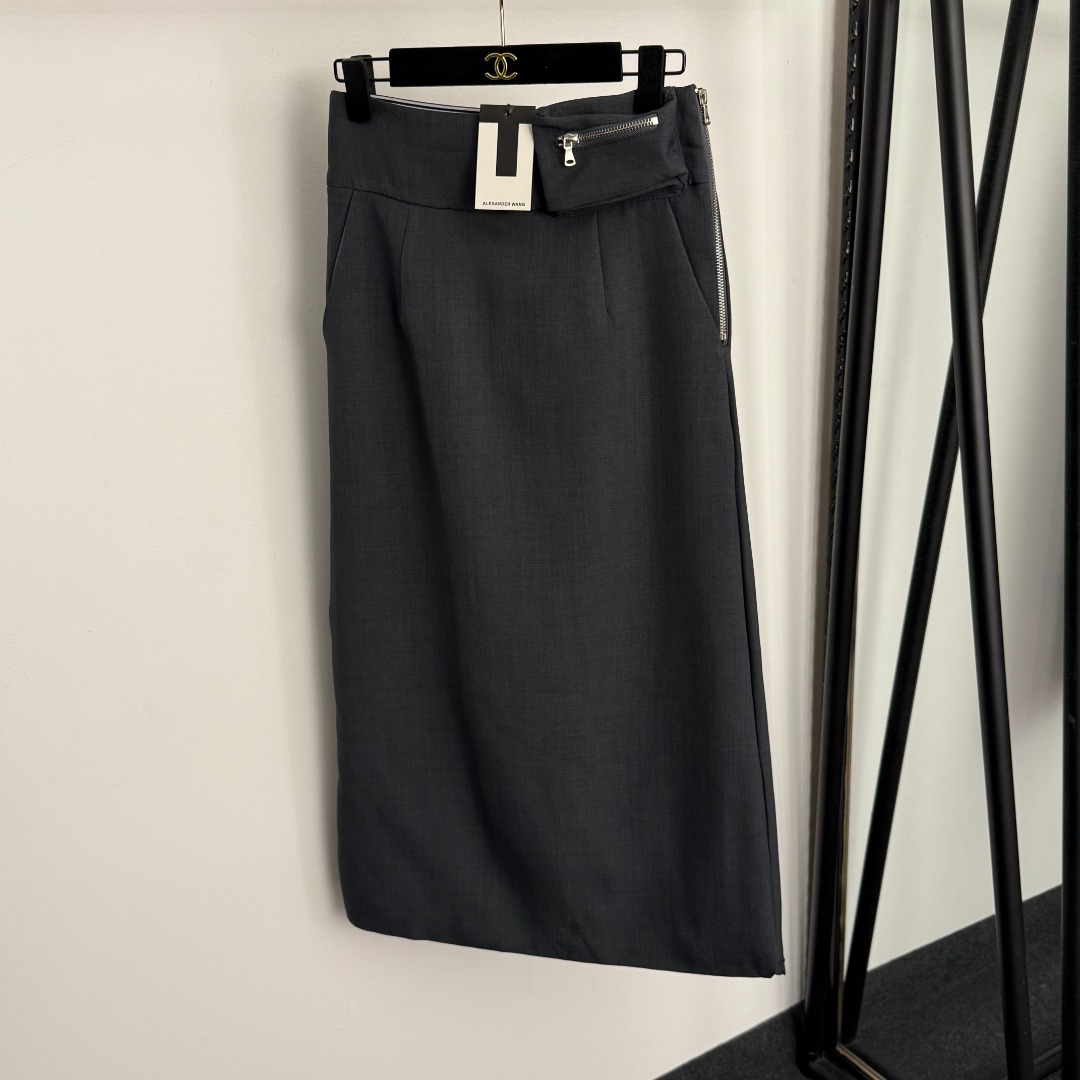Style Number 20256421 Alexander* Wang's new style zipper waist pouch decoration letter webbing high-waist西装半裙, khaki, black, gray, S-XL, [M size: waist 70 stretch, length 88; weight: 0.365kg]