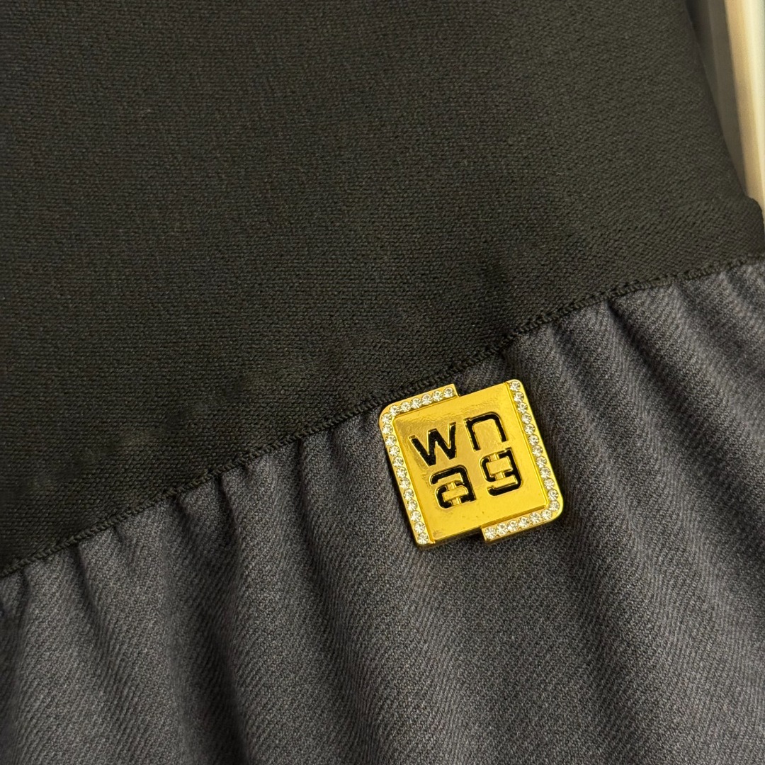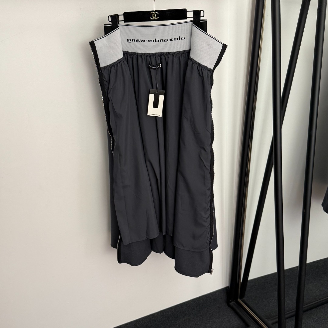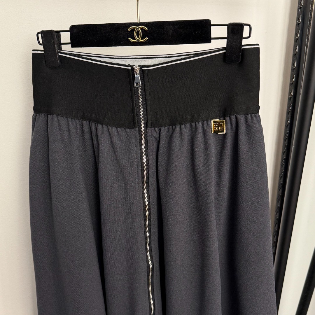 Style Number 20256423 Alexander* Wang's new style, metal diamond-encrusted logo letter webbing high-waist zipper skirt, gray, black, brown, S-XL, [Size M: Waist 70 stretch, Length 86; Weight: 0.730kg]