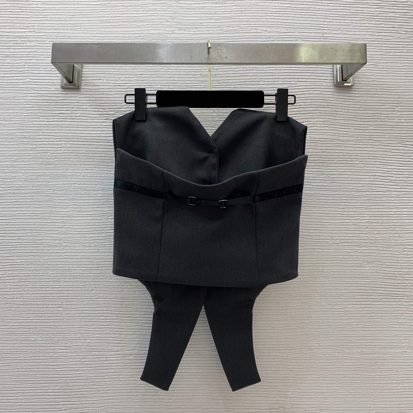 Style Number D25042673 Alexander Wan* King's new custom original molded letter logo buttons, cool and stylish炸街personality design deconstruction concept inverted waist-cinching slim-fit tube top vest top! Gray, black, S M L (Size M: Bust 76-86, Waist 72, Length 33/53)