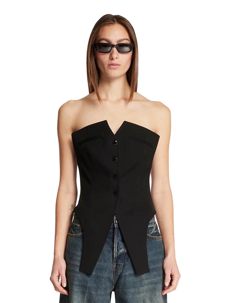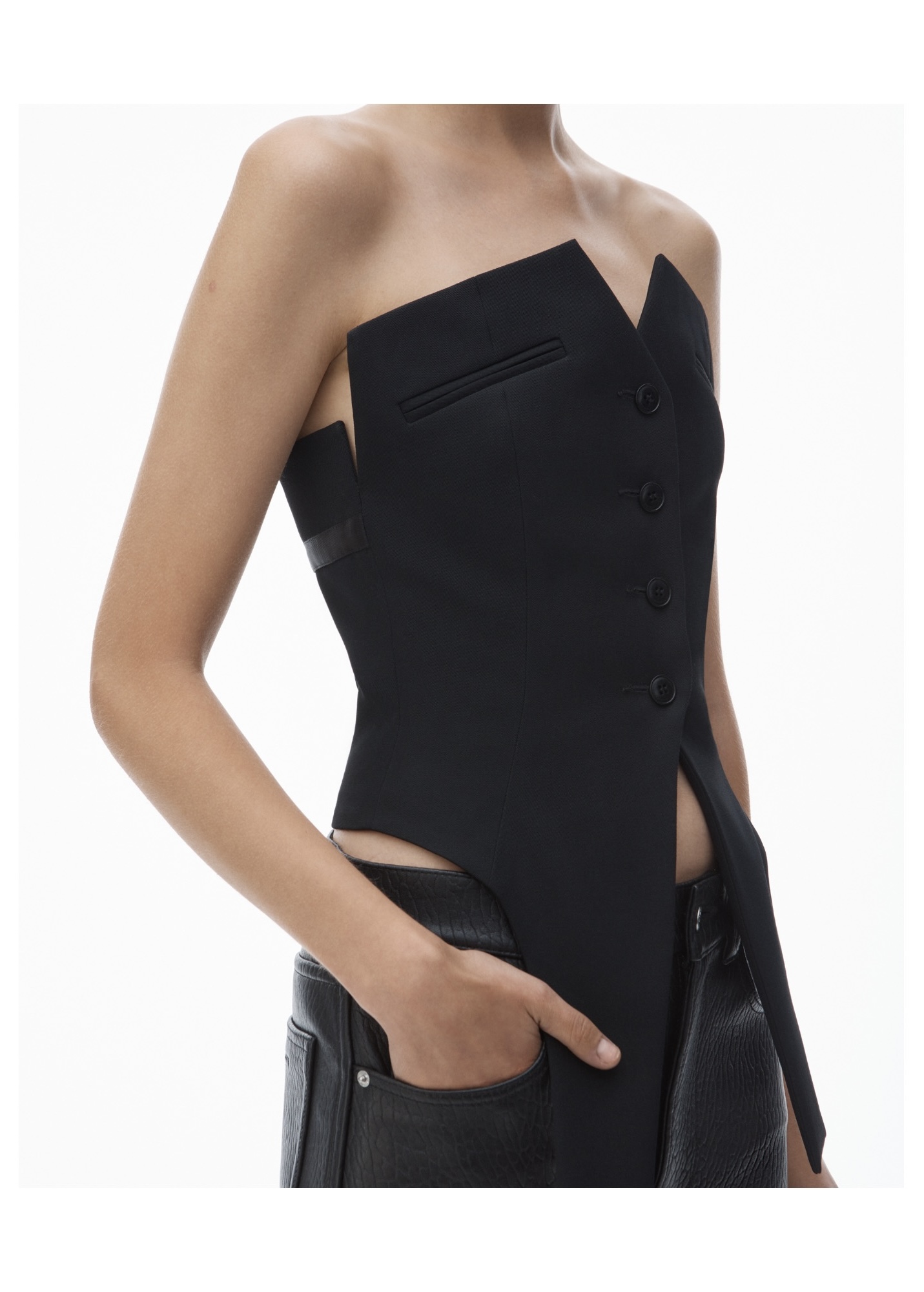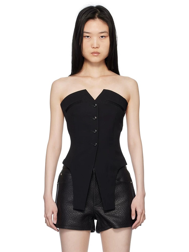 Style Number D25042673 Alexander Wan* King's new custom original molded letter logo buttons, cool and stylish炸街personality design deconstruction concept reverse installation waist-tucking slimming tube top vest top! Gray, black, S M L (Size M: Bust 76-86, Waist 72, Length 33/53)