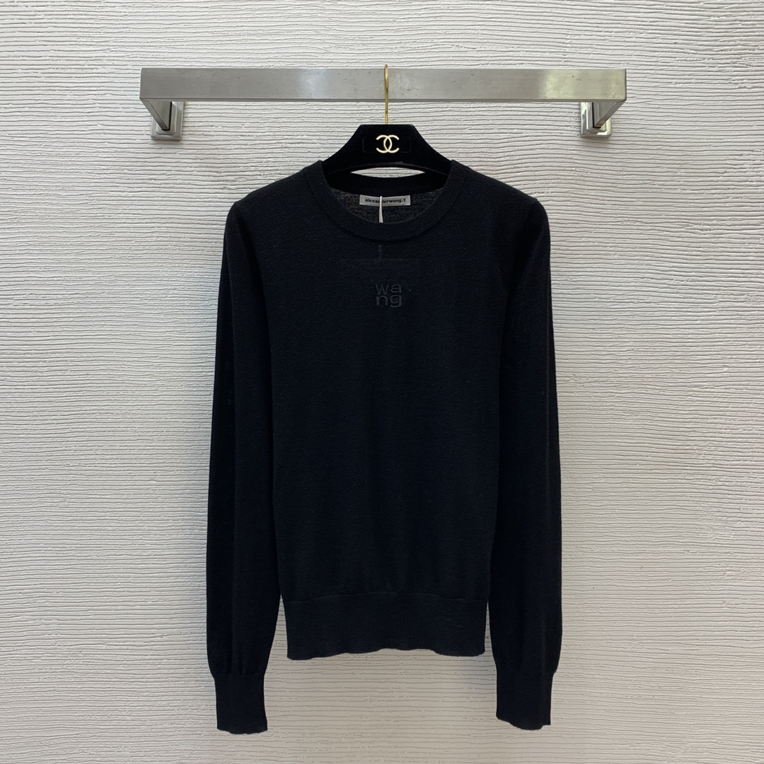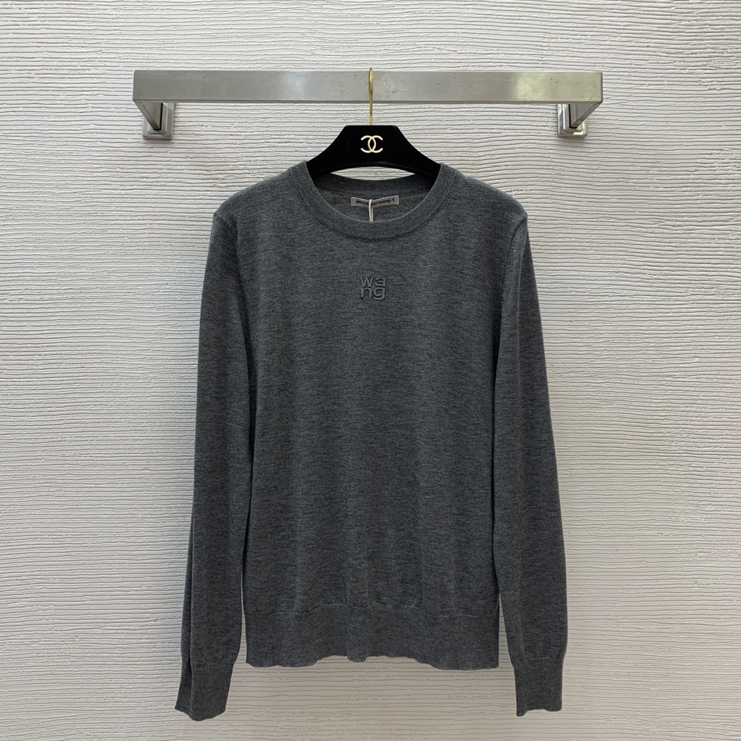 Item No. D24122840 Alexander Wan* King's new style, embroidered letter logo on the front, simple and fashionable round neck long sleeve thin knit sweater base top! White, red, black, gray, M L XL (M size: bust 90, sleeve length 62, length 58)