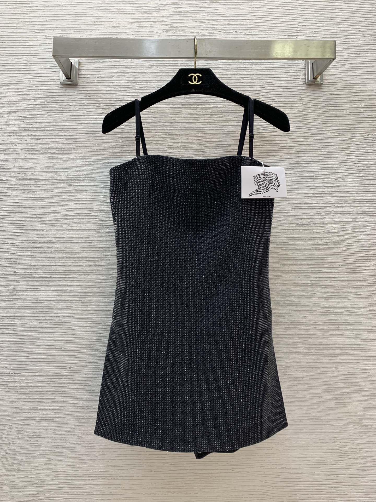 Item No. G24122720 Alexander Wan* New Arrival from the King's Collection Full of sparkling rhinestones, two-piece style, trendy and sexy body-hugging bandeau jumpsuit shorts! Gray, S M L (Size M: Bust 76-88, Waist 72, Pants Length 55 excluding straps) Jumpsuit