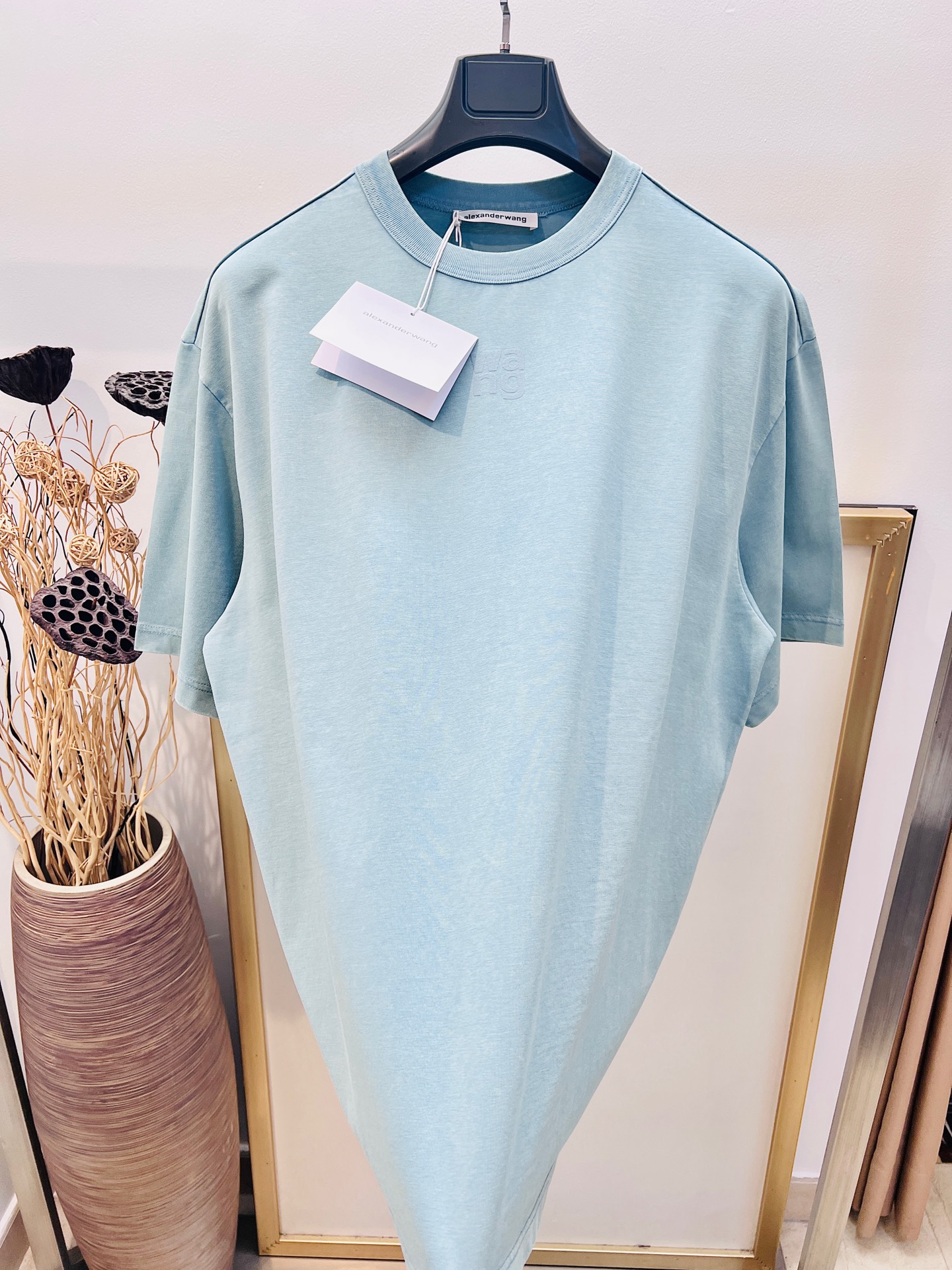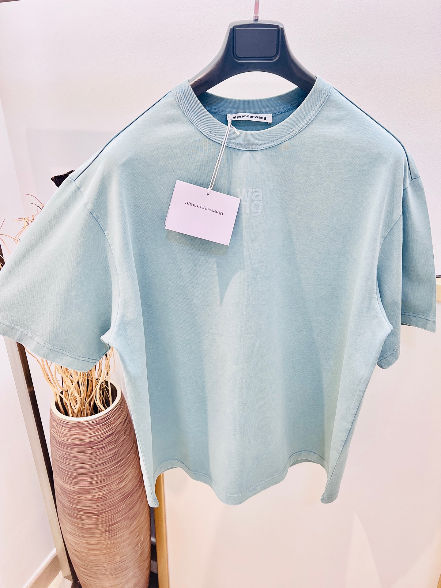 Alexander Wang 2025FW Early Spring, logo lettering frosted 3D print short-sleeve T-shirt/heavyweight pure cotton washed/This T-shirt is a timeless classic that I can wear forever, love it love it, the silhouette is so cool, and it pairs perfectly with leggings...