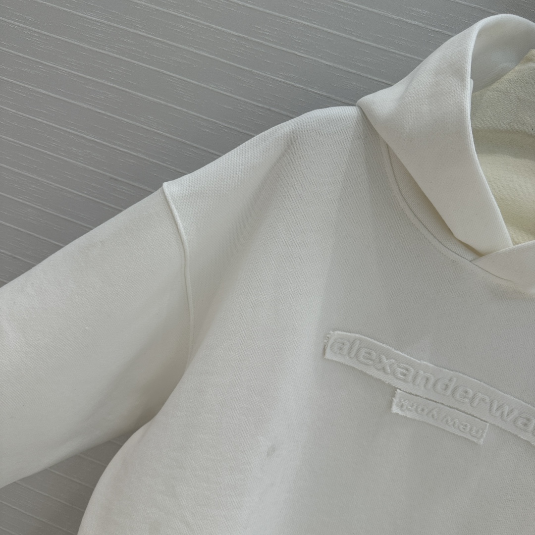 Original quality Alexander Wang 24 autumn and winter new product embossed letter patch embroidery sweatshirt! High street fashion casual temperament! Classic hooded loose silhouette easily captures a relaxed and casual feel, imported pure cotton fabric has excellent texture! Workmanship quality can be seen in the details Two colors, 3 sizes, available now for quick purchase. Large orders are welcome! Size S, dropped shoulder, bust 124, length 64.