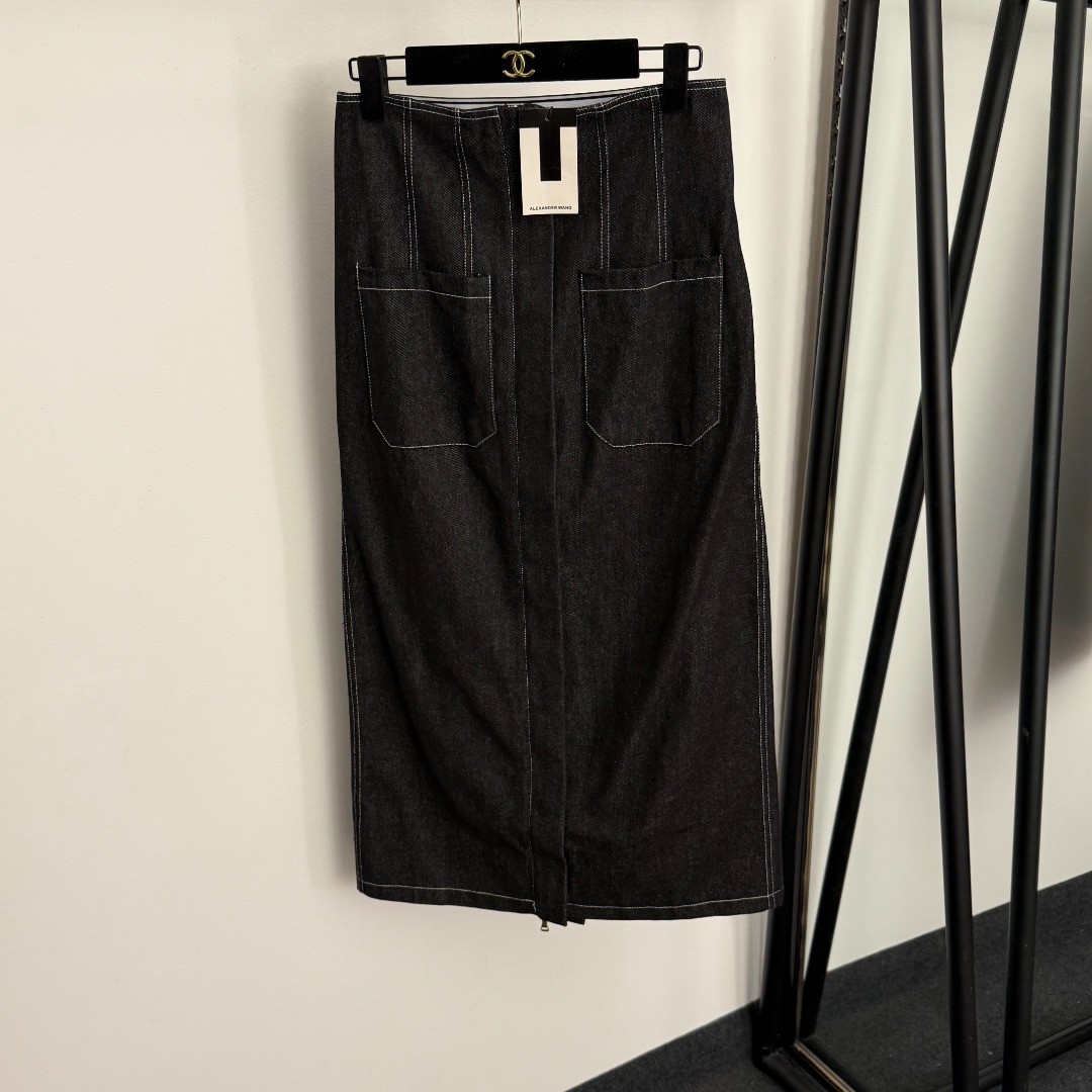 Style Number 20255735 Alexander* Wang's new style, double pocket front zipper high-waist slimming denim skirt, black, S-XL, [Size M: Waist 72 stretch, length 87; Weight: 0.545kg]