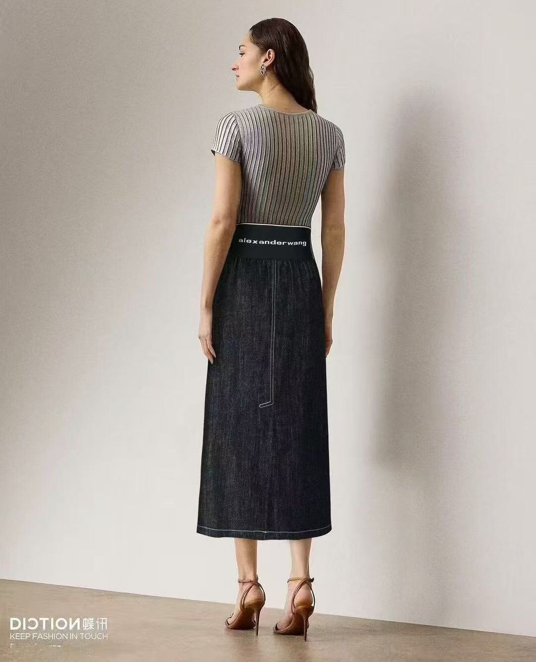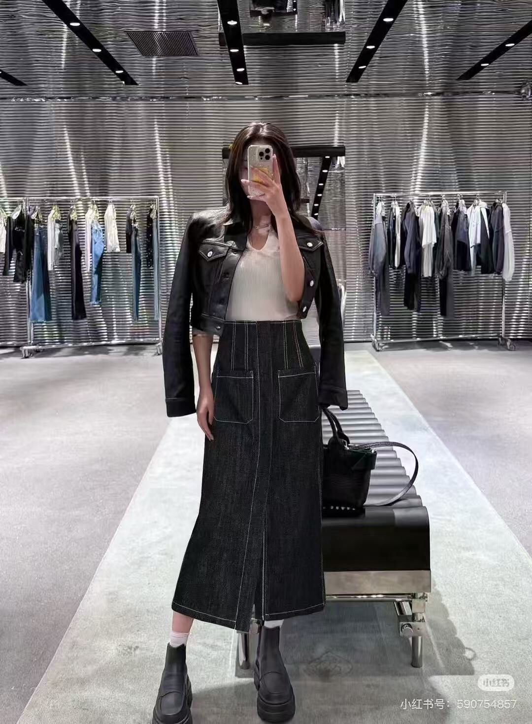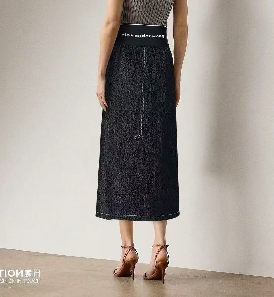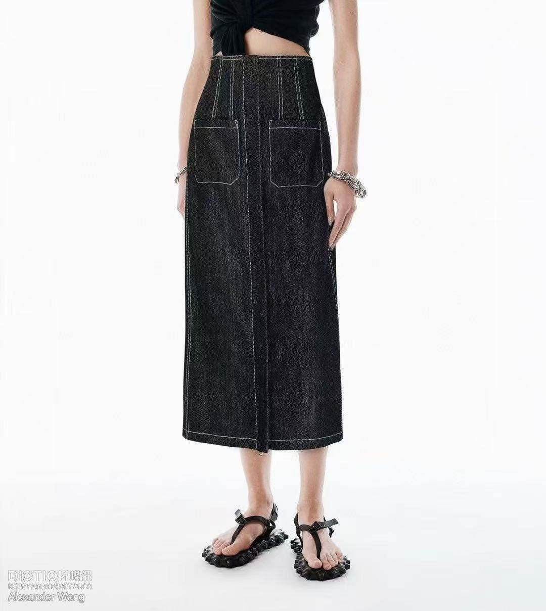 Alexander Wang new double pocket high-waist denim skirt, black, S-XL.