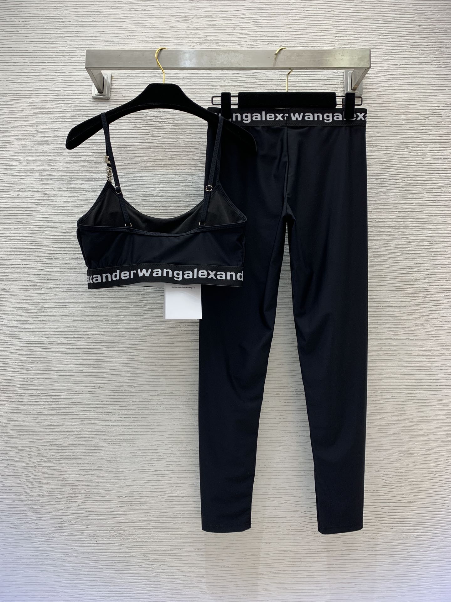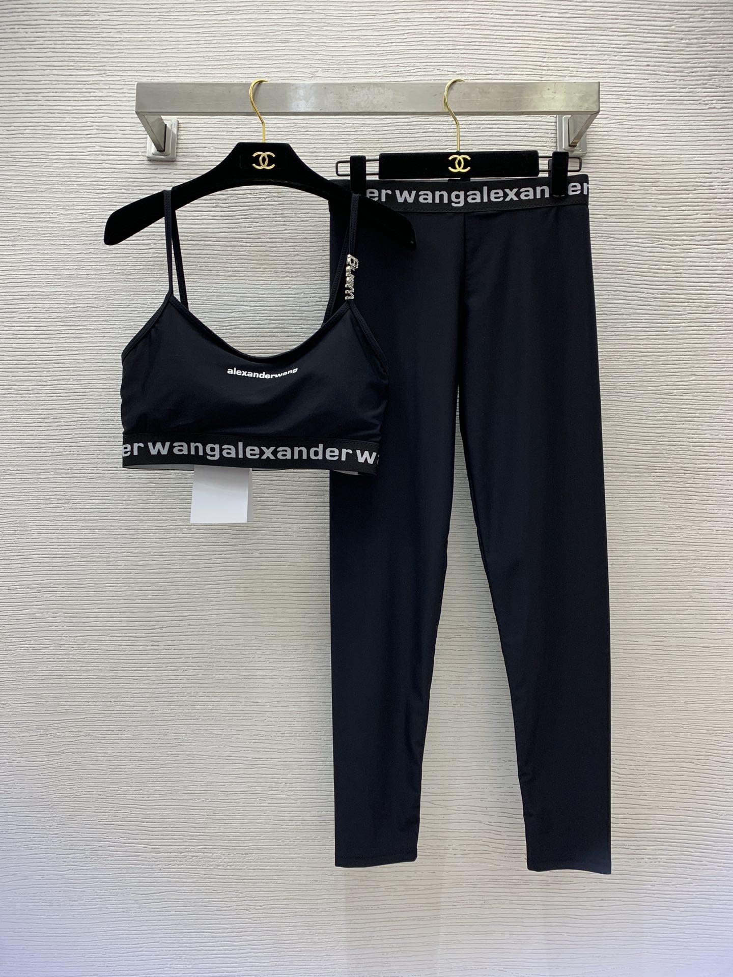 Style Number D23120362 Alexander Wan*大王 New High-Elasticity Yoga Fitness Sportswear Set! Logo woven tape spliced camisole bra top + high-elasticity leggings base pants! S M L XL