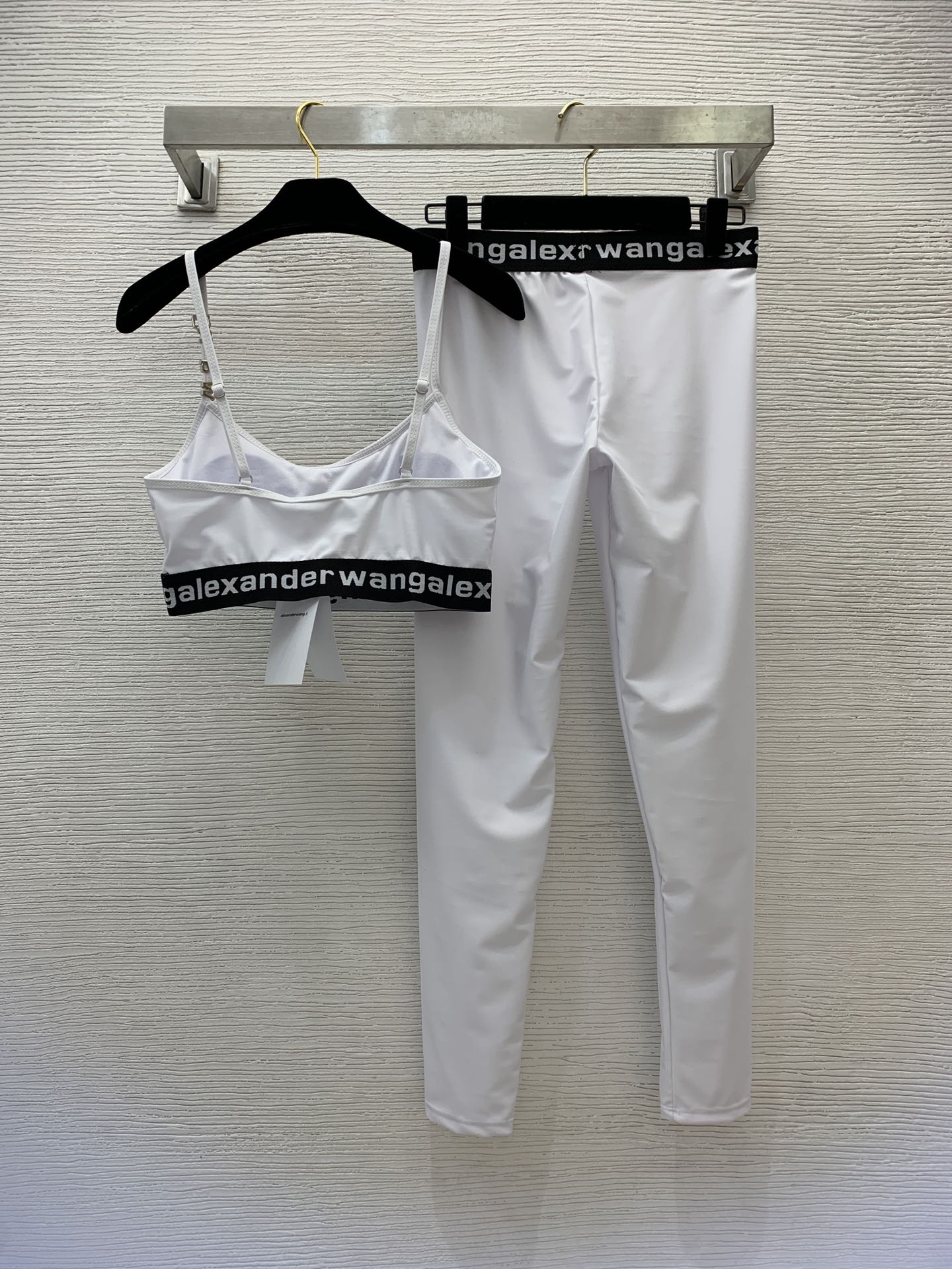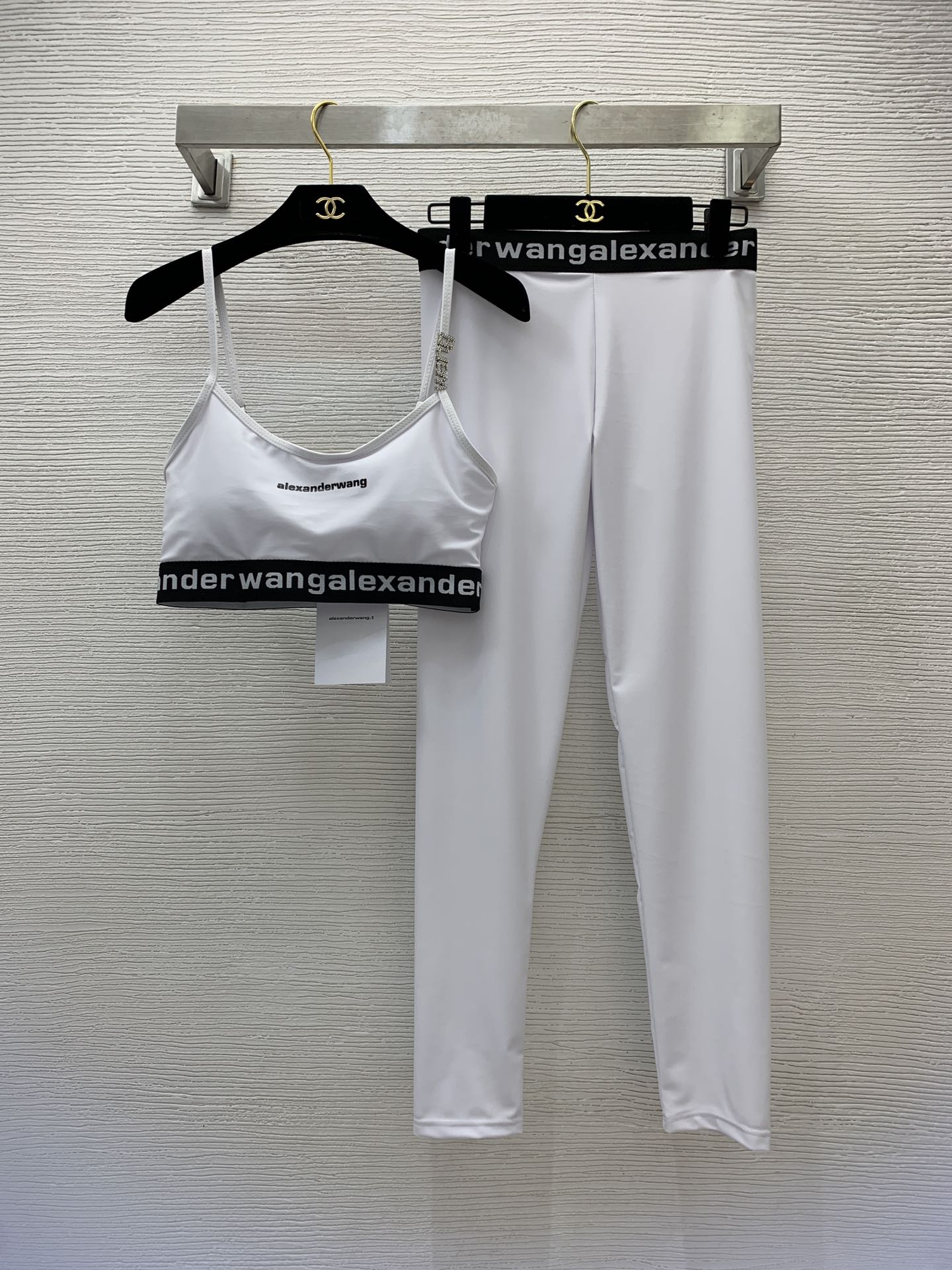 Alexander Wang new high-elasticity yoga fitness set with logo trim. Includes bra top and leggings. Sizes S, M, L, XL.