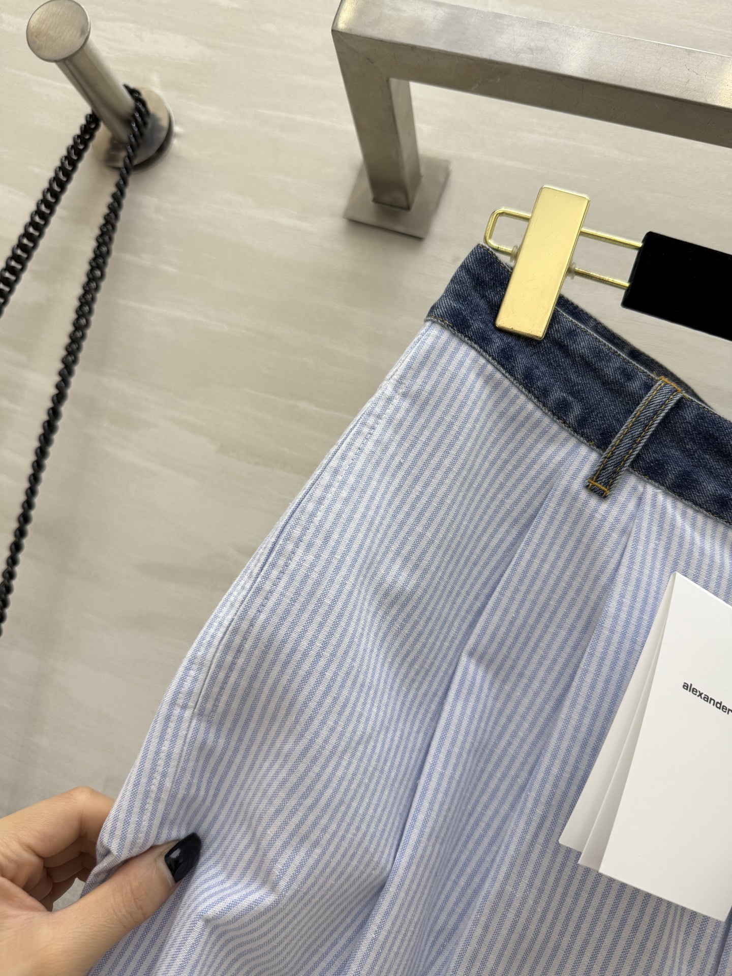 #alexanderwan♡²⁵ denim patchwork wide-leg trousers pocket logo embroidery high-quality custom ready-to-ship first release size: S/M/L (S size waist: 68, hip: 98, length: 99)