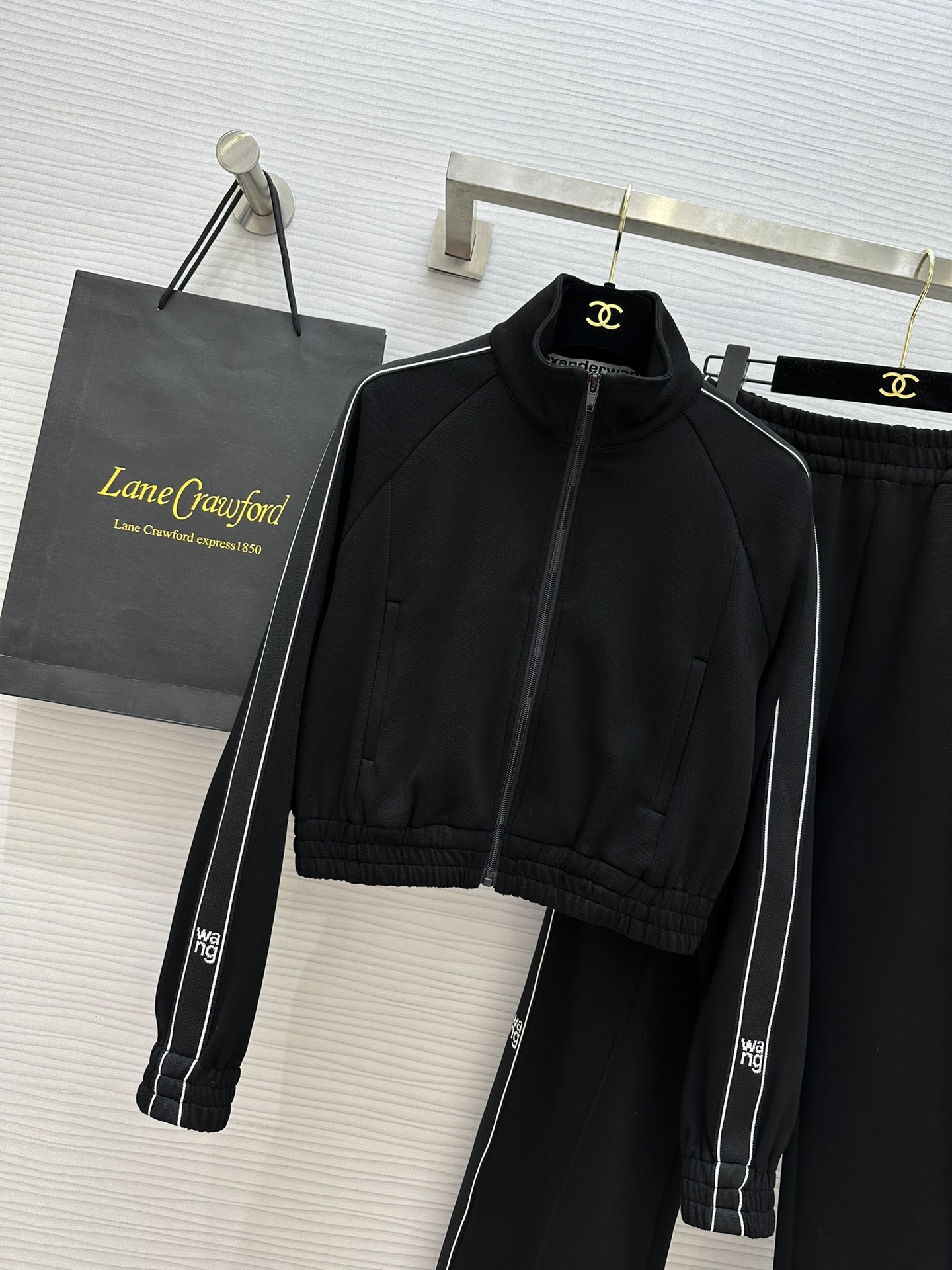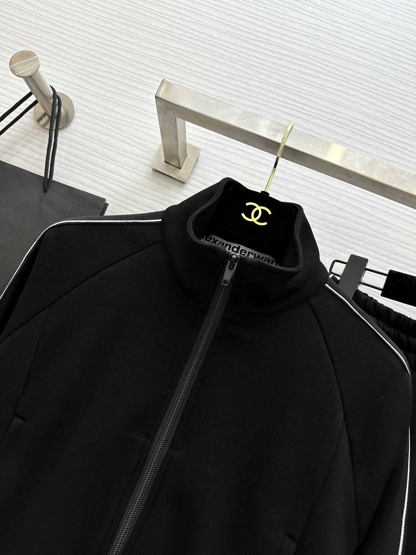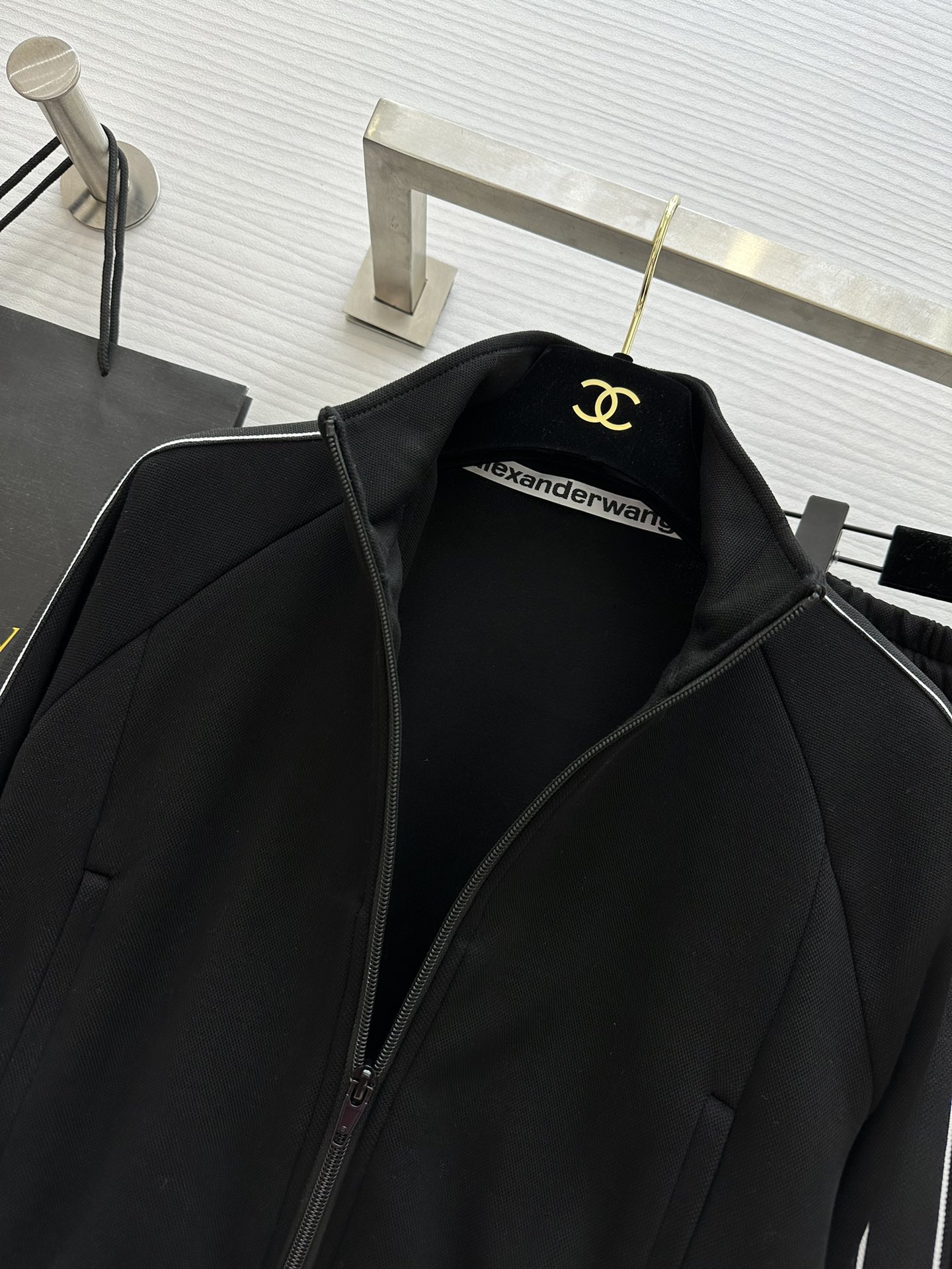 AW King autumn-winter new casual set with decorative tape, classic black, stylish and versatile. Custom black-white woven letter tape拼接. Sizes S/M/L.