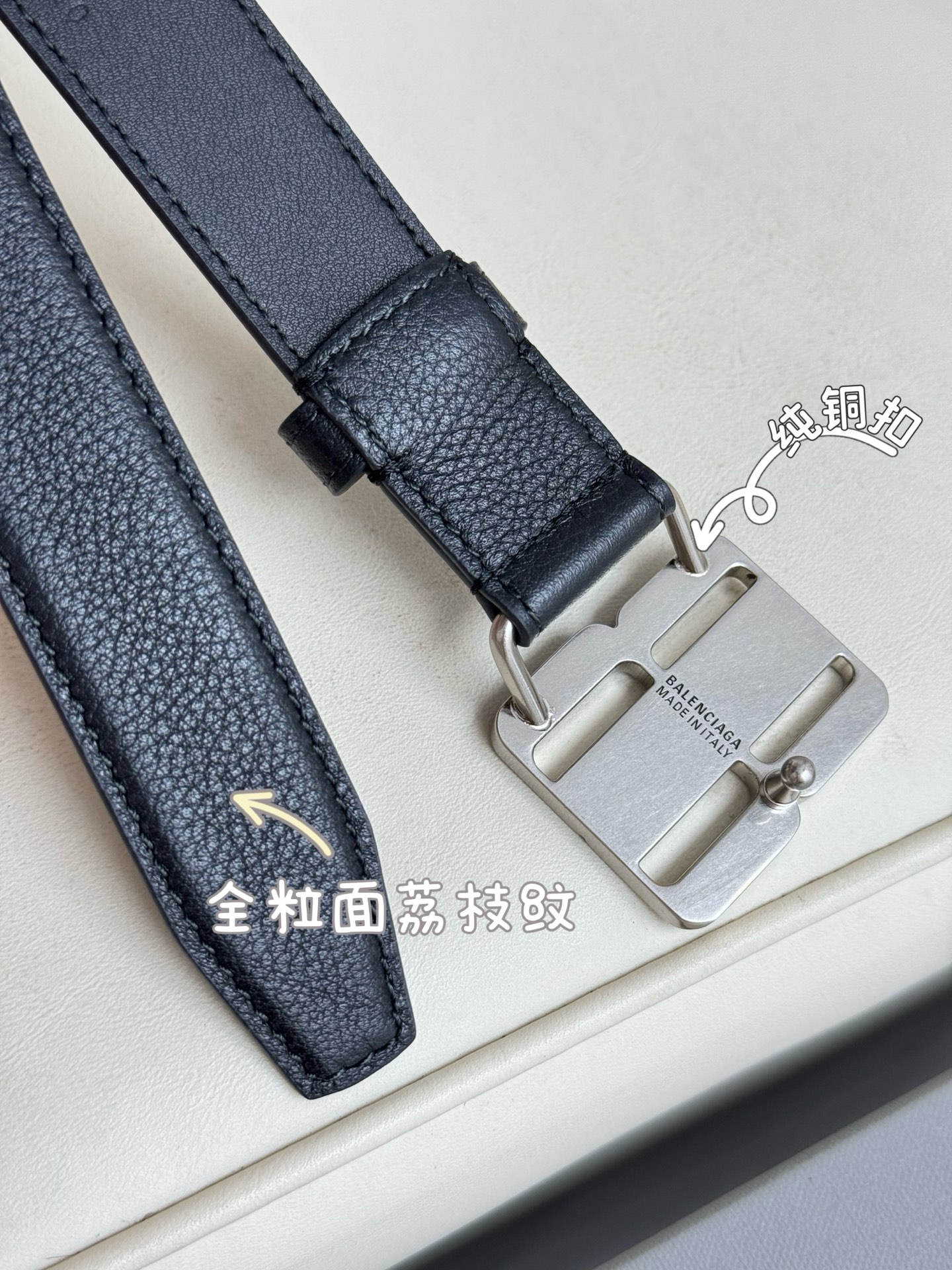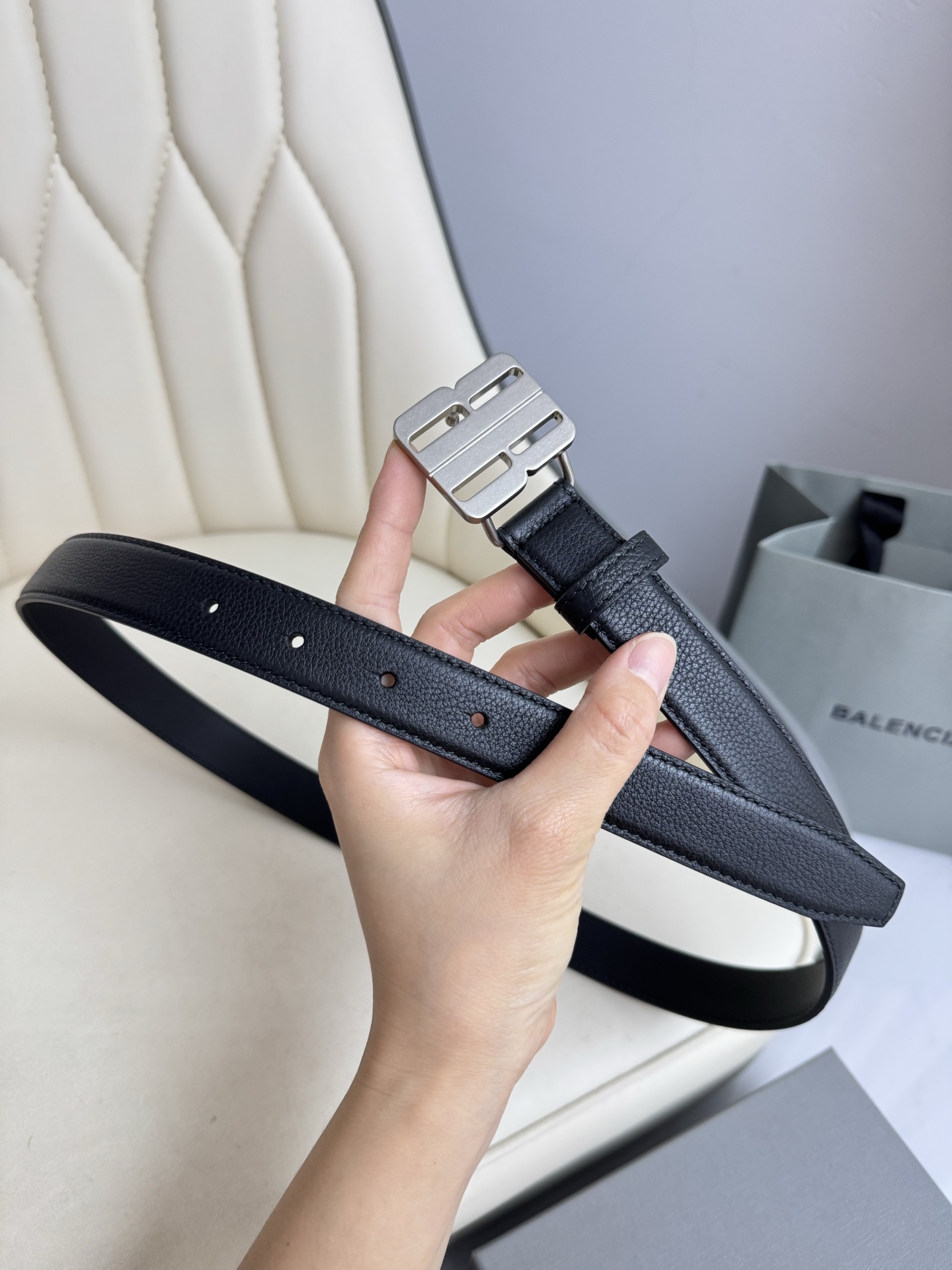 Balenciaga 2.5cm wide French luxury brand, fashionable imported calfskin with brass hardware.