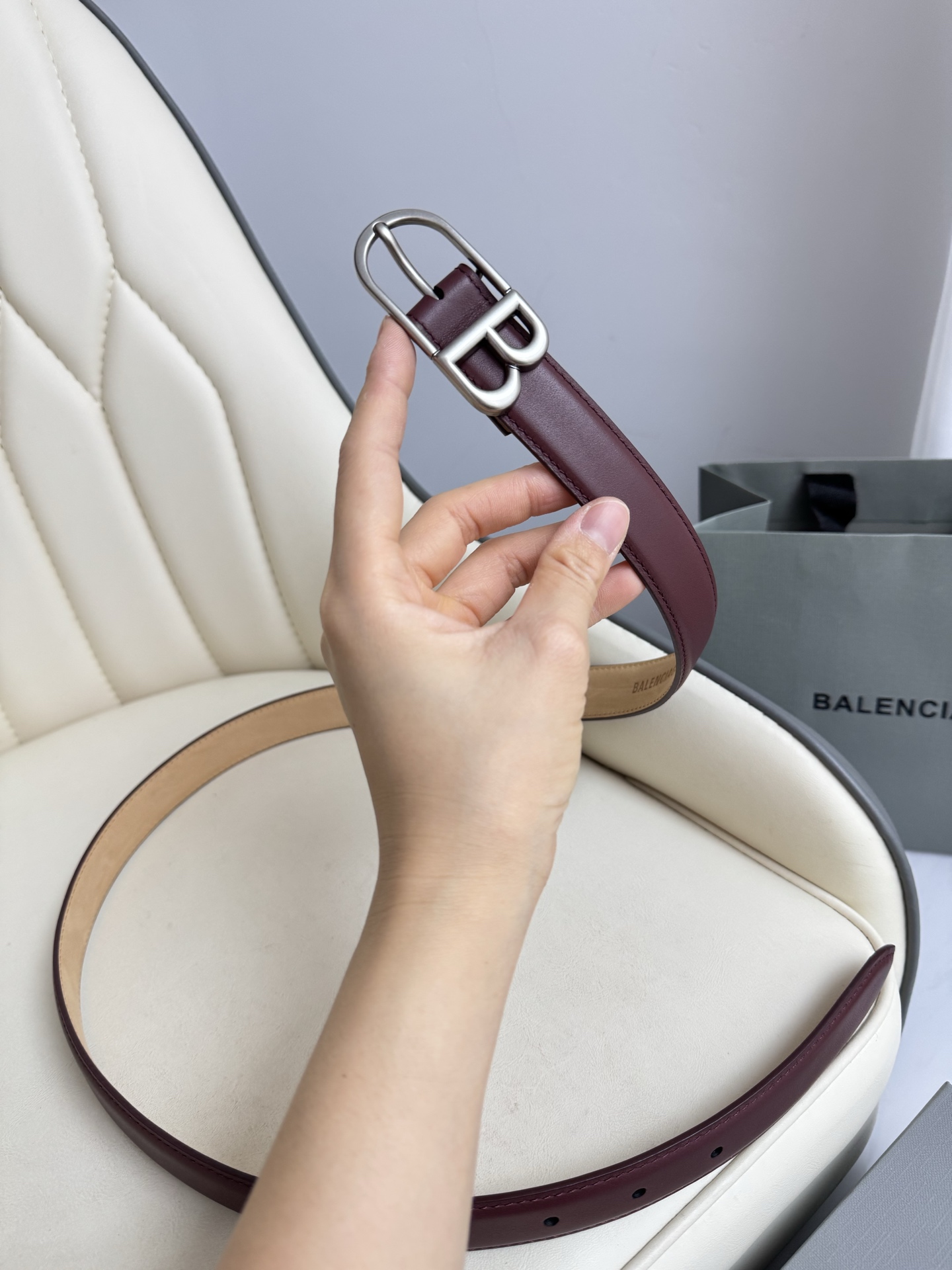 Balenciaga 2.5cm wide French luxury brand, known for its urban fashion and imported calfskin with antique brass hardware.